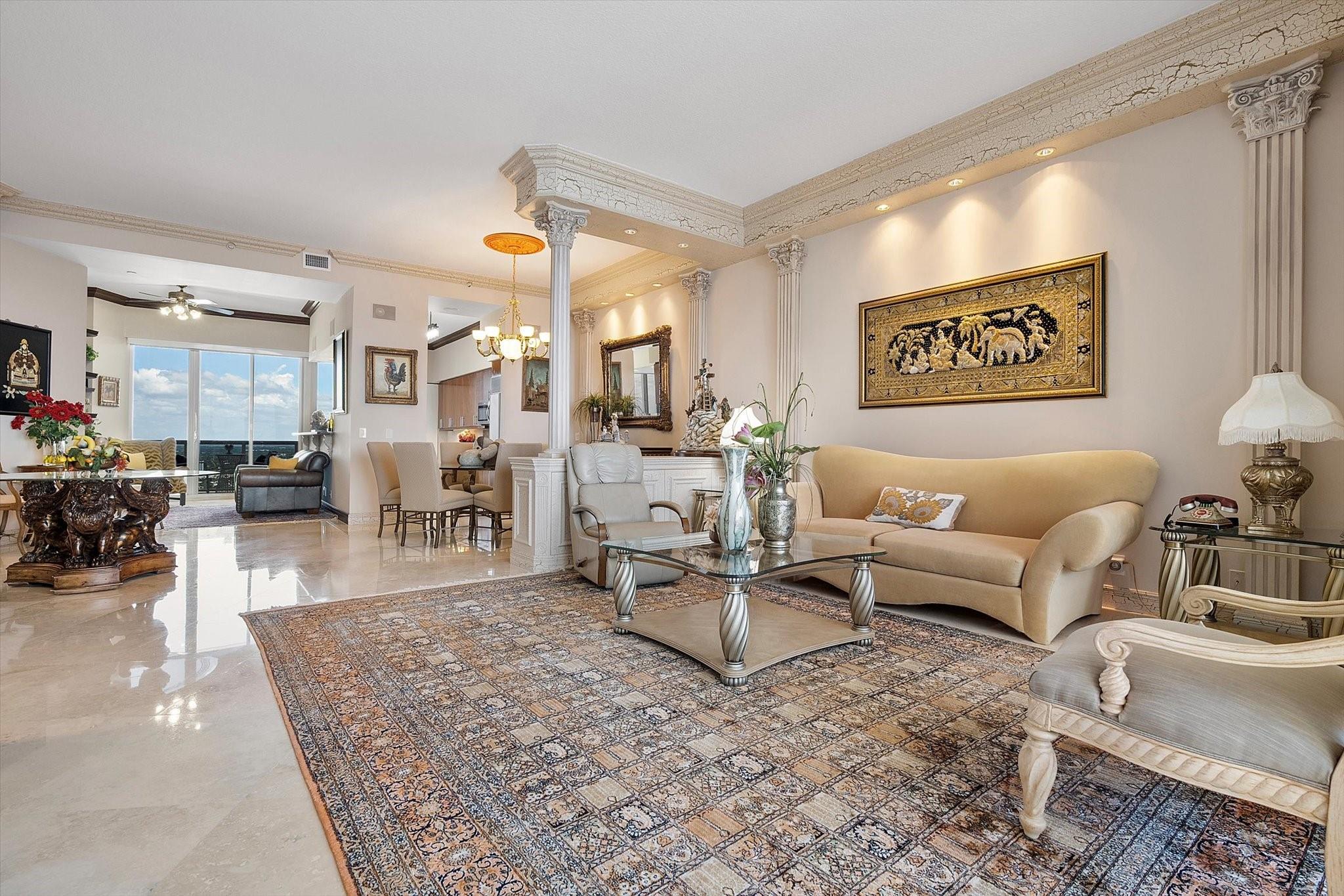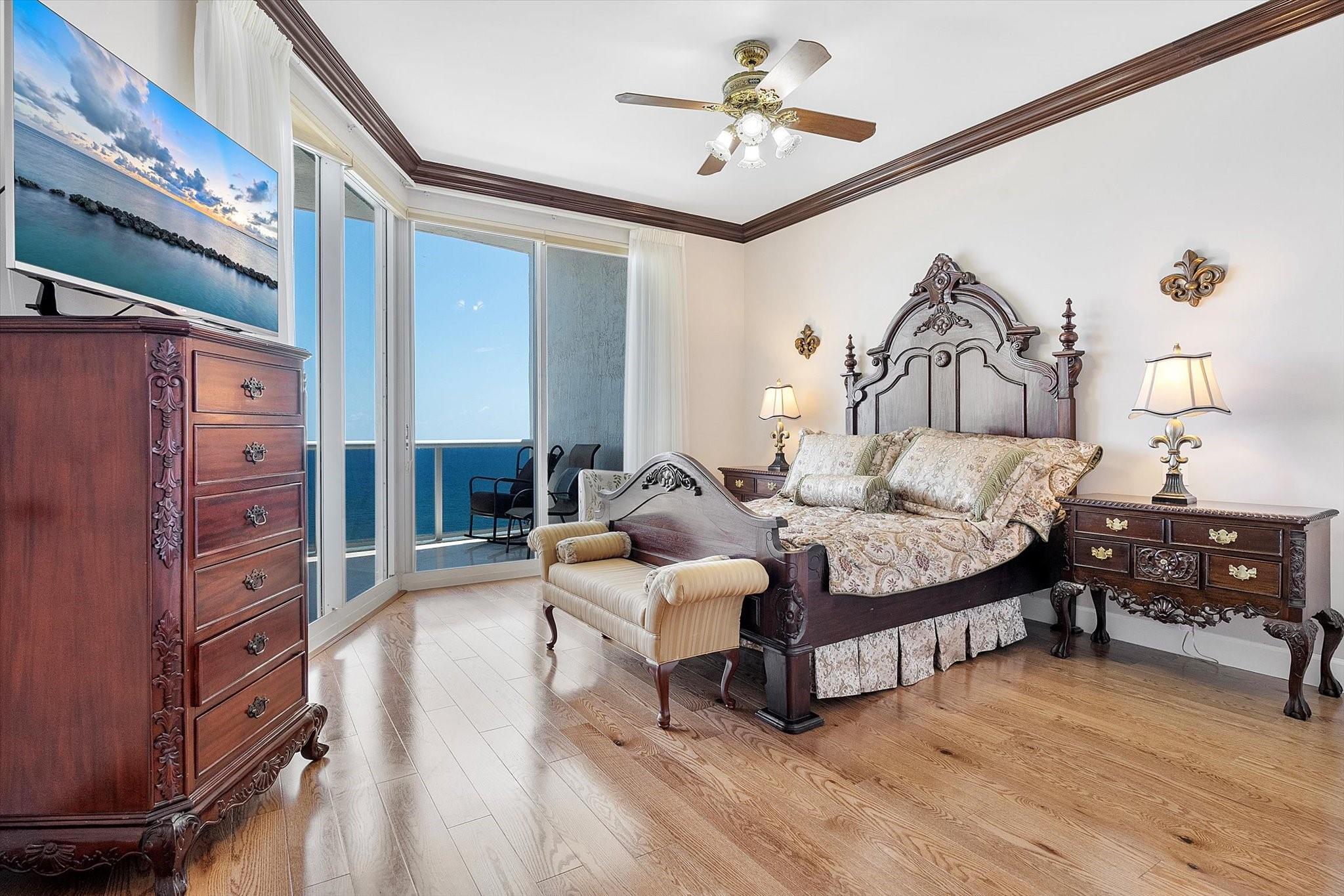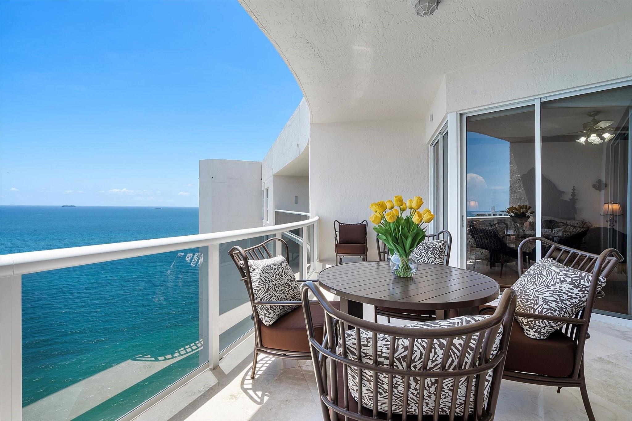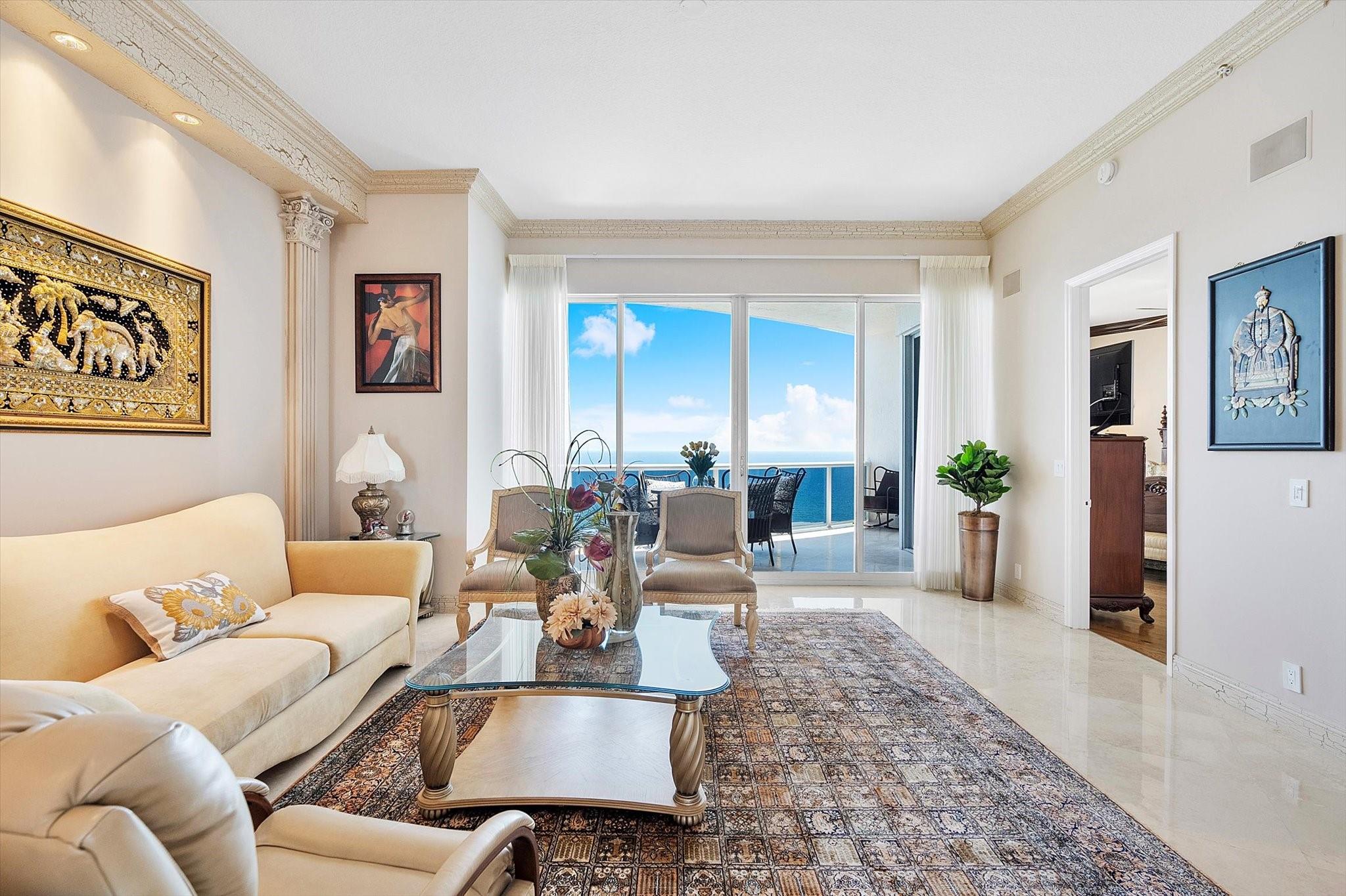 DIRECT OCEAN UPPER PENTHOUSE w/ 11 FOOT CEILINGS at L’Hermitage Tower 2 - breathtaking, unobstructed views of Ocean and Intracoastal Waterway on 2 balconies. Over 2,100SF open, elegant living space, custom built-ins/marble flooring—inside and out. The third bedroom is integrated with open kitchen. 3 FULL BATHS. L’Hermitage is over 10 acres of resort-style beachfront property and offers unparalleled amenities, including: 2.5-acre elevated pool deck with swimming pools, hot tubs, a kiddie pool, and a full-service oceanfront restaurant/Lush landscaping, shaded lounge areas, expansive green spaces/Full valet service with optional self-parking/concierge/gated entry/on-site security/tennis courts/fitness centers, his/her steam rooms, saunas, and private massage rooms, dog-walking areas and more