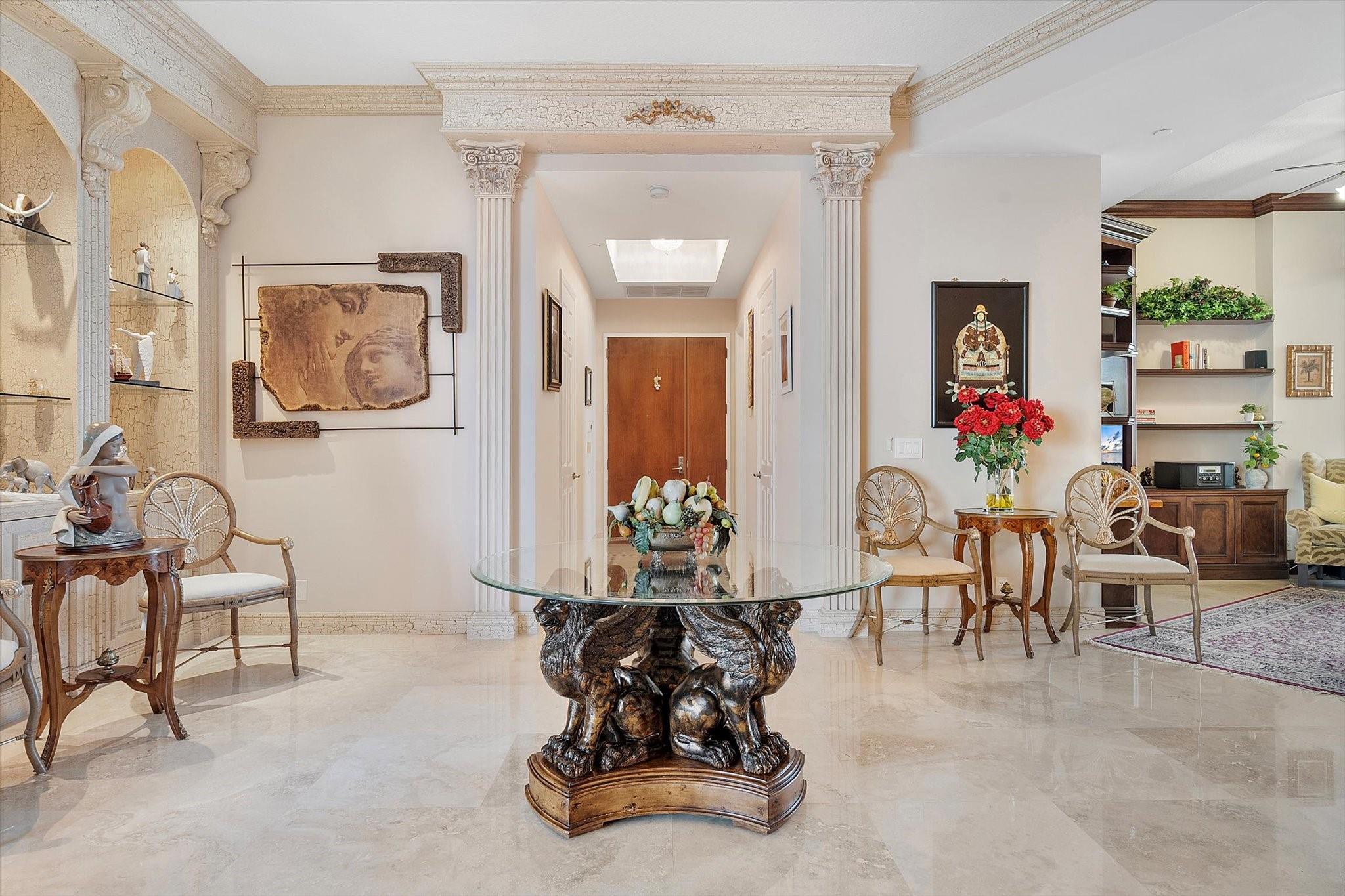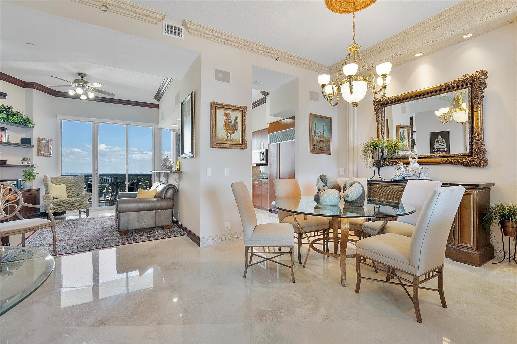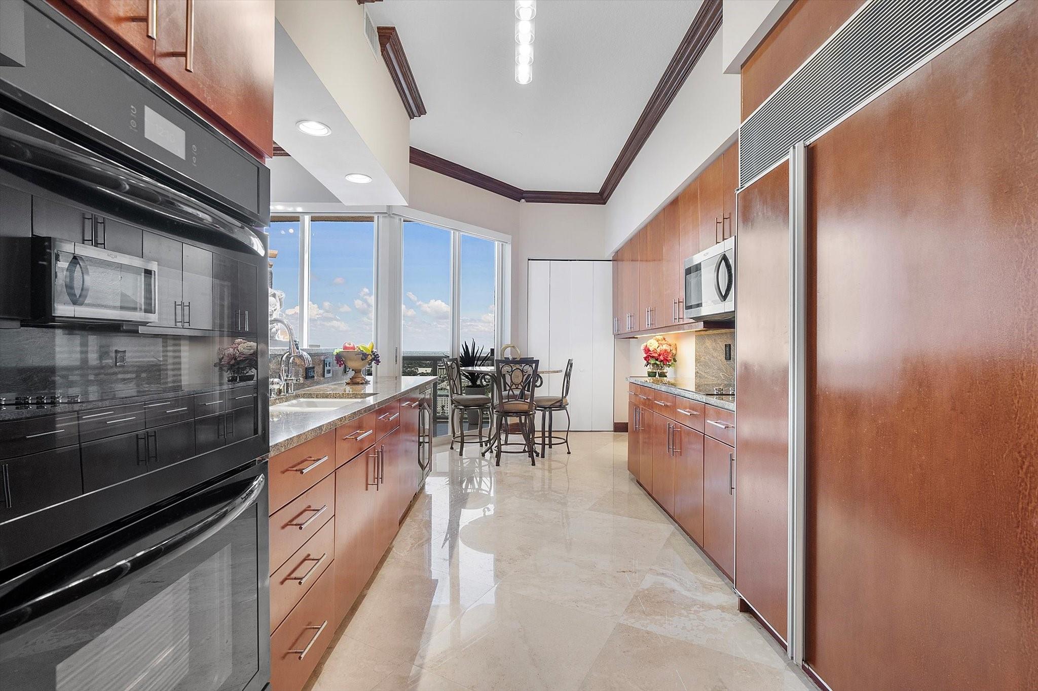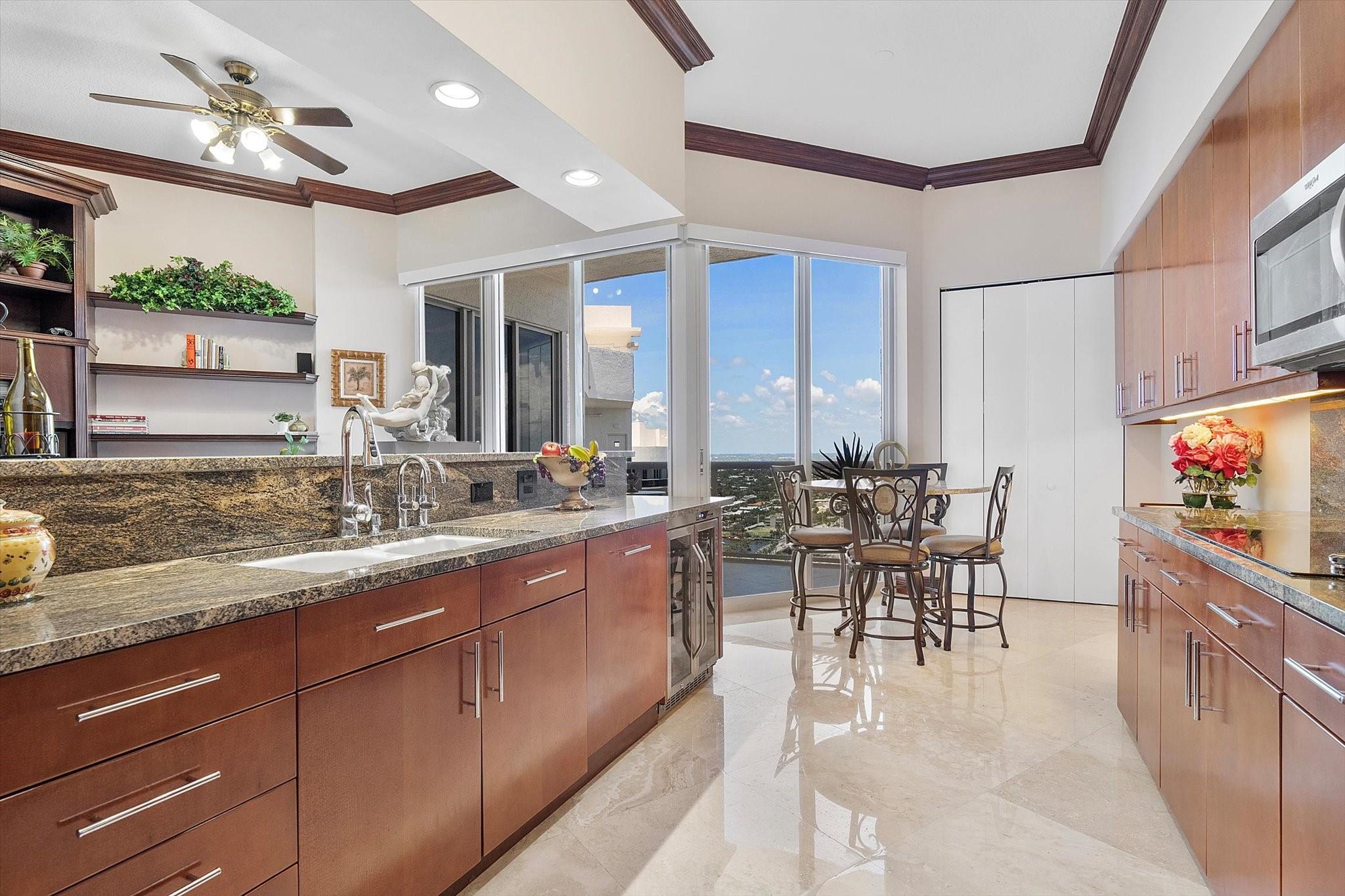DIRECT OCEAN UPPER PENTHOUSE w/ 11 FOOT CEILINGS at L’Hermitage Tower 2 - breathtaking, unobstructed views of Ocean and Intracoastal Waterway on 2 balconies. Over 2,100SF open, elegant living space, custom built-ins/marble flooring—inside and out. The third bedroom is integrated with open kitchen. 3 FULL BATHS. L’Hermitage is over 10 acres of resort-style beachfront property and offers unparalleled amenities, including: 2.5-acre elevated pool deck with swimming pools, hot tubs, a kiddie pool, and a full-service oceanfront restaurant/Lush landscaping, shaded lounge areas, expansive green spaces/Full valet service with optional self-parking/concierge/gated entry/on-site security/tennis courts/fitness centers, his/her steam rooms, saunas, and private massage rooms, dog-walking areas and more