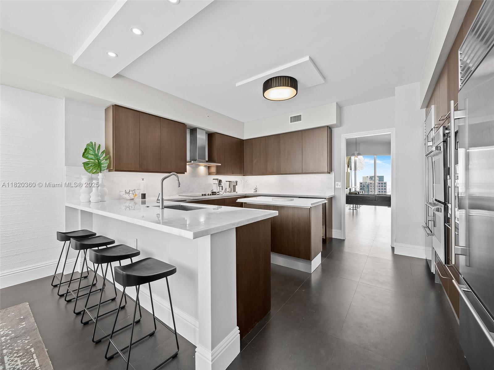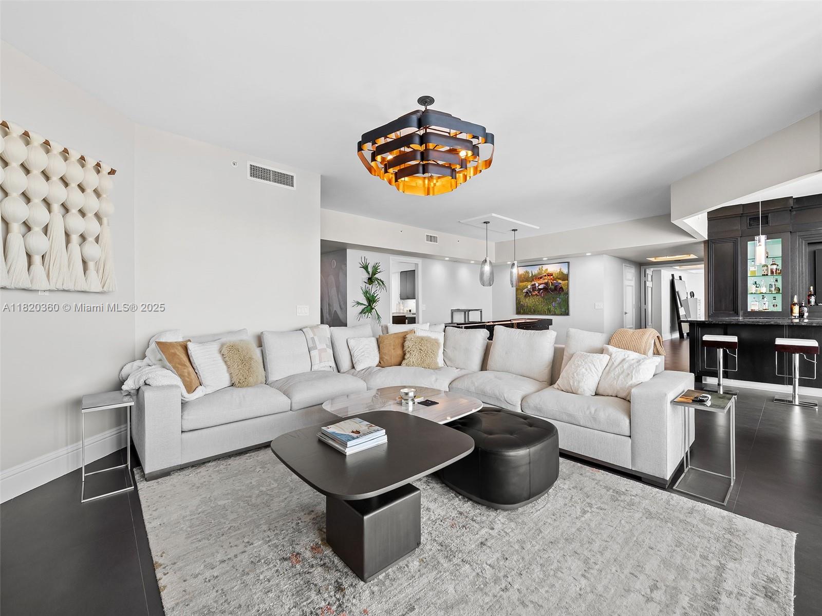 Spectacular 5th Ave Tower Suite on the 36th floor in Las Olas River House. Priced to sell! 2/3.5 plus den! Spacious open floor plan that has been tastefully renovated & perfect for entertaining. Modern contemporary finishes complete this impeccable condo. Huge primary suite with interior den, home gym or nursery. 2 primary baths & 3 large closets. Custom built bar, split bedrooms, large gourmet kitchen, media room, private elevator foyer & floor to ceiling glass. Great EV parking space. River House provides top tier location & walkable luxury lifestyle on the dynamic New River. Grand lobby with Koi pond, world class Fitness Center, tropical pool deck (under renovation), impressive social rooms (delivered in Aug '25.) NEVER a better time to buy! Eddie V's, Moxies, Publix just steps away.