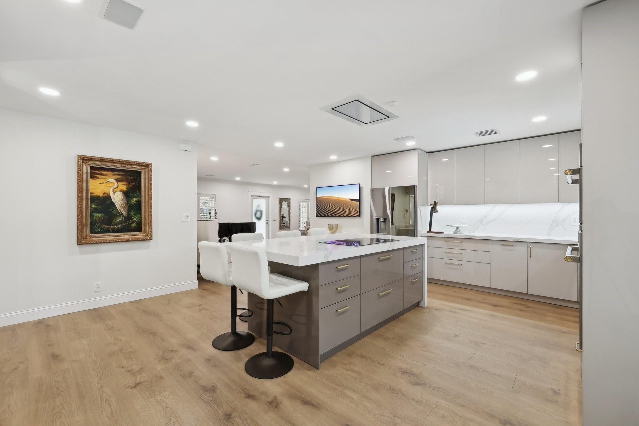Tucked in the heart of Coral Ridge Country Club Estates, this beautifully updated home blends classic charm with modern living. Inside, you'll find TWO luxurious primary suites, each with spa-like bathrooms and walk-in closets. The custom gourmet kitchen is a showpiece—featuring GE Monogram appliances, quartz countertops, striking book-matched backsplashes, and a full-height wine cooler. Open-concept living space flows seamlessly onto a screened porch overlooking the heated pool, complete with spa and tranquil fountains. Smart home upgrades include a Sonos sound system, enhanced HVAC, ADT security, and whole-home water purification. Climate-controlled two-car garage, lush tropical landscaping, and a private irrigation. Minutes from the beach, top-tier schools, fine dining, and shopping.
