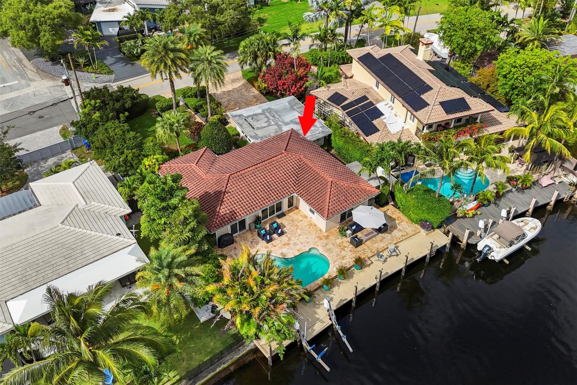 Casa Manatì...Welcome to 70 feet of waterfront living in East Fort Lauderdale. Ideal for boaters, this 4-bed, 3-bath home offers one fixed bridge access to the Intracoastal and a private dock with a new Golden-brand boat lift. A permitted guest suite with private entrance, full kitchen, living room, bath, and new A/C adds space and flexibility. Outdoors, enjoy a manatee-shaped pool with waterfall, lush landscaping, sprinkler system, and landscape lighting. Inside, the home features Turkish marble floors, impact windows/doors, Euro Tech sliders, and a chef’s kitchen with Sub-Zero and Dacor appliances. Minutes to Las Olas, Wilton Manors, and the beach—this is waterfront living done right.