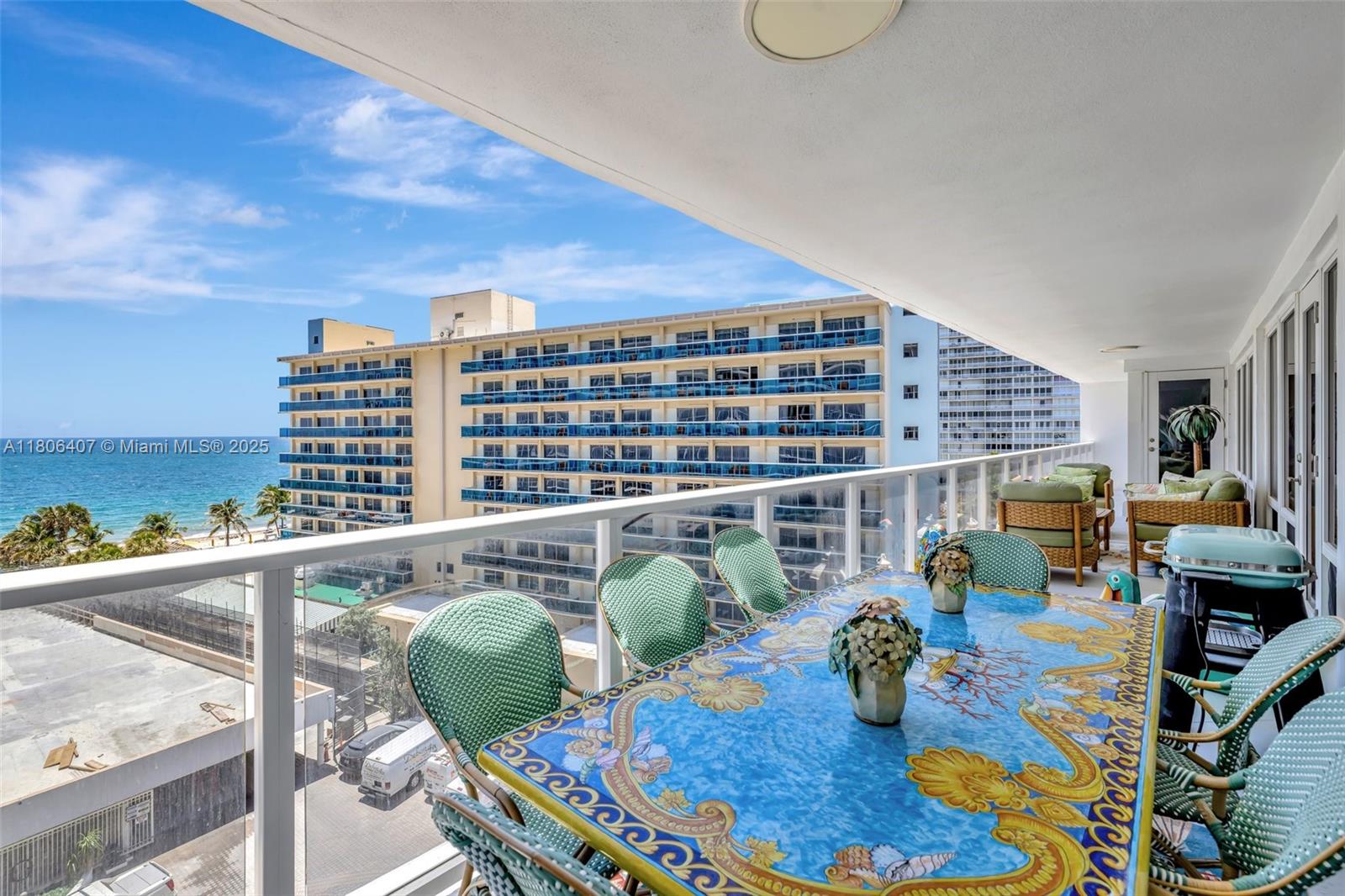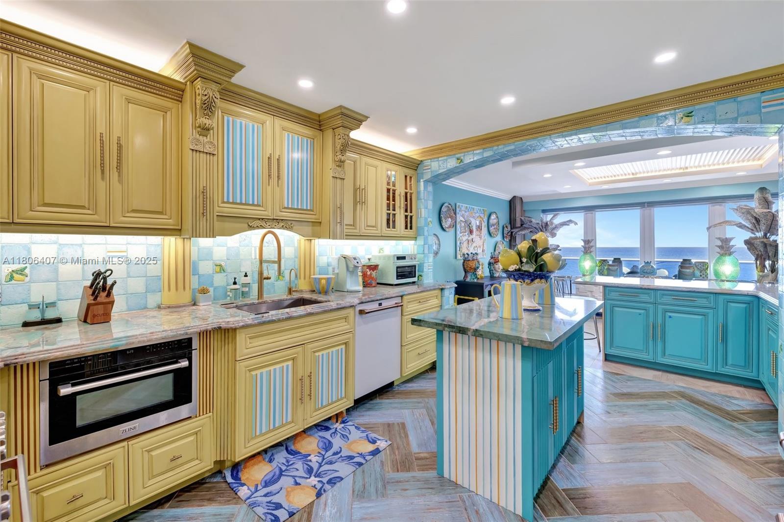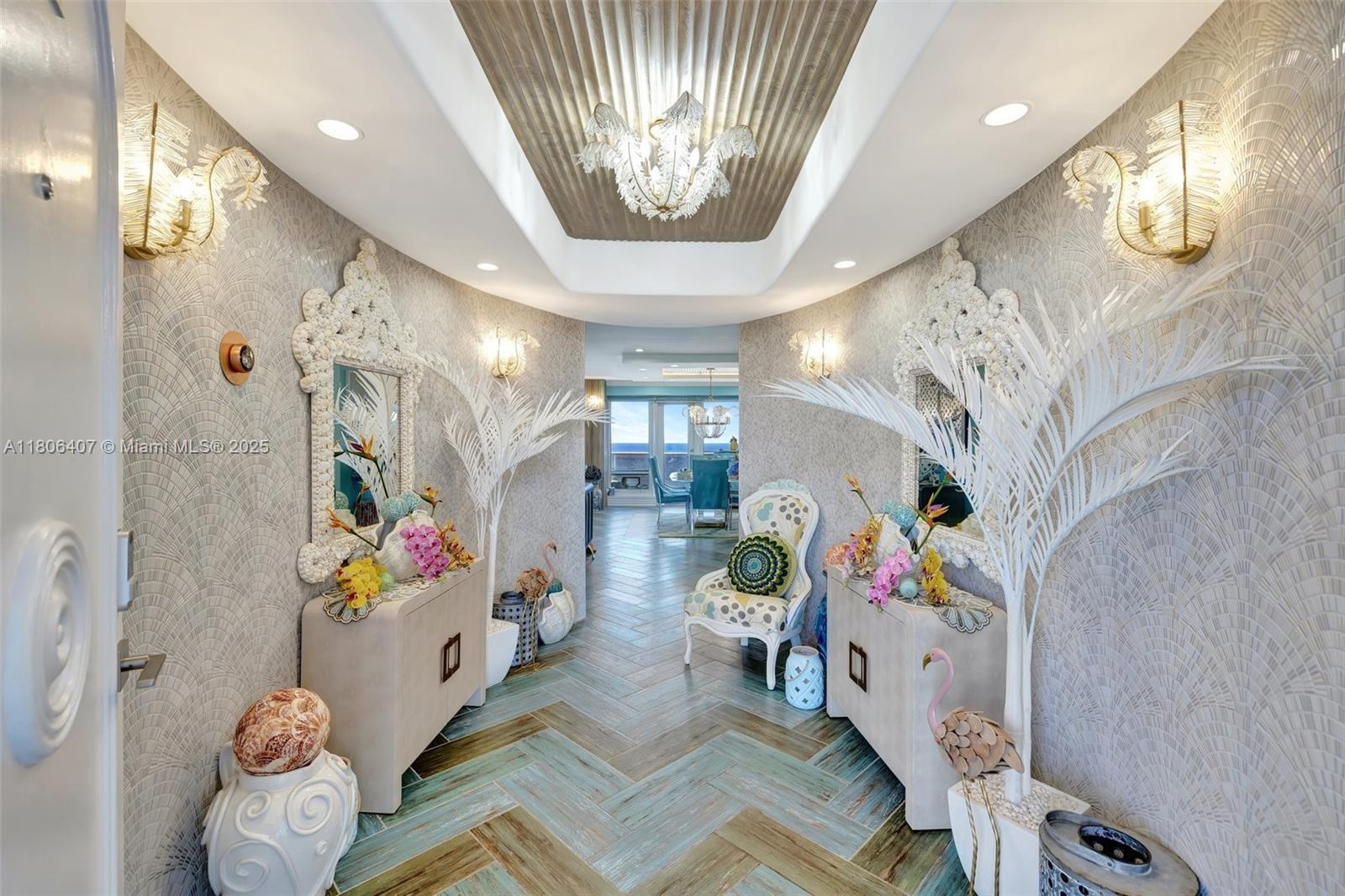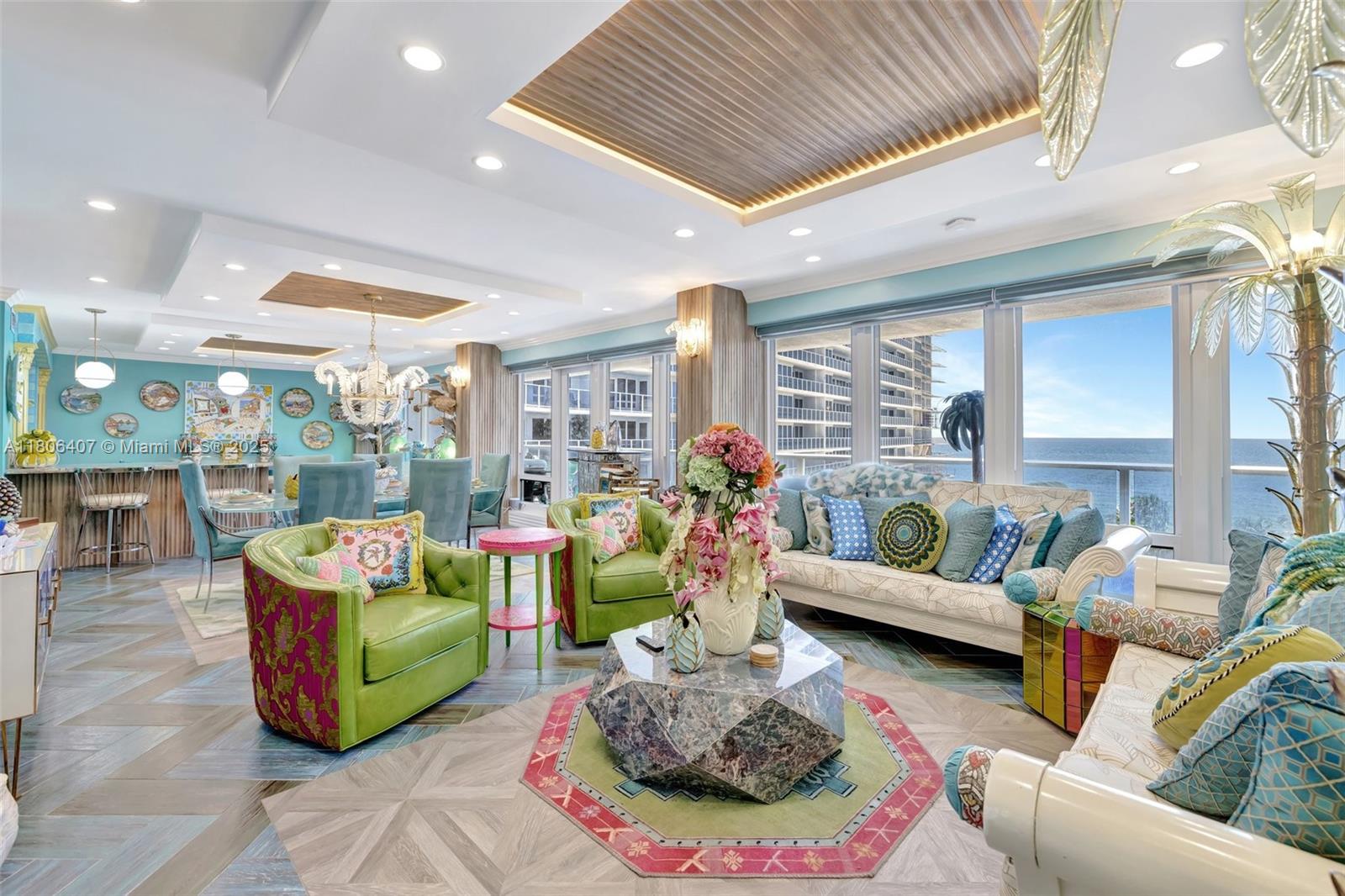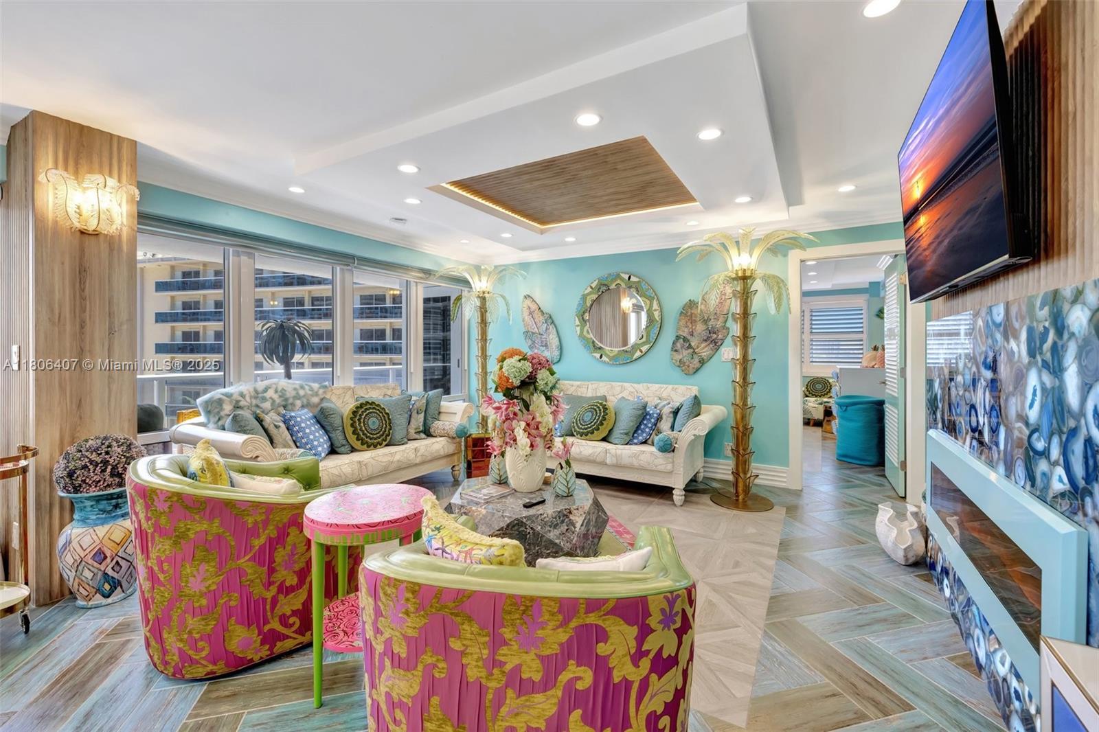 Where the Amalfi Coast meets Miami—this one-of-a-kind 3BD/2.5BA oceanfront residence spans 2,480 sqft with direct, unobstructed Ocean views. Imported Italian tile floors set the stage for a showstopping interior featuring a custom kitchen peninsula with rare Amazonite counters, Bertazzoni stove, and bespoke fireplace framed by glowing agate columns. Impact windows throughout. The primary suite is pure indulgence with a double steam shower and a massive walk-in closet with custom cabinetry. Every bath is elevated with exotic stone and luxury finishes. Boutique-style closets in every room. This is beachfront living redefined. Amazing amenities, all current assessments paid off, and coming soon a resort state pool with cabanas. Enjoy the sunrises with your Private beach access.