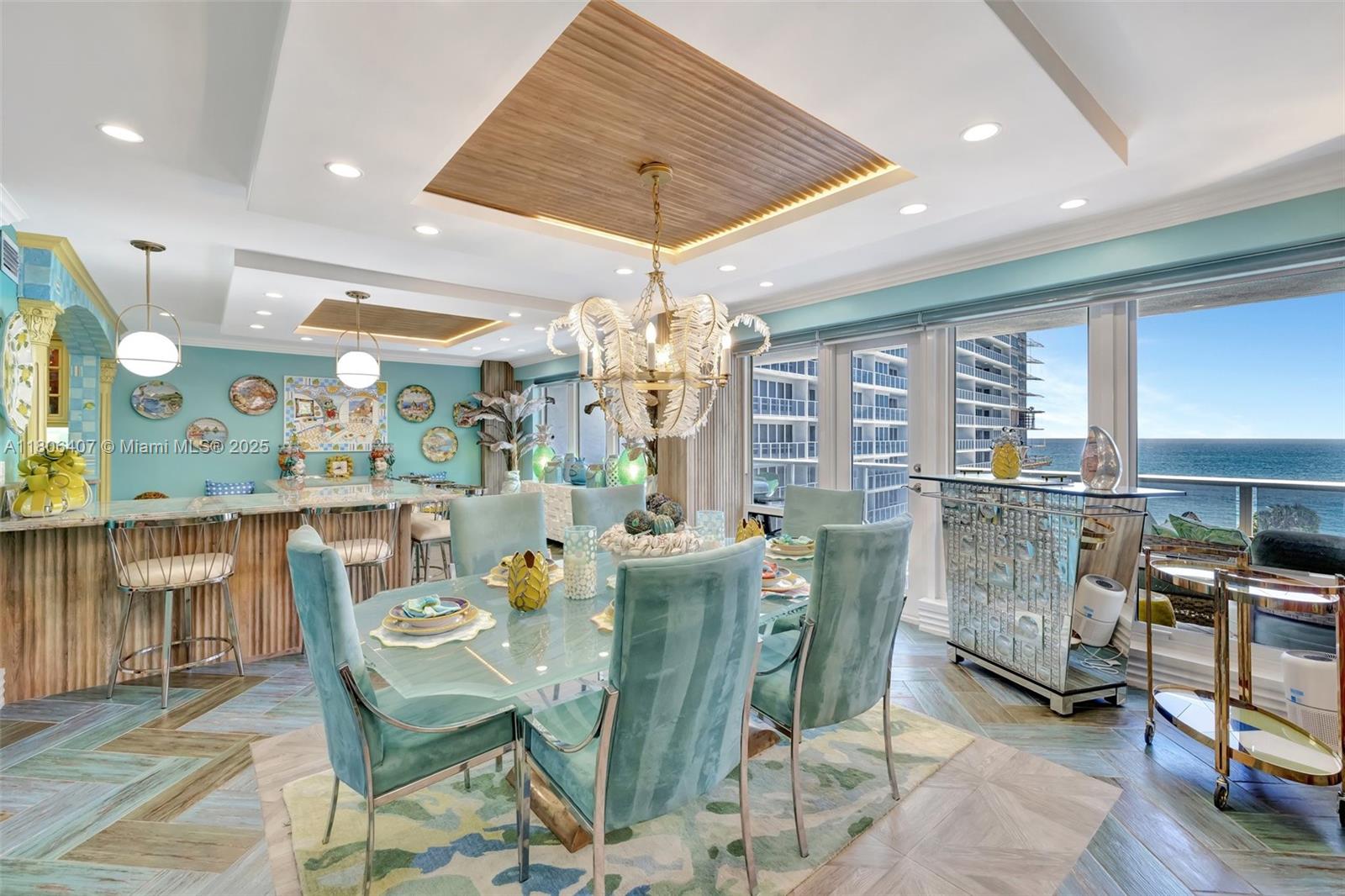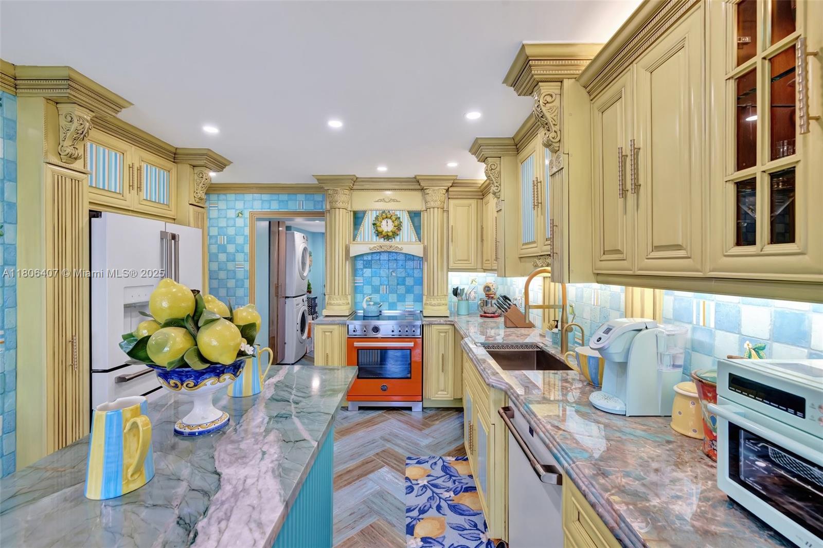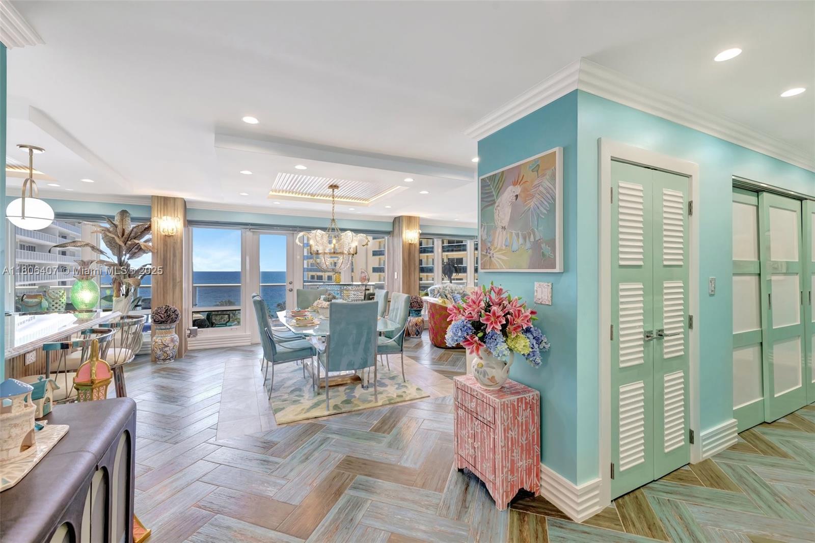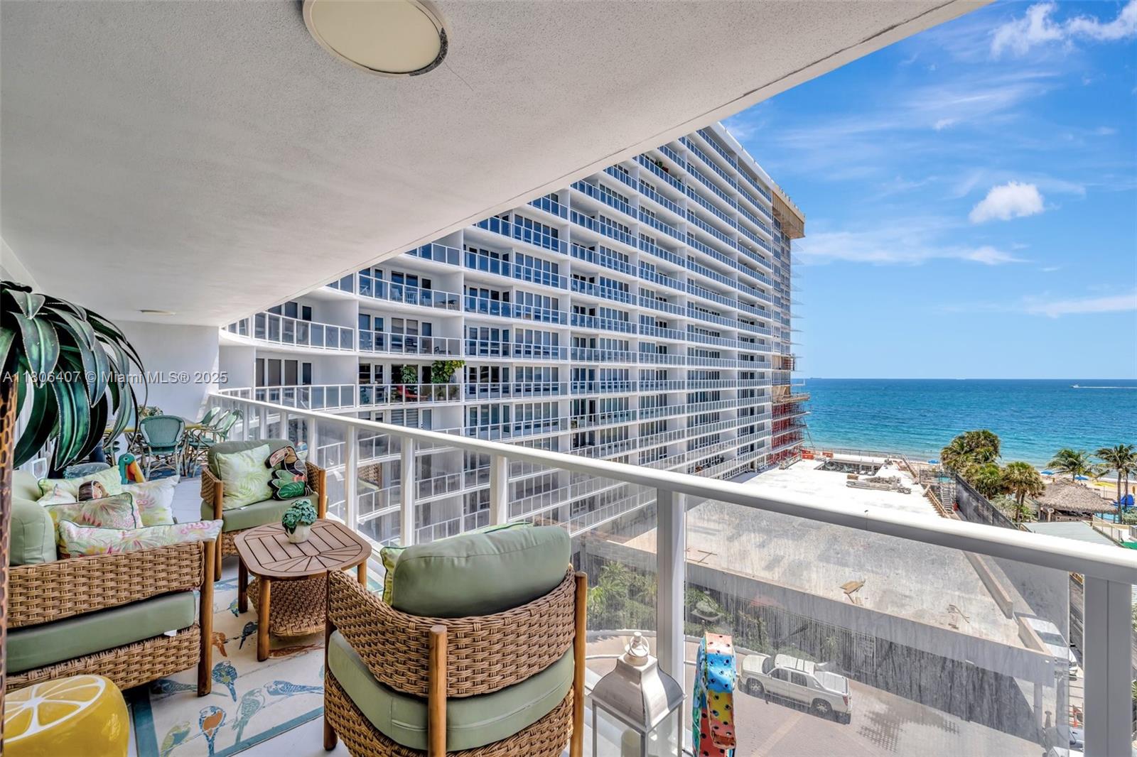 Where the Amalfi Coast meets Miami—this one-of-a-kind 3BD/2.5BA oceanfront residence spans 2,480 sqft with direct, unobstructed Ocean views. Imported Italian tile floors set the stage for a showstopping interior featuring a custom kitchen peninsula with rare Amazonite counters, Bertazzoni stove, and bespoke fireplace framed by glowing agate columns. Impact windows throughout. The primary suite is pure indulgence with a double steam shower and a massive walk-in closet with custom cabinetry. Every bath is elevated with exotic stone and luxury finishes. Boutique-style closets in every room. This is beachfront living redefined. Amazing amenities, all current assessments paid off, and coming soon a resort state pool with cabanas. Enjoy the sunrises with your Private beach access.