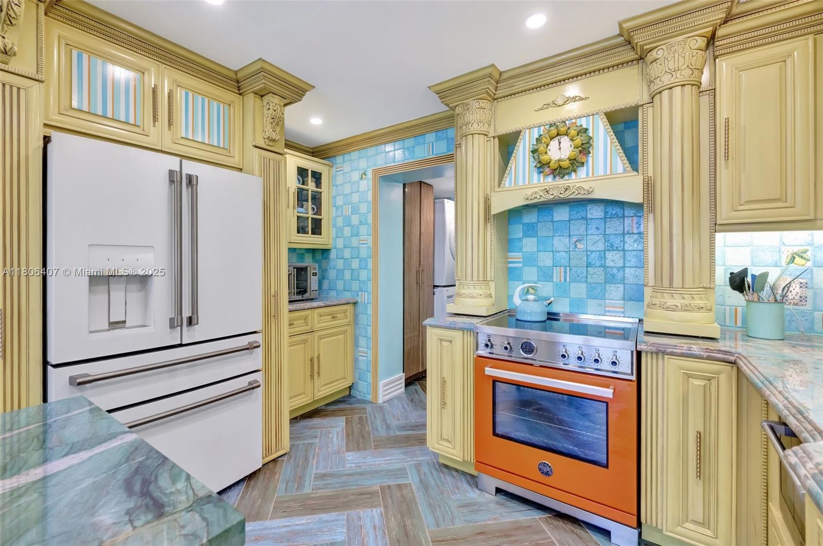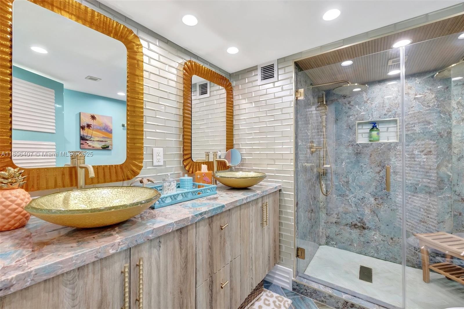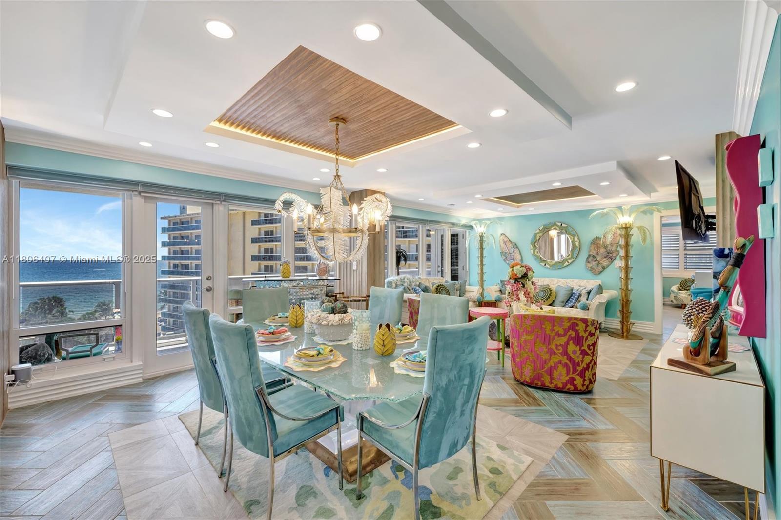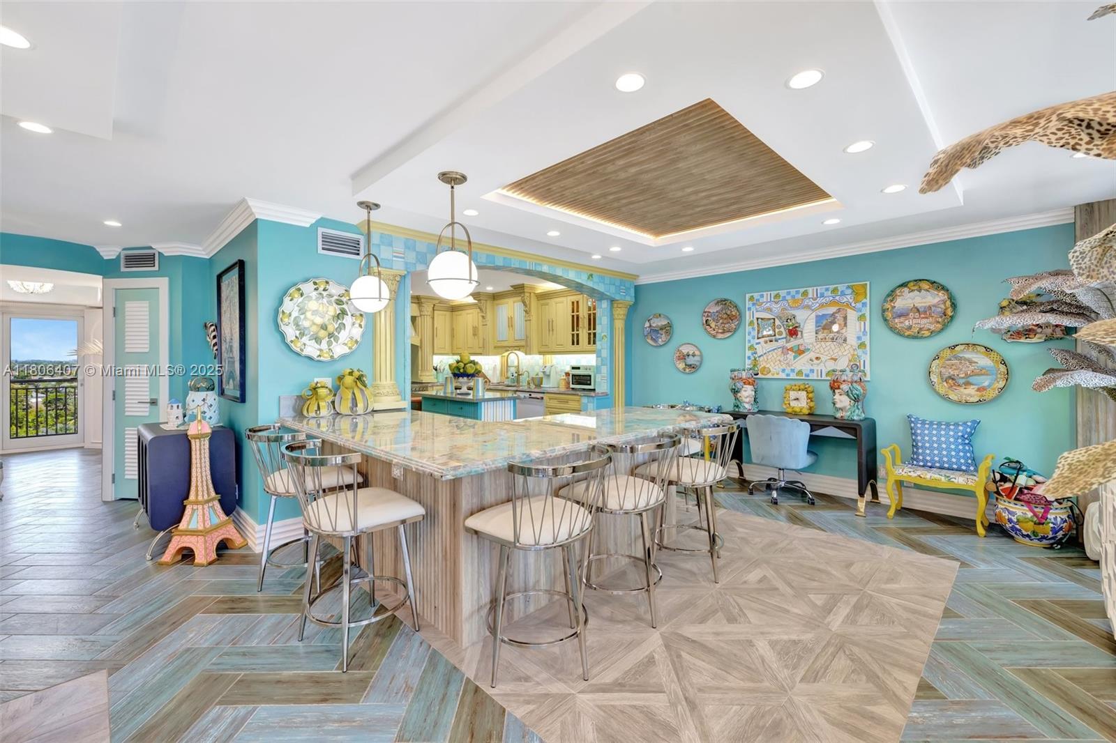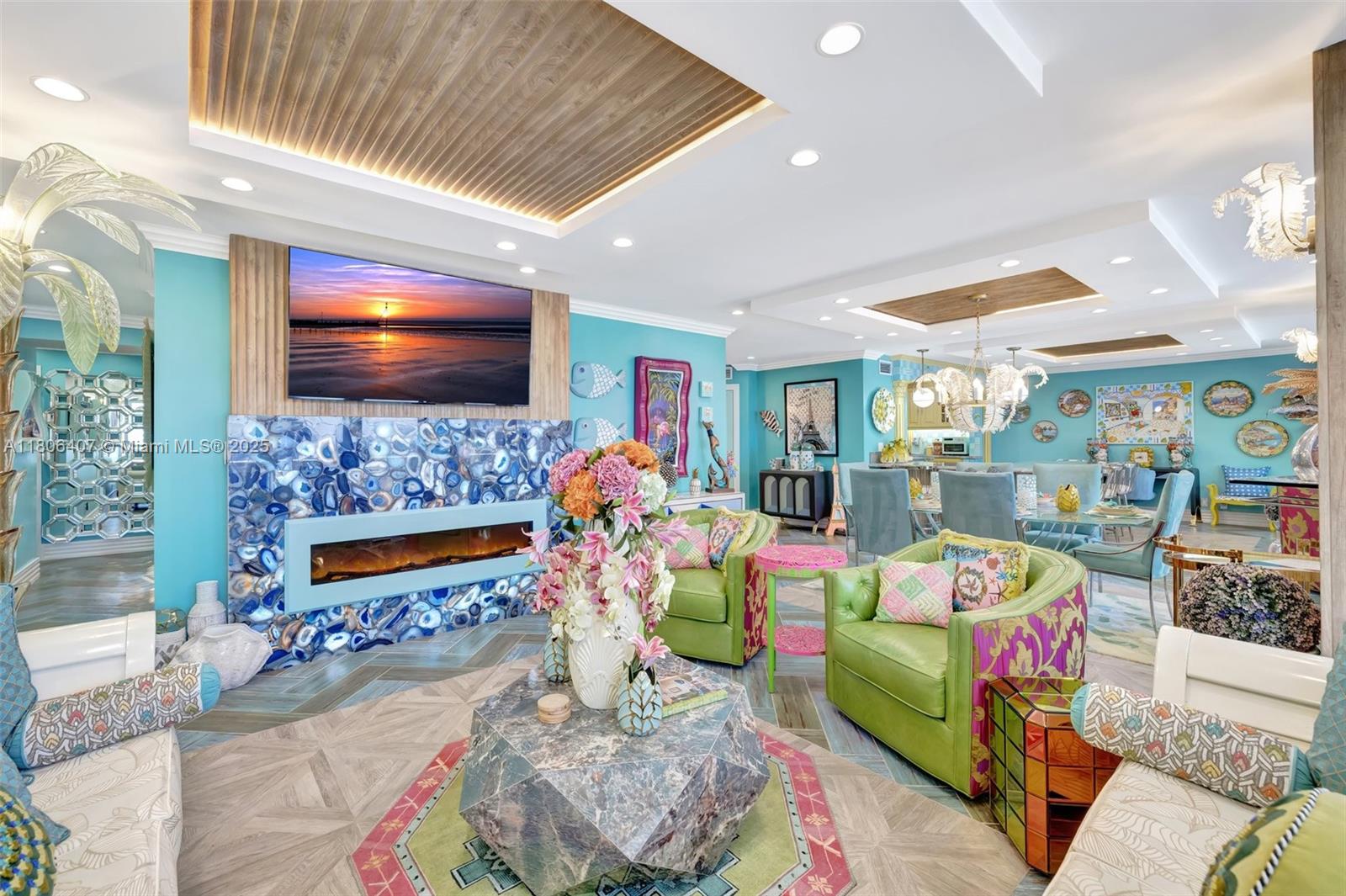 Where the Amalfi Coast meets Miami—this one-of-a-kind 3BD/2.5BA oceanfront residence spans 2,480 sqft with direct, unobstructed Ocean views. Imported Italian tile floors set the stage for a showstopping interior featuring a custom kitchen peninsula with rare Amazonite counters, Bertazzoni stove, and bespoke fireplace framed by glowing agate columns. Impact windows throughout. The primary suite is pure indulgence with a double steam shower and a massive walk-in closet with custom cabinetry. Every bath is elevated with exotic stone and luxury finishes. Boutique-style closets in every room. This is beachfront living redefined. Amazing amenities, all current assessments paid off, and coming soon a resort state pool with cabanas. Enjoy the sunrises with your Private beach access.