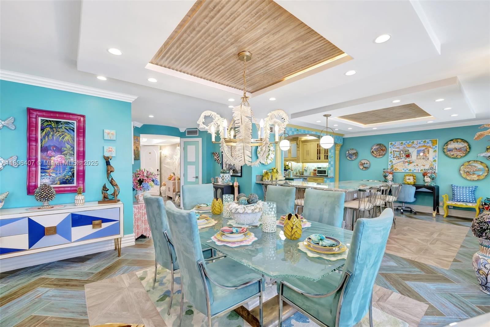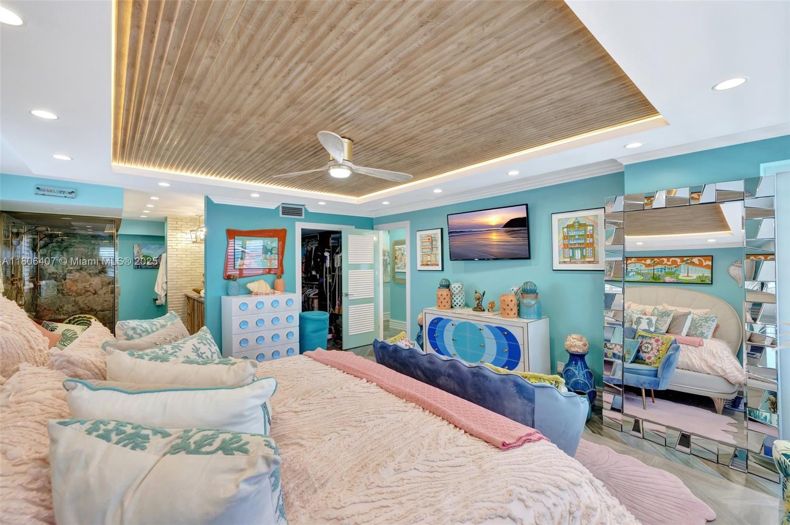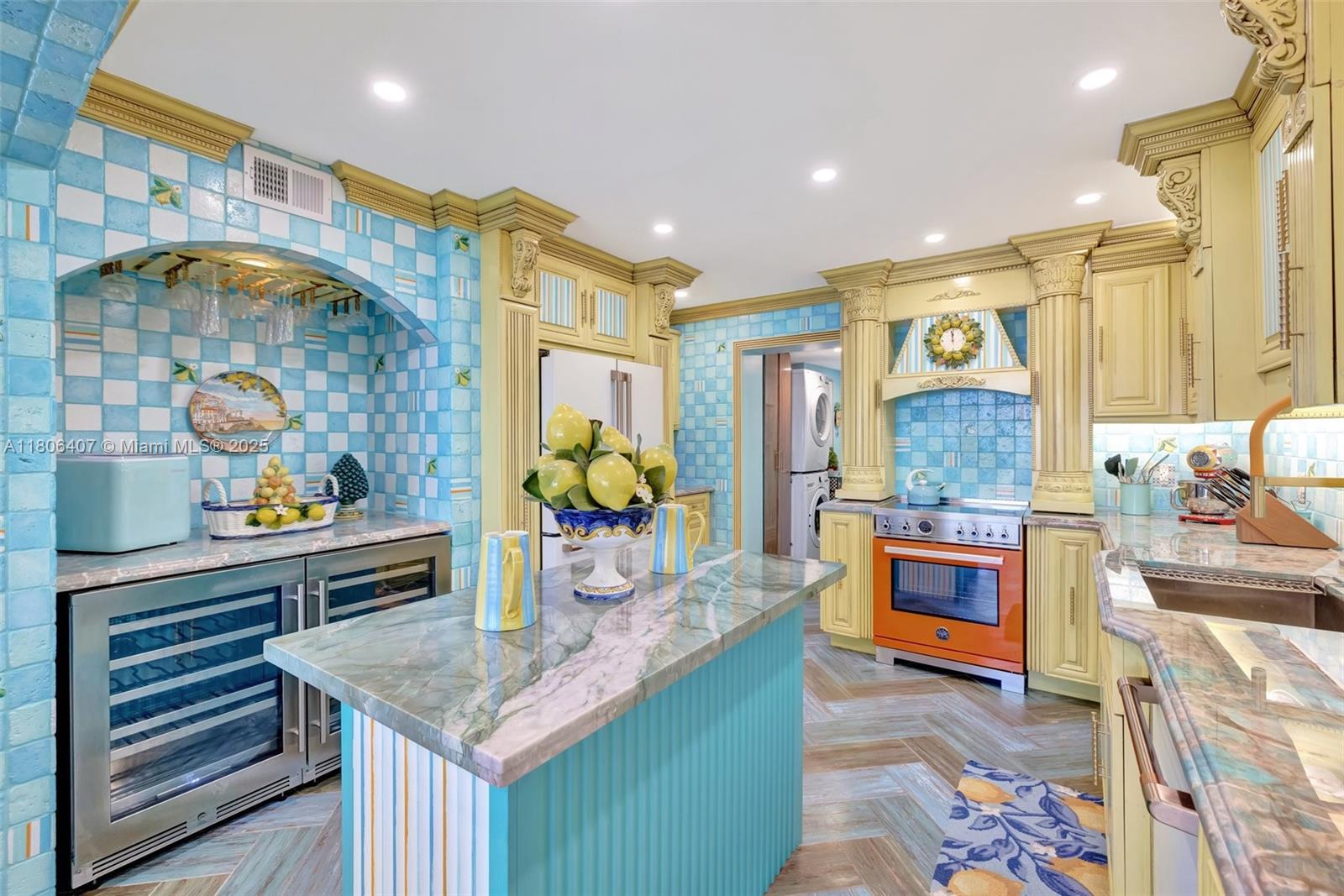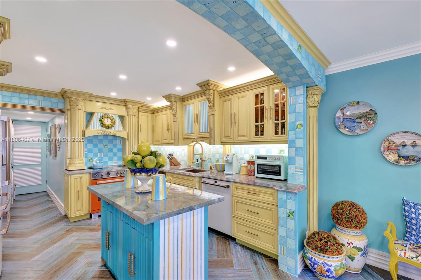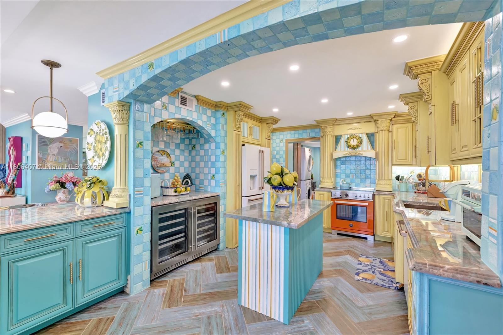 Where the Amalfi Coast meets Miami—this one-of-a-kind 3BD/2.5BA oceanfront residence spans 2,480 sqft with direct, unobstructed Ocean views. Imported Italian tile floors set the stage for a showstopping interior featuring a custom kitchen peninsula with rare Amazonite counters, Bertazzoni stove, and bespoke fireplace framed by glowing agate columns. Impact windows throughout. The primary suite is pure indulgence with a double steam shower and a massive walk-in closet with custom cabinetry. Every bath is elevated with exotic stone and luxury finishes. Boutique-style closets in every room. This is beachfront living redefined. Amazing amenities, all current assessments paid off, and coming soon a resort state pool with cabanas. Enjoy the sunrises with your Private beach access.