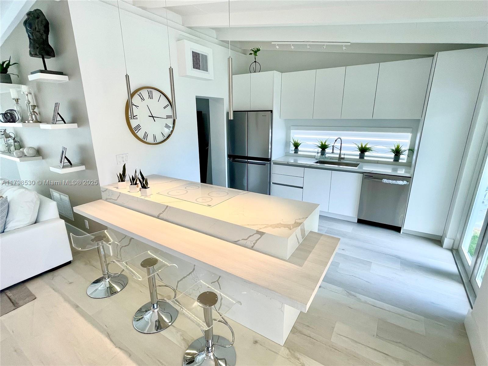 Beautiful waterfront home PROFESSIONALLY REMODELED in the community of Lauderdale Isles. 3bedr+3bathr, new pool,46ft private boat dock, irrigation system & concrete driveway. Dual AC new unit.Ample living & dining areas, Florida room, vaulted exposed beams ceilings. High quality finishes, closet cabinetry, new modern bathrooms. Lots of improvements. Impact glass on most windows, waterproof vinyl flooring. Kitchen w new tops & SS appliances, full size new washer & dryer. [[ Property is shown completely FURNISHED & DECORATED (furnishing & deco are for sale, for only $35,000) ]]. You will love it once you see every detail in this beautiful house.. No HOA. Centrally located close to beaches, airports, highways, downtown Ft Laud, HardRock. :: Recorded video tour available upon request ::