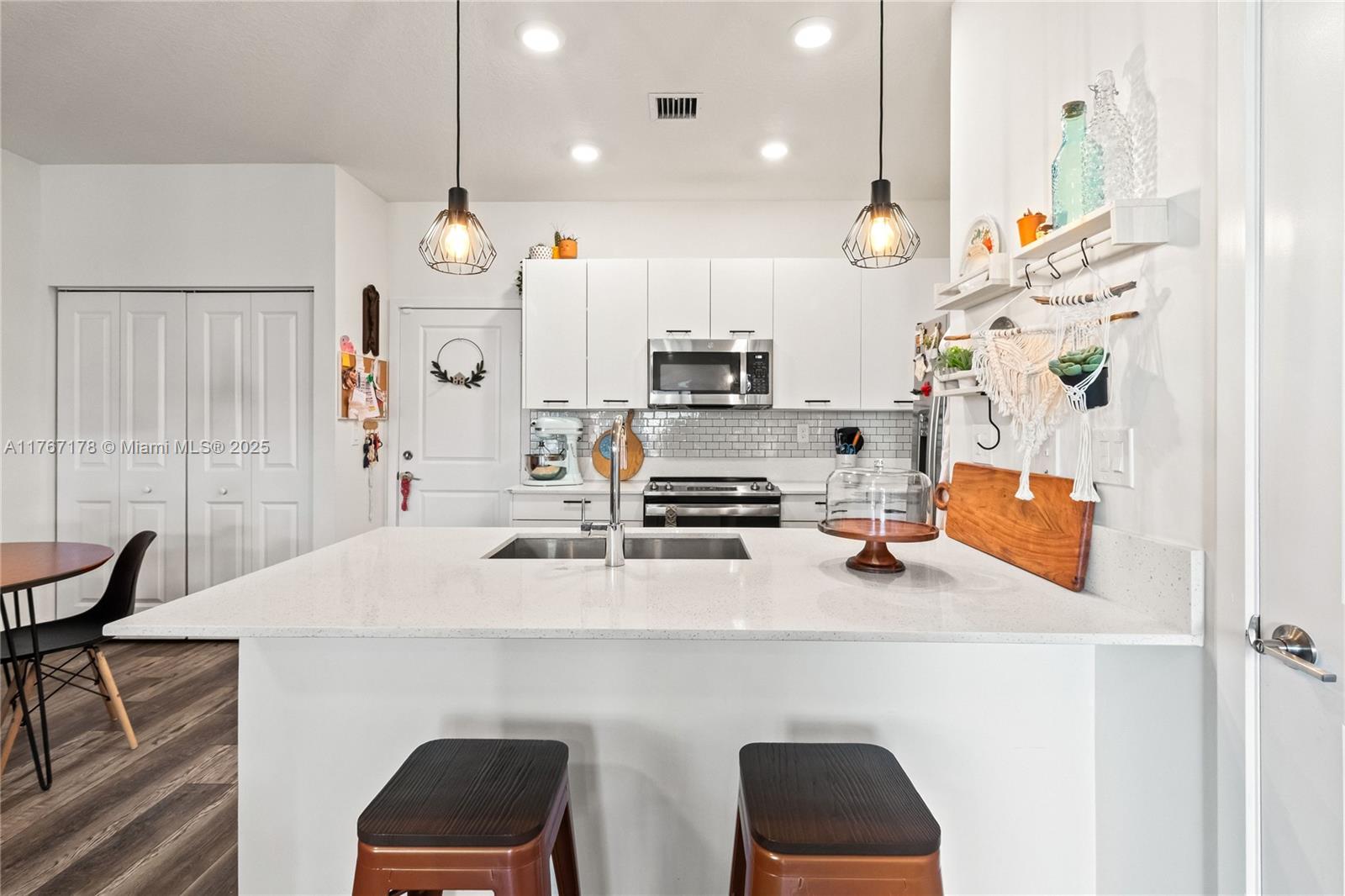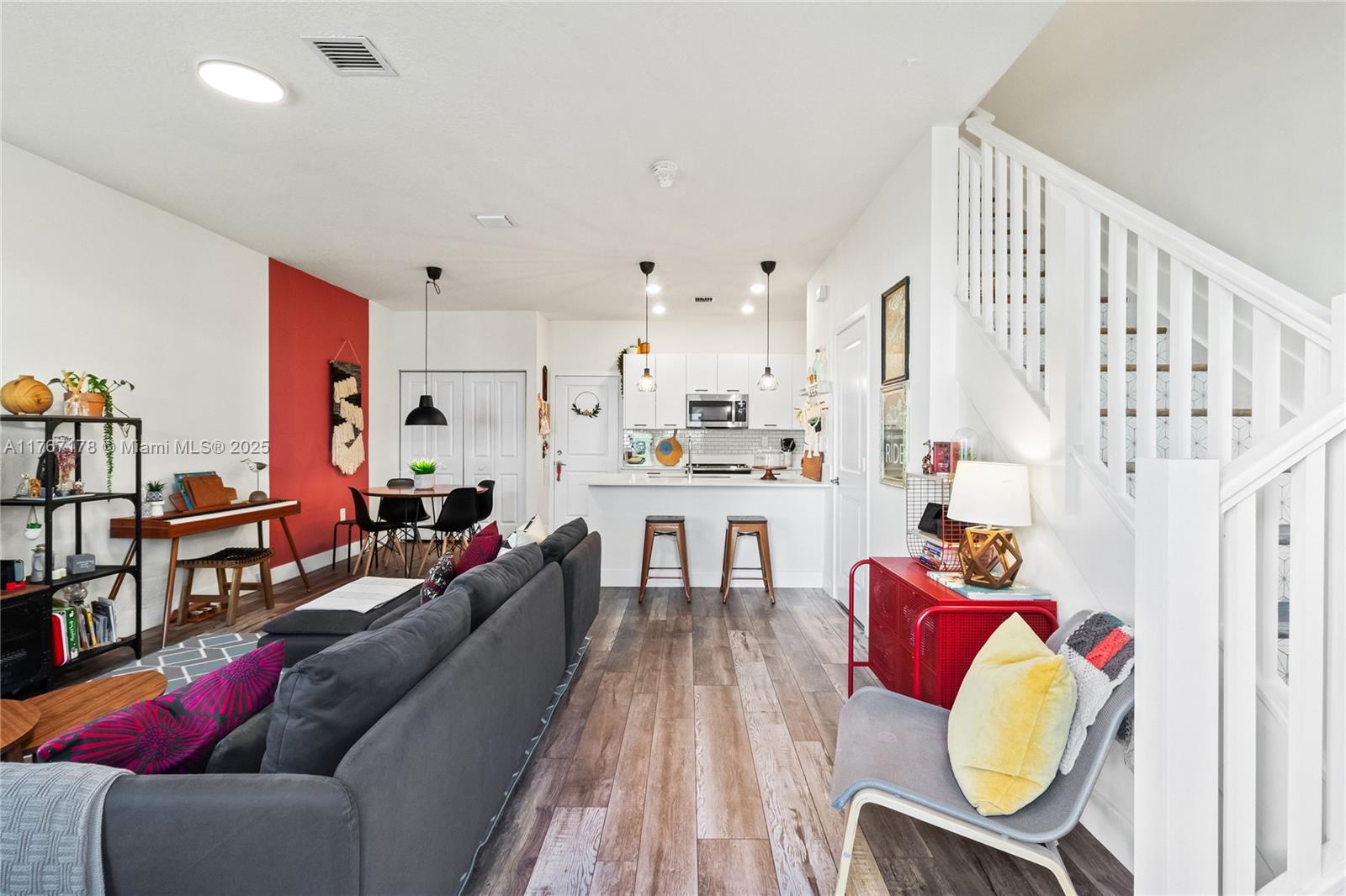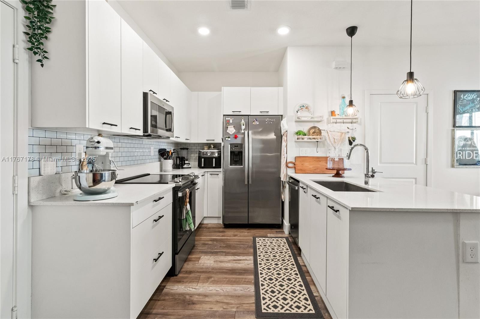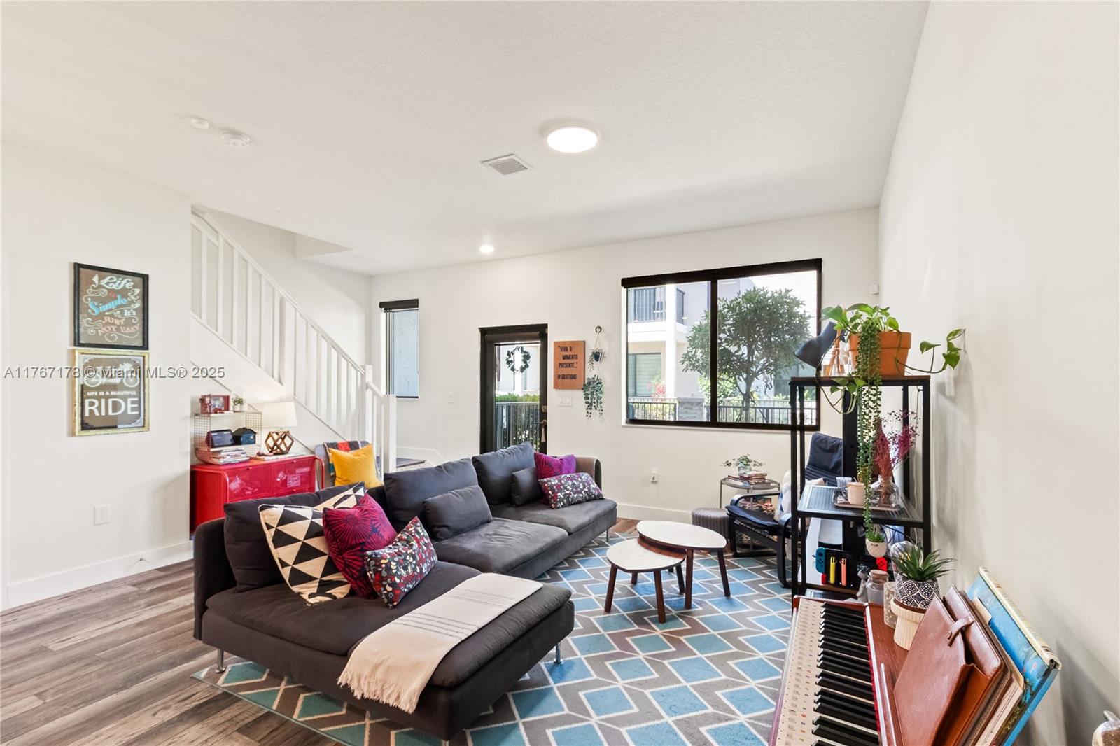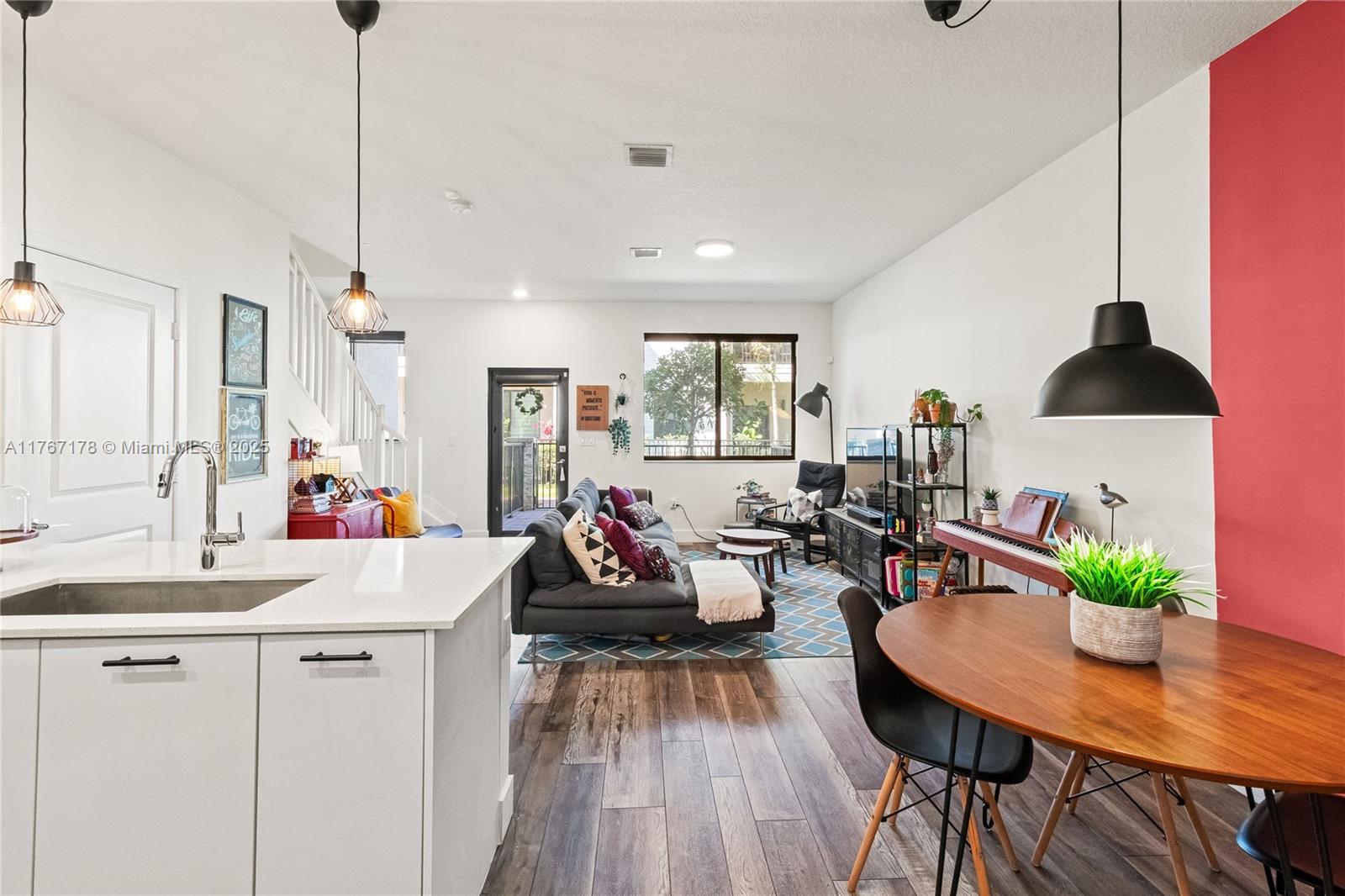 Beautiful 3 beds, 2.5 baths townhouse in the desired City of Doral. Modern kitchen: SS appliances, upscale cabinets, white quartz, pantry. Impact windows, custom blinds, blackouts in the bedrooms. Luxury vinyl flooring. Master bath with shower/glassdoor; second bath with tub. Laundry in the 2nd floor. Balcony in the master bed. Lovely entrance porch. Security camera plus Ring. Automatic two-car garage. Plenty of street parking. New clubhouse: 2-story fitness ctr, kids play area, pool, sun deck, basketball crt, running track, dog park, water splash playground, game room, pool table room, party room and more. Walking distance to bilingual schools (Spanish/Portuguese/French), parks, restaurants, bars, Publix, shops, Doral Art Ctr, UHealth and more. Great Price!