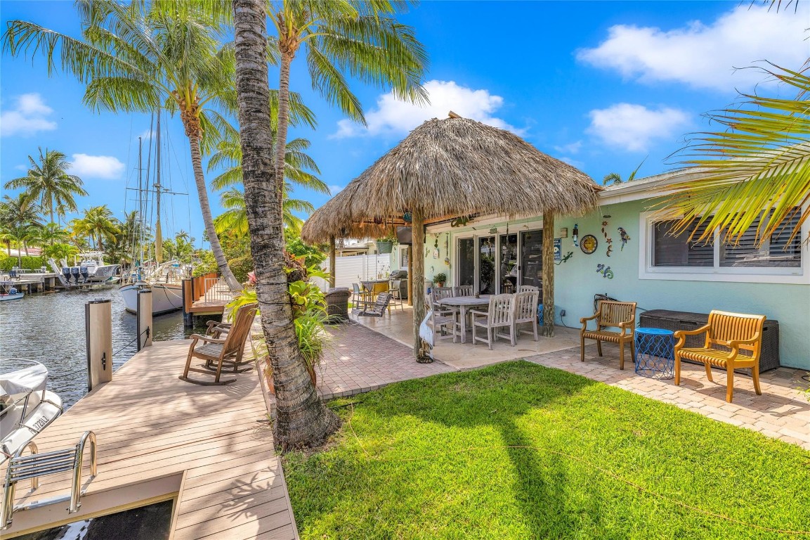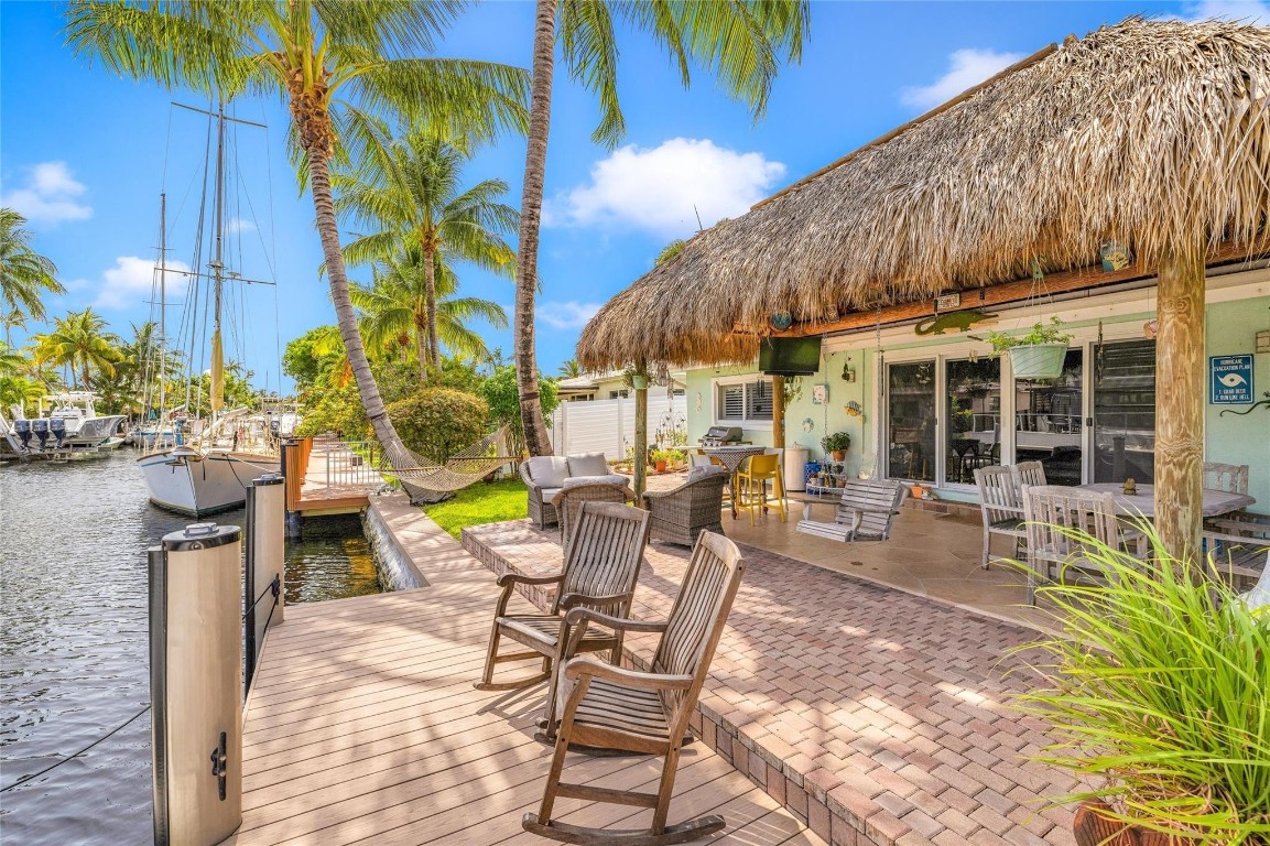 Beautifully remodeled mid-century home with 65 feet of unrestricted deepwater frontage—no fixed bridges to the ocean. Features a spacious open floor plan, gourmet kitchen, and luxurious primary suite with dual vanities. Upgrades include impact-resistant windows and doors, a new metal roof, premium flooring, and designer finishes throughout the property. Enjoy waterfront living with a tiki hut and private dock, just minutes to Las Olas, downtown, beaches, FLL Airport, and the hospital. Boater’s dream in an excellent Fort Lauderdale location! NO HOA