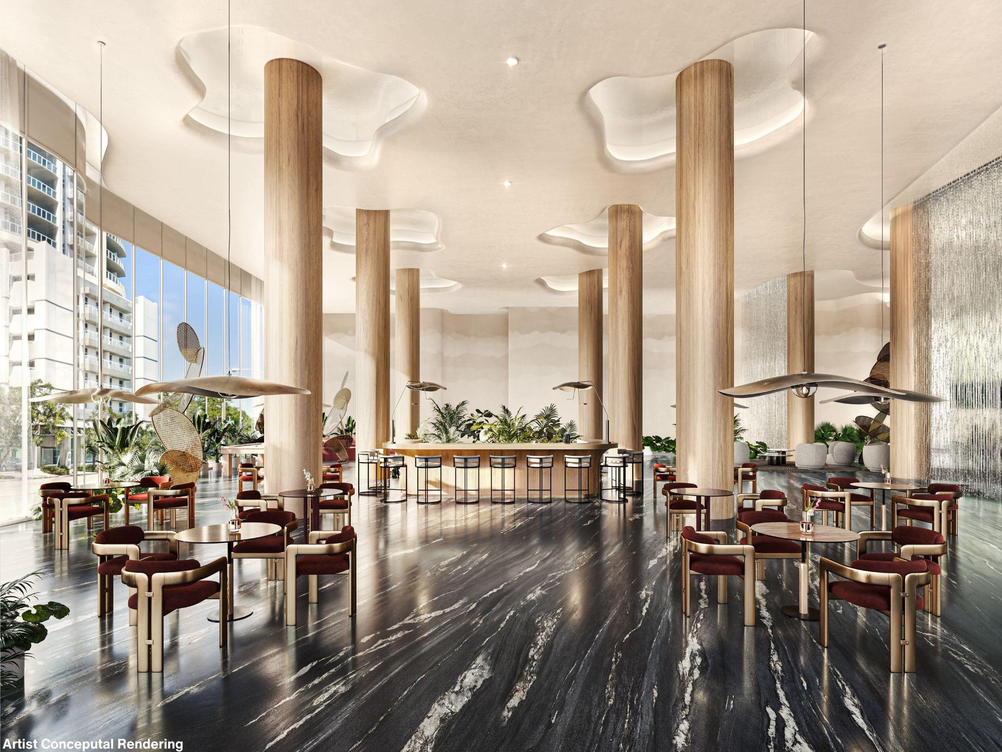 Ombelle Fort Lauderdale: 2-Bed / 2-Bath with beautiful North East views! Future home of Equinox! Only 5% deposit at contract. Fully finished & furnished from Studio to 3-Bedroom. Finishes include oak wood/porcelain tile flooring, floor-to-ceiling kitchen cabinetry, Smeg appliances, luxury finished bathrooms. Over 100,000 SF of indoor/outdoor amenities: 2 indoor pickleball courts, 2 pools, fitness center, golf simulator, yoga & pilates studio, cold plunges, indoor & outdoor saunas, co-working lounge, music & podcast studio, mini golf & much more! 15,000 SF lobby. Prime location in Flagler Village - walking distance to Brightline, Las Olas & top dining.