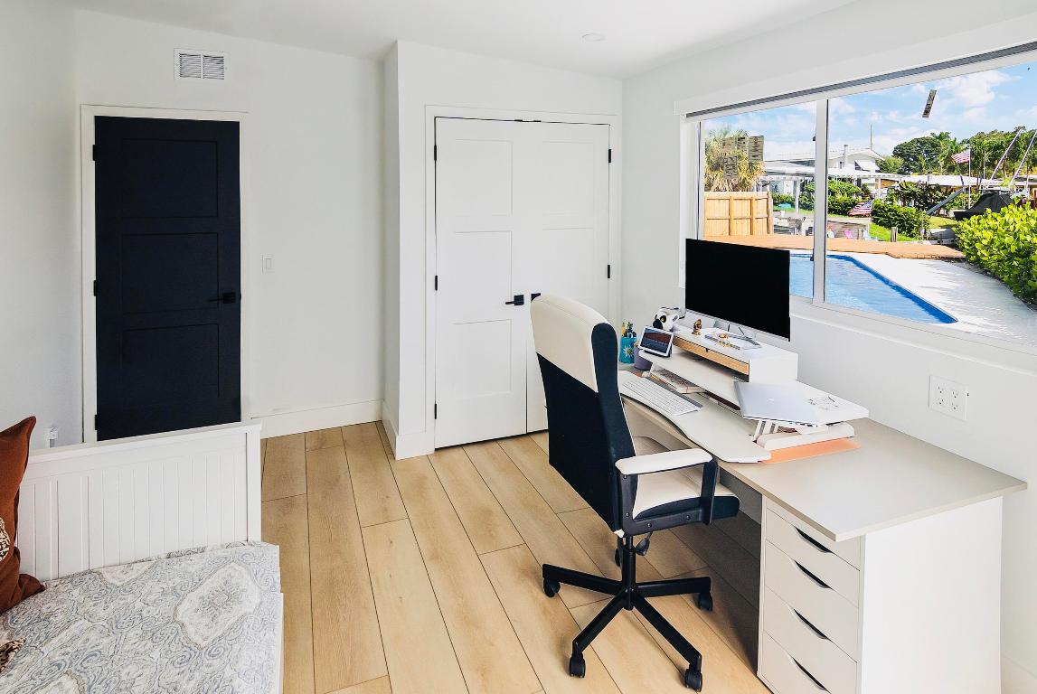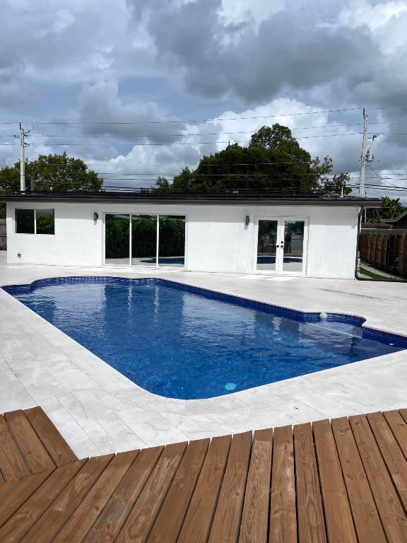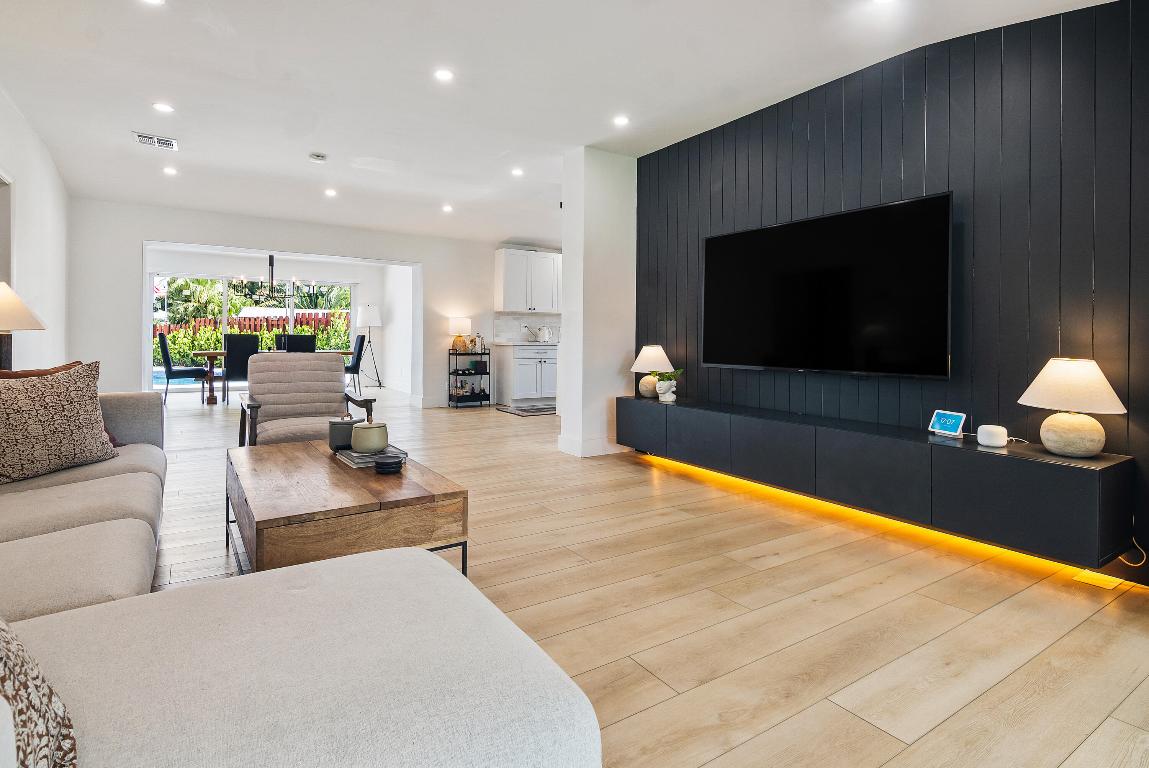 Experience luxury coastal living in this beautifully fully renovated 4BD/2BA waterfront home offering direct ocean access & a private 20ft dock that fits a 17ft boat. A converted garage with a private entrance, ideal as a 5th bedroom, home office, or potential income-producing unit. Energy-efficient property includes solar panels, a hybrid pool pump, hybrid water heater & impact windows throughout. Remodeled kitchen boasts upgraded appliances, gas range, quartz countertops, central island, & wine fridge. Fully tiled pool surrounded by a spacious limestone & pinewood deck. Features a new metal roof (2023) & an expansive circular driveway with ample parking. Perfect for a growing family, investor, multi-gen living or short-term rental opportunity, this versatile property checks every box.