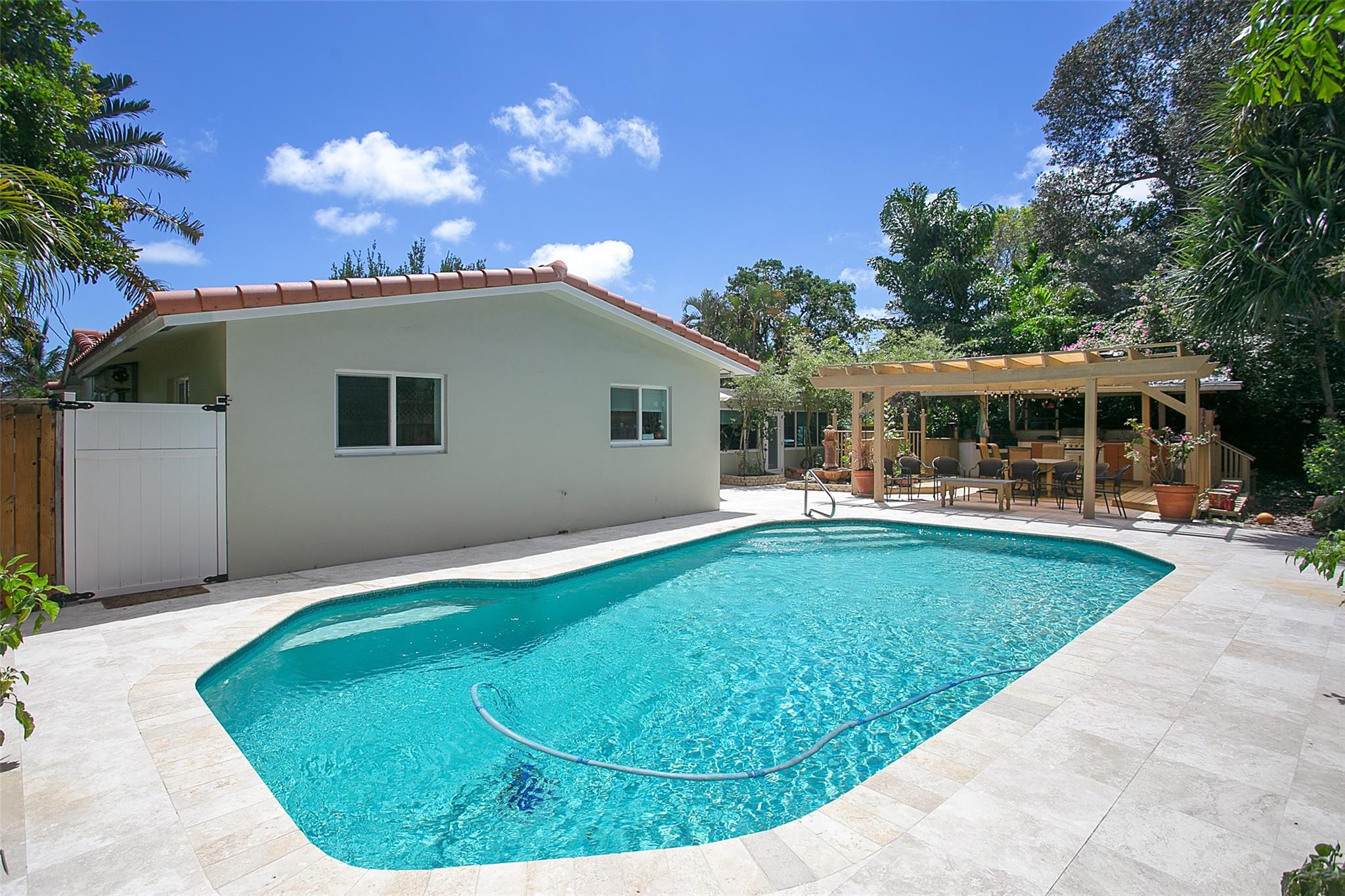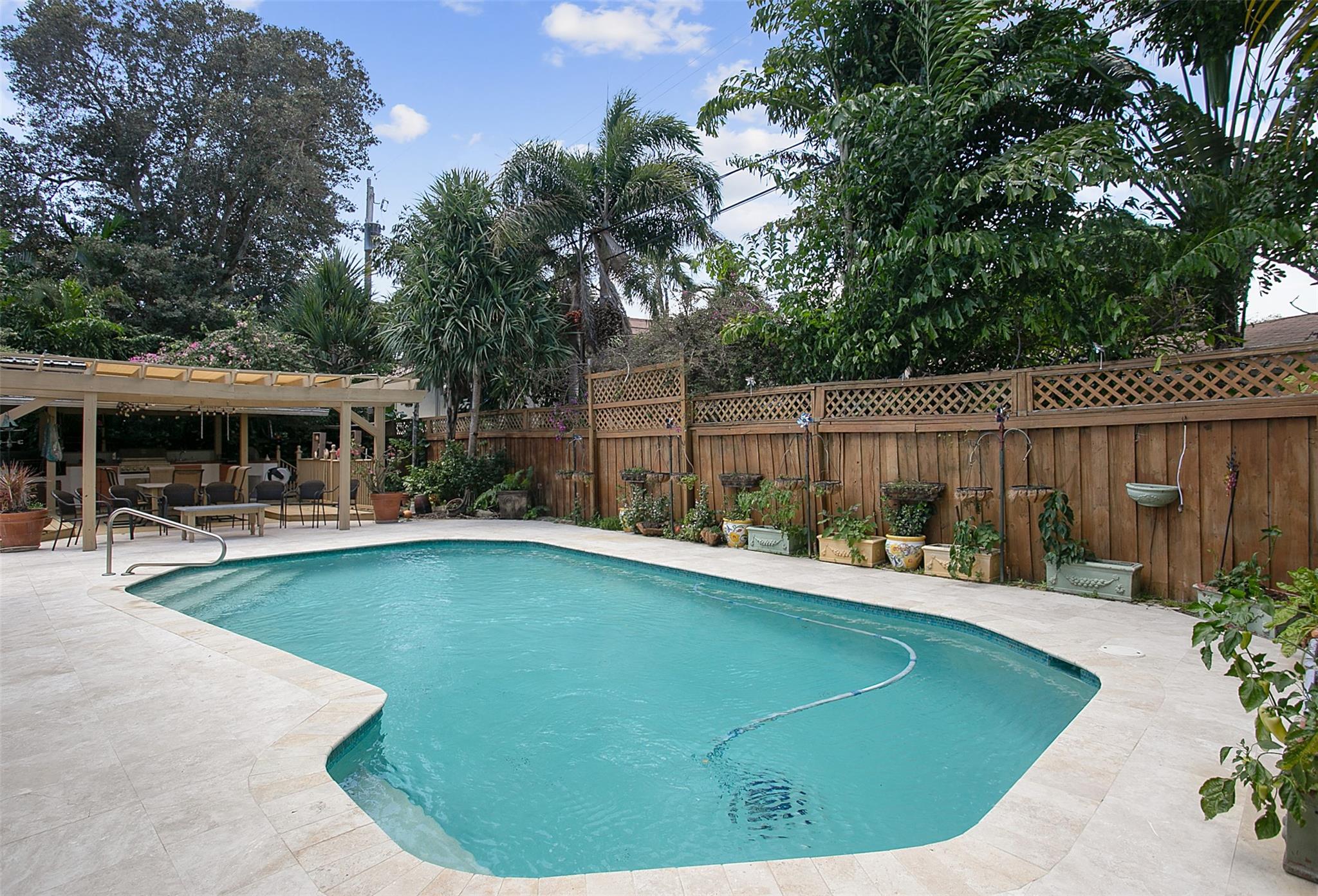 Live the dream in this remodeled 4/3 with S-tile roof, Impact windows, newer AC, updated kitchen with SS appliances, pot filler, custom wood cabinets. All 3 baths have been updated stylishly. Marble floors in living areas, laminate in bedrooms; fireplace in living room, skylight in family room. Storage galore in garage, utility room and pull down steps to attic. Insta-Heat and Solar water ensure hot H2O on demand; Cast iron pipes were replaced; Well & pump save $$ on irrigation. Light and open flow from kitchen/dining room to outside oasis where gems sparkle on the zen-like patio beneath the pergola, the grills are at the ready to cook your favorites and the pool promises refreshment. Home is perfectly located near a-rated schools, shopping, hospitals and beach. Your turn to call it home