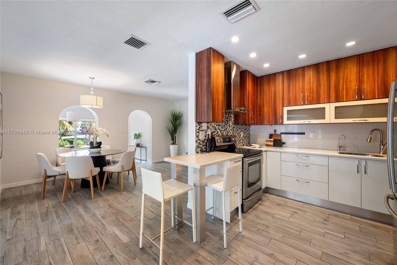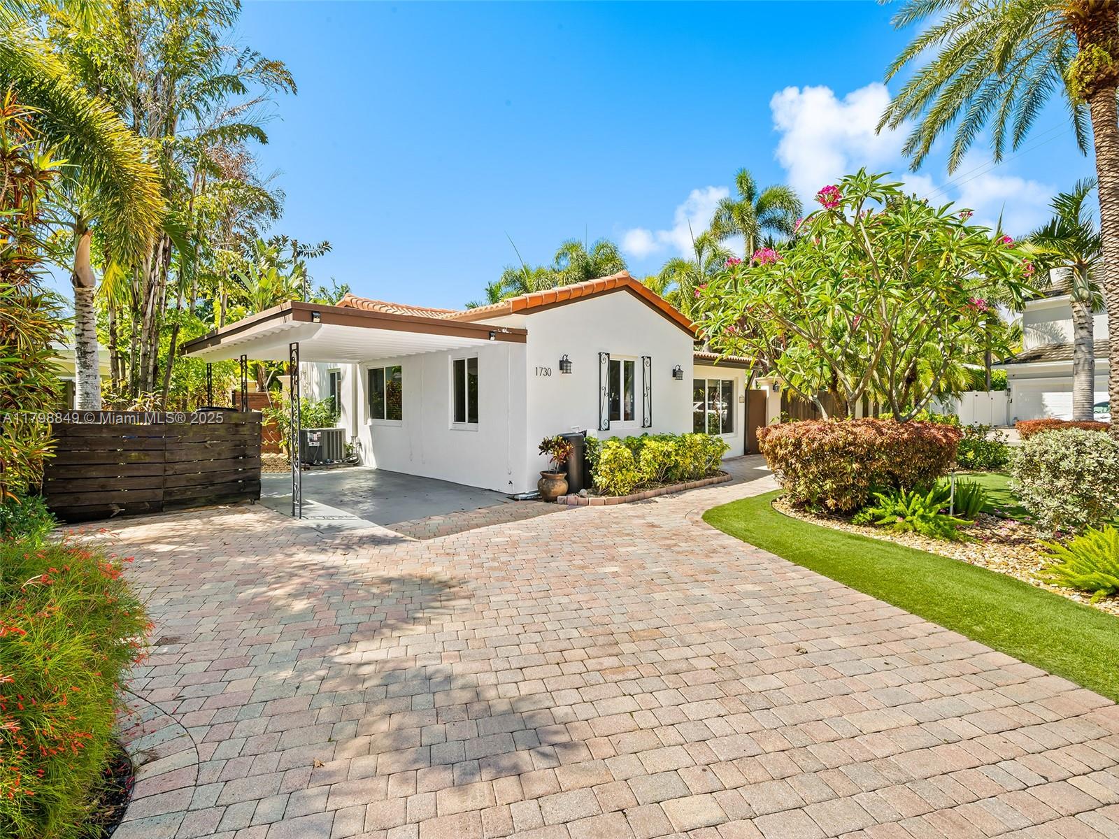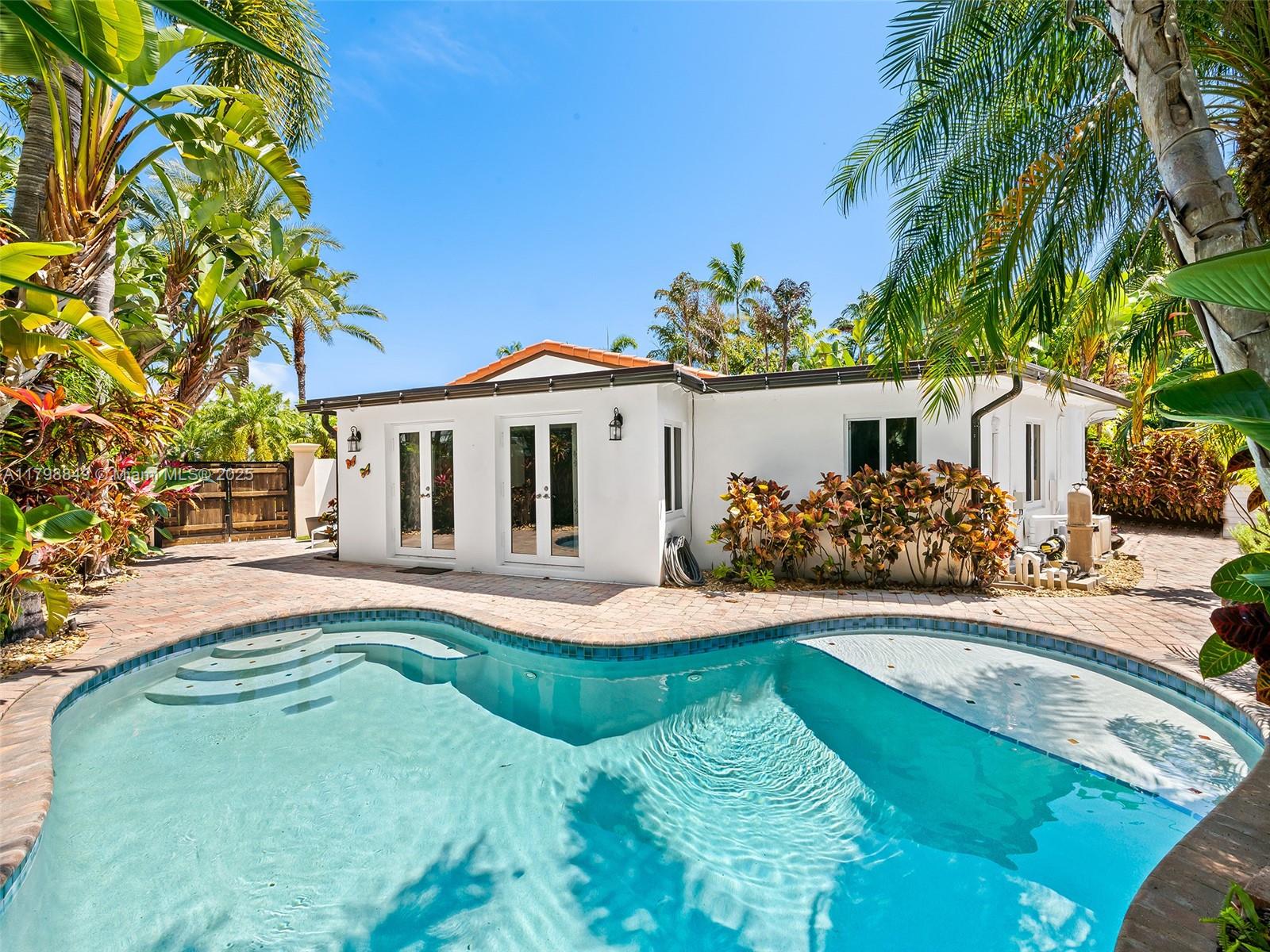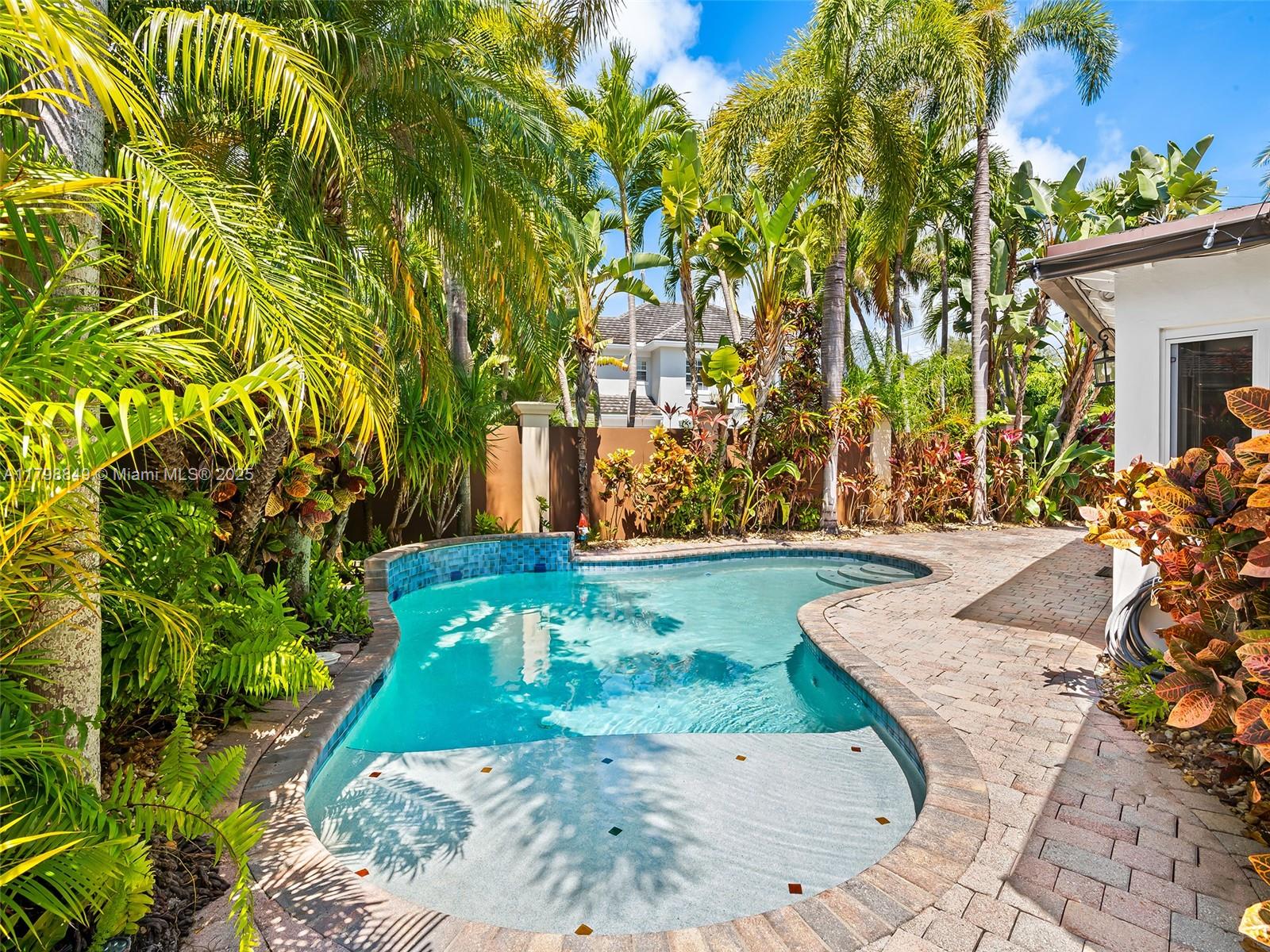 Discover this tastefully renovated dream oasis in prestigious Poinsettia Heights. Set on a professionally landscaped corner lot, this 4-Bedroom, 2-Bath home boasts an open-concept plan & ceramic tile floors. Impact windows & doors offer security & efficiency. Updated kitchen featuring quartz countertops shines with stainless steel appliances. Step outside to your resort-style salt pool with a sun shelf & waterfall as your private retreat, surrounded by lush vegetation, beautiful trees, & privacy wall. Enjoy the perfect blend of style & comfort. Relax in the huge screened-in porch with a Private Sauna. Minutes from everything, this stunning updated property is move-in ready & designed for relaxation & entertaining. THIS PROPERTY COMES WITH A 2% MORTGAGE RATE REDUCTION! AMAZING DEAL!