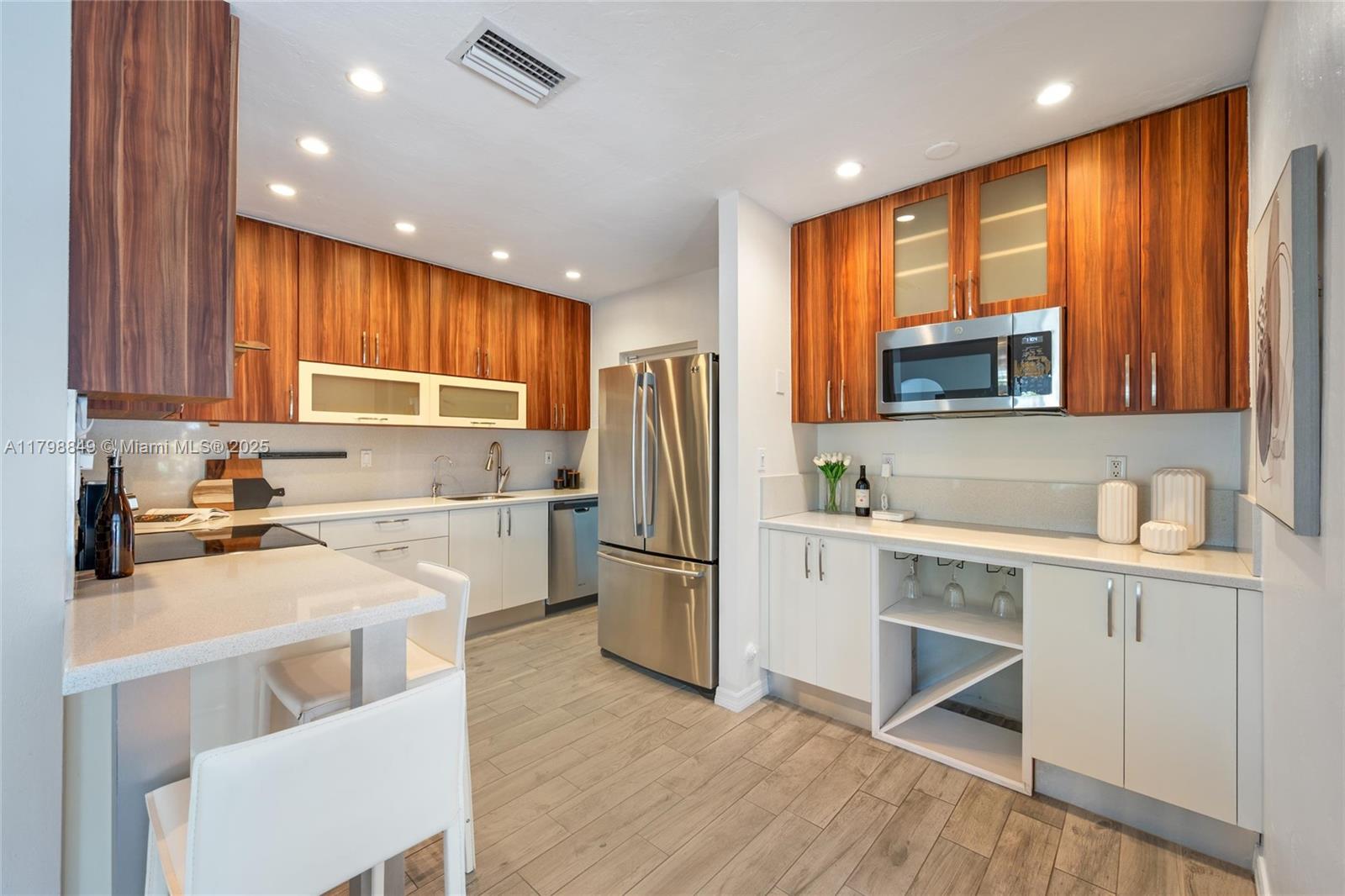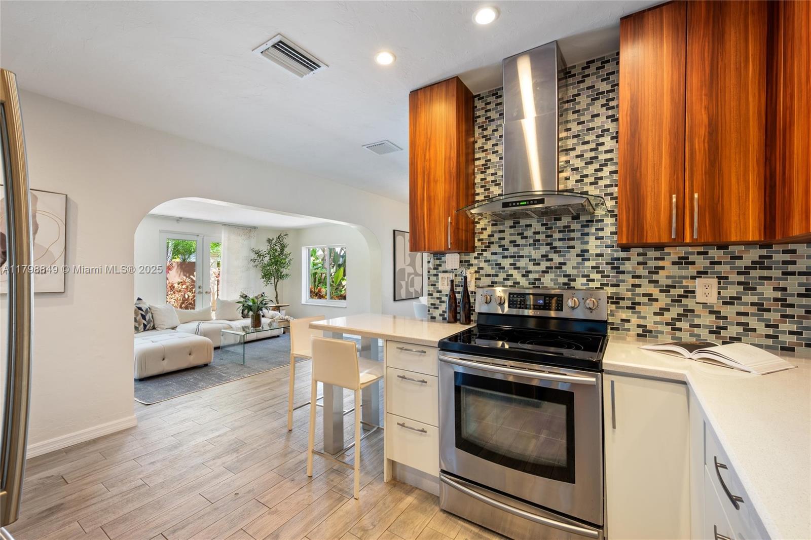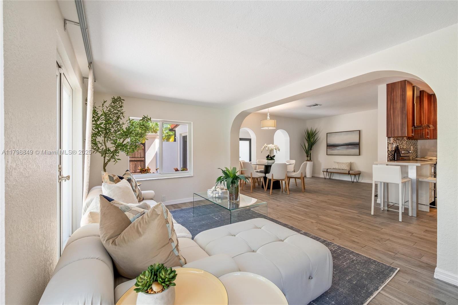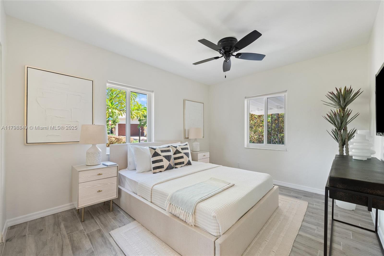 Discover this tastefully renovated dream oasis in prestigious Poinsettia Heights. Set on a professionally landscaped corner lot, this 4-Bedroom, 2-Bath home boasts an open-concept plan & ceramic tile floors. Impact windows & doors offer security & efficiency. Updated kitchen featuring quartz countertops shines with stainless steel appliances. Step outside to your resort-style salt pool with a sun shelf & waterfall as your private retreat, surrounded by lush vegetation, beautiful trees, & privacy wall. Enjoy the perfect blend of style & comfort. Relax in the huge screened-in porch with a Private Sauna. Minutes from everything, this stunning updated property is move-in ready & designed for relaxation & entertaining. THIS PROPERTY COMES WITH A 2% MORTGAGE RATE REDUCTION! AMAZING DEAL!