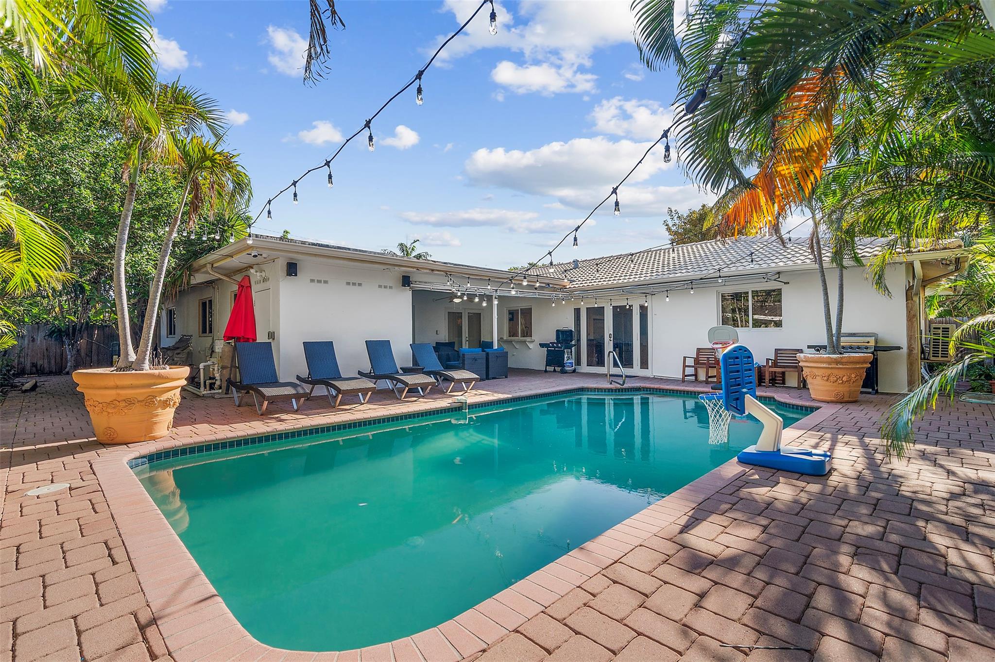 4/3 with a 2 car garage in the Imperial Point Suburb of Fort Lauderdale. Imperial Point is a coveted neighborhood known for a family friendly environment that is also close to the Beach, great schools, hospitals and Downtown Fort Lauderdale. Fantastic layout with a split plan bedroom set up and open concept kitchen / living area. Impact windows and a newer AC. The backyard has a great salt water pool, large patio for getting sun but also a covered porch for getting shade and rain. Great location with tons of shopping, restaurants and nightlife all less than 1 mile away.