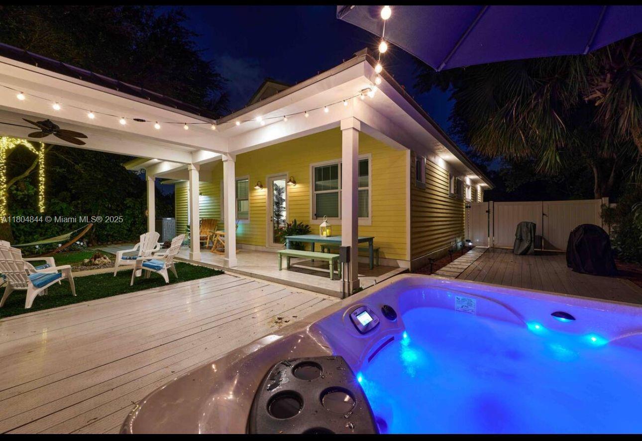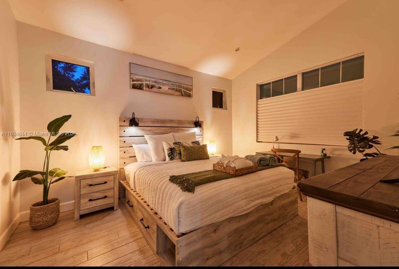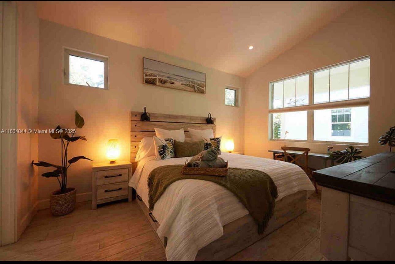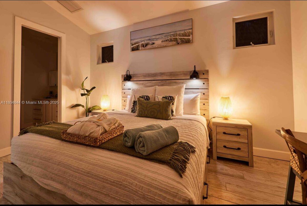 This stunning duplex features two detached units, built in 2016 w/ island-inspired contemporary architecture design w/ high ceilings & beautiful open-concept layout, private entrances & plenty of parking on each sides to park a camper and/or a boat. Front unit features 2 bedrooms 1 1/2 bath, laundry room & 1 car garage. The Back unit has 2 bedrooms 1 bath w/ washer & dryer & new Carrier HVAC system. Features spacious living areas w/ elegant kitchens, and luxurious bathrooms. Enjoy modern comforts such as impact windows & doors, a durable metal roof, Nest smart thermostats & smart locks. Step outside to a private oversize backyard oasis w/ room for a pool. Includes a 6-person Jacuzzi & two large storage sheds. No HOA, perfect for Airbnb.