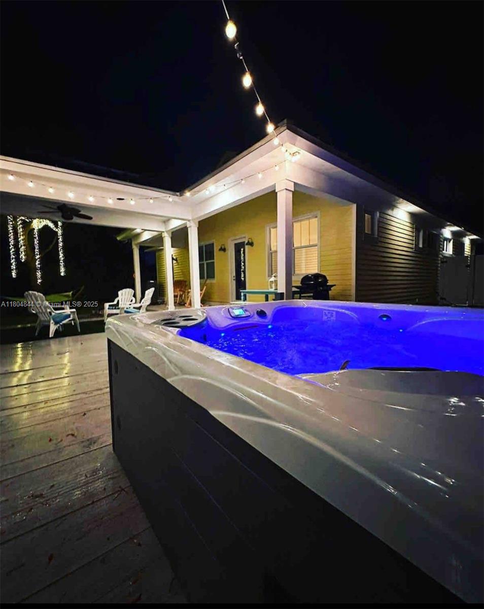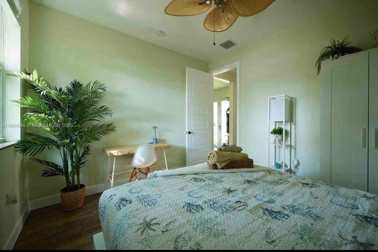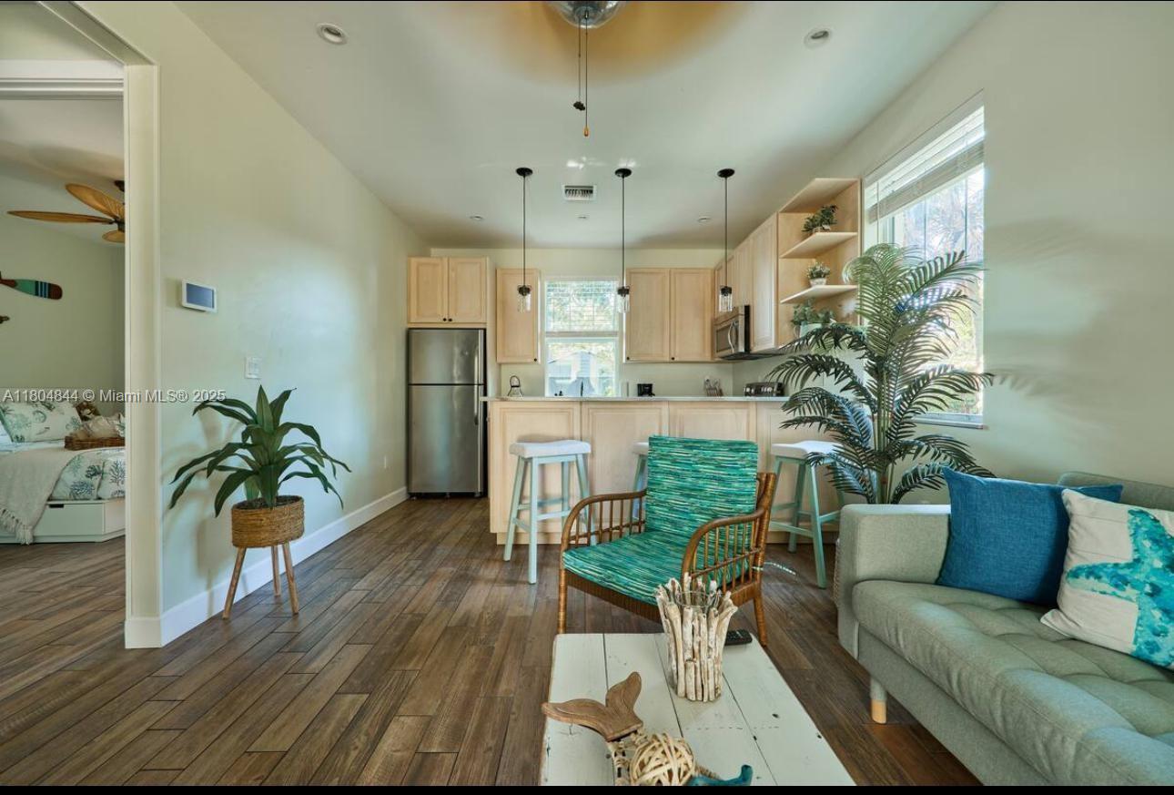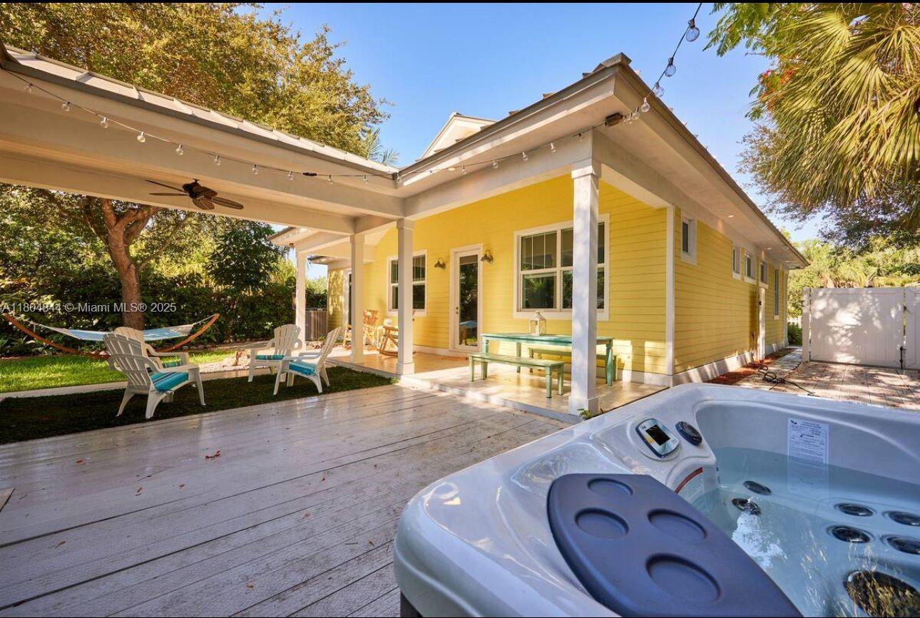 This stunning duplex features two detached units, built in 2016 w/ island-inspired contemporary architecture design w/ high ceilings & beautiful open-concept layout, private entrances & plenty of parking on each sides to park a camper and/or a boat. Front unit features 2 bedrooms 1 1/2 bath, laundry room & 1 car garage. The Back unit has 2 bedrooms 1 bath w/ washer & dryer & new Carrier HVAC system. Features spacious living areas w/ elegant kitchens, and luxurious bathrooms. Enjoy modern comforts such as impact windows & doors, a durable metal roof, Nest smart thermostats & smart locks. Step outside to a private oversize backyard oasis w/ room for a pool. Includes a 6-person Jacuzzi & two large storage sheds. No HOA, perfect for Airbnb.