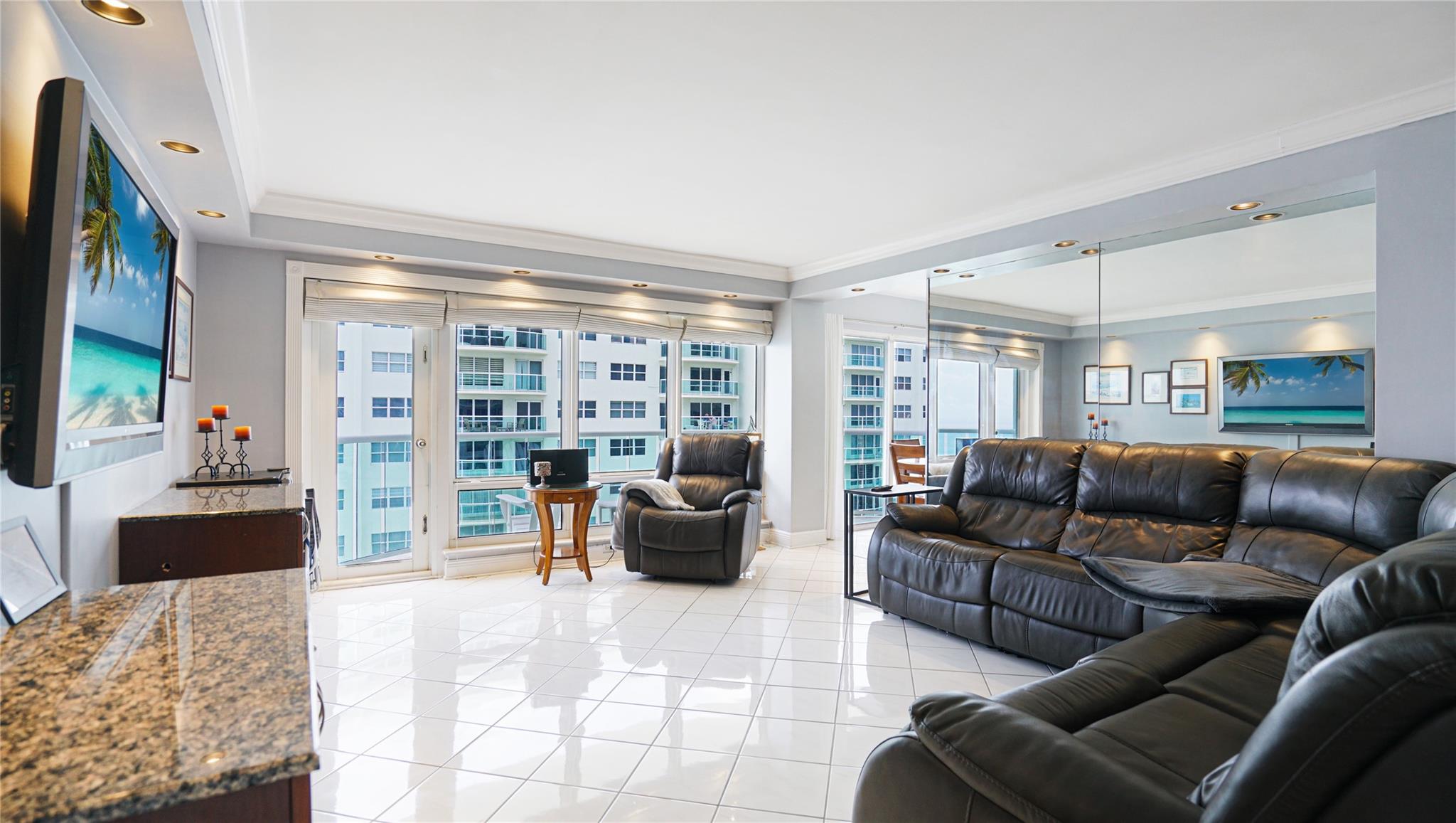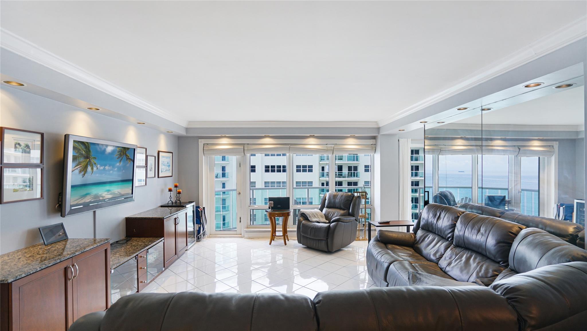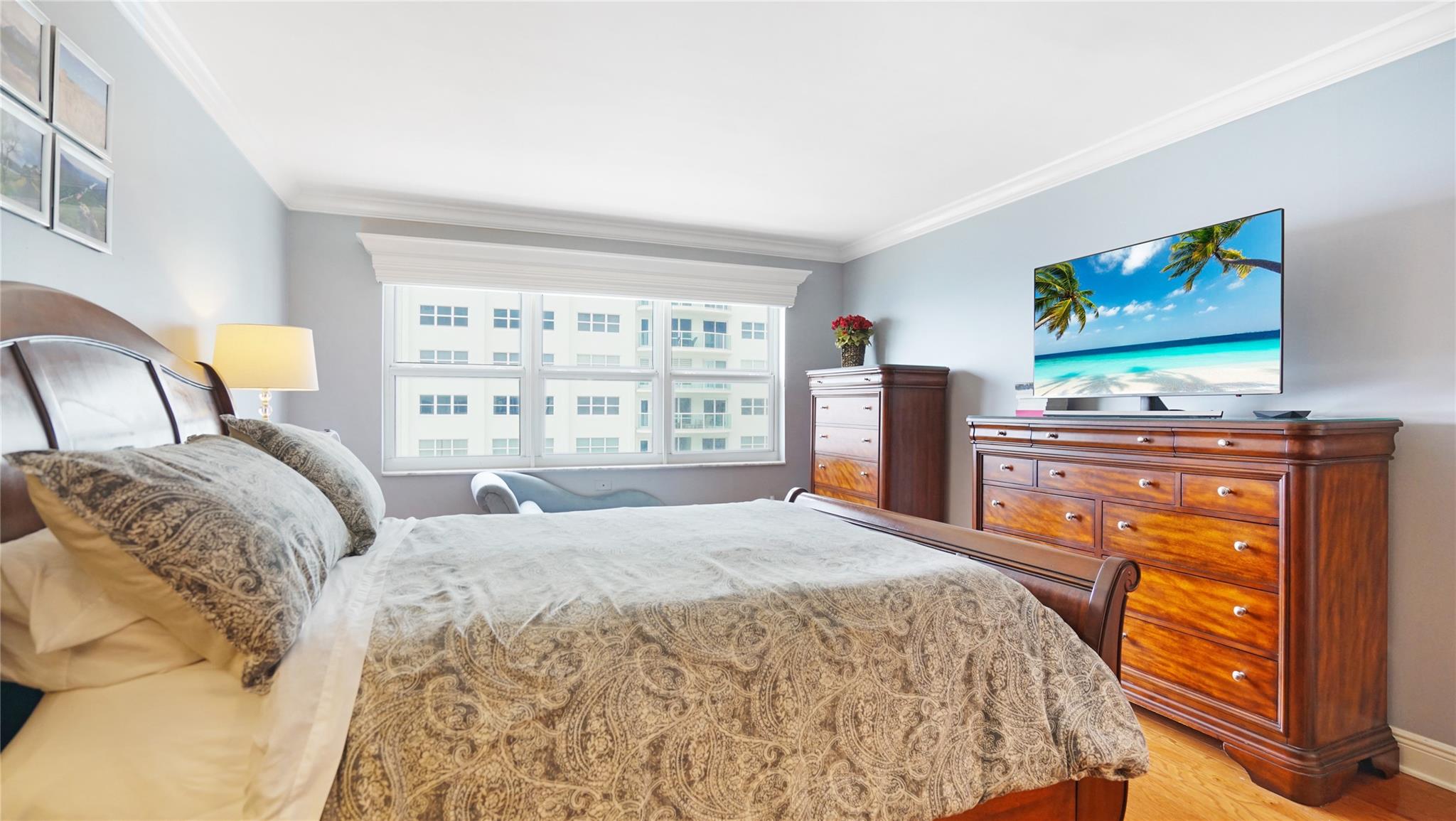 Desirable bright & sunny south facing "04" stack split bedroom style apartment, one in from oceanfront corner. Ceilings are refinished (no popcorn) & crown molding thru out. Tile floors in main living areas. Both bedrooms have real wood floors. Eat in kitchen. All rooms & balcony overlook the ocean & the soon to be completed gorgeous new heated pool & pool deck. Washer & dryer in unit. 24/7 security & facial recognition for owners. One assigned non tandem garage parking spot. Southpoint offers a resort-like lifestyle. The lower beach deck has bbq, bocce & tennis & is only a few steps to the sand. Walking distance to restaurants, live music, bars, pharmacy, banks, post office & a new Publix. Close to Ft Ldale International airport, Port Everglades, Las Olas & downtown. Location!