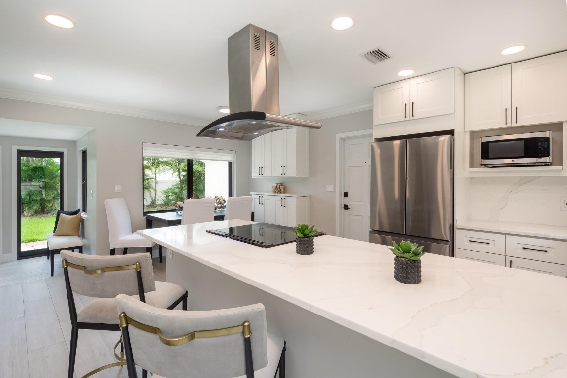 This beautiful, well maintained home has all the style and comfort you are looking for. It is located in a quiet young neighborhood with great schools. Perfectly move in ready, it features a completely updated interior with porcelain floor with wood plank design, full baseboards, crown moldings, and quartz counter tops. The full list of 2024 updates list is attached. From the moment you step inside, you'll appreciate the clean, modern aesthetics and updates including a welcoming exterior with brand new landscaping that enhances the curb appeal. With plenty of outdoor yard space, this home provides lots of room for pets to roam, entertain family and friends, gardening, and simply relaxing in your own private retreat. New furnishings are negotiable.