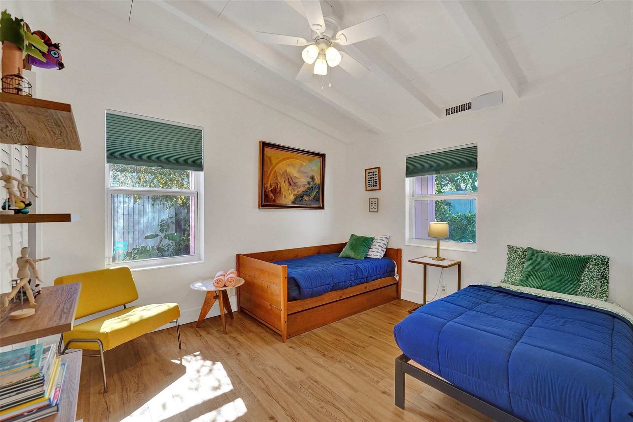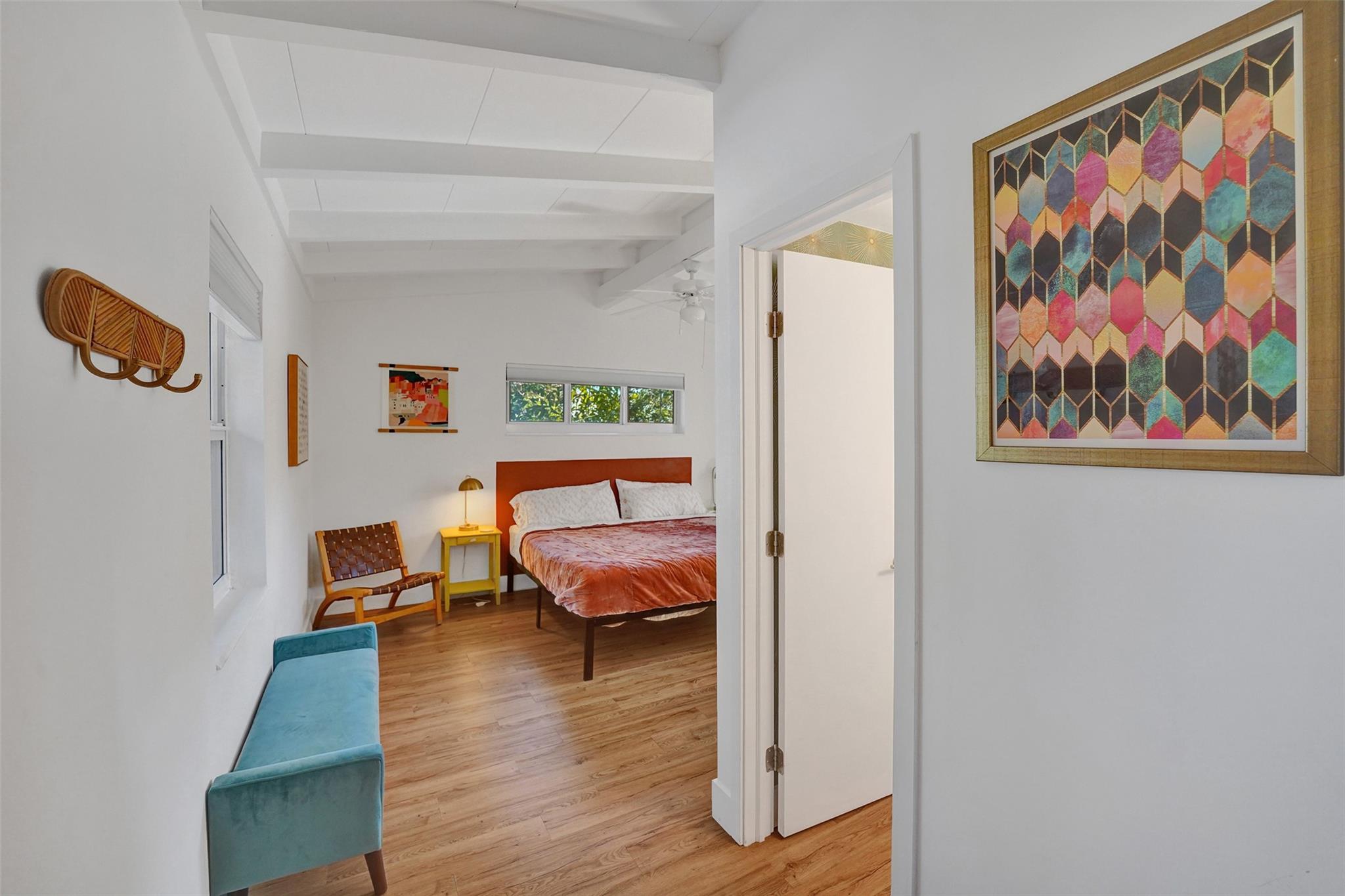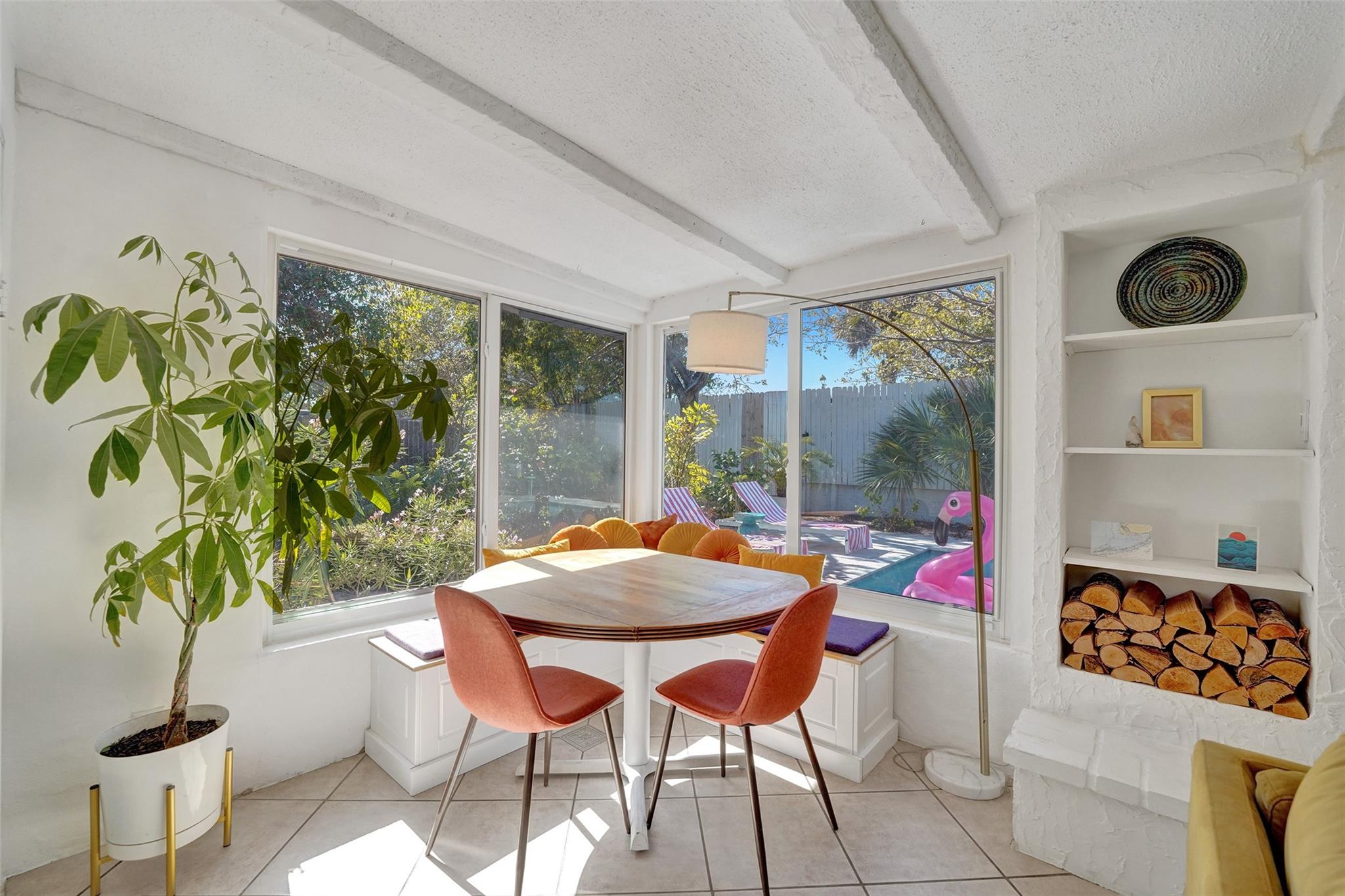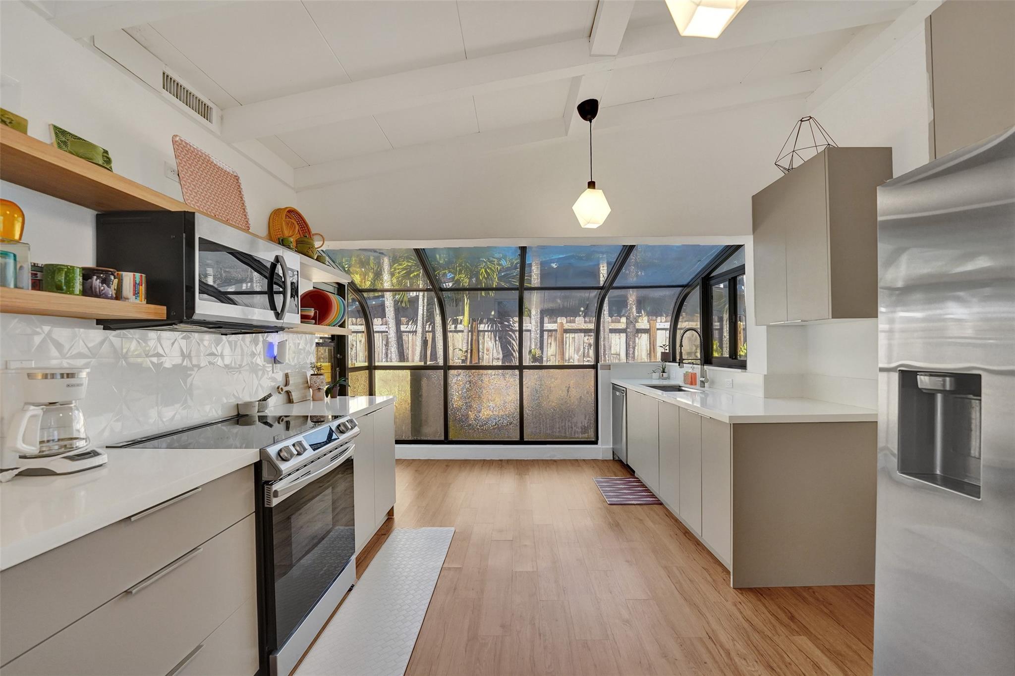 Stylish Mid-Century Modern Oasis – Fully Renovated This stunning 1-story mid-century modern pool home was completely renovated in 2021, with a new pool added in 2023. Perfect as a primary home or turnkey short-term rental, it features vaulted beam ceilings, wood/ceramic floors, impact windows/doors, newer AC, PVC plumbing, and remodeled baths. The sleek kitchen boasts quartz counters, stainless appliances, and opens to a spacious Florida room with a fireplace. Enjoy a lush, private backyard with gated access to a park and boat ramp. Minutes to the beach and downtown Fort Lauderdale!