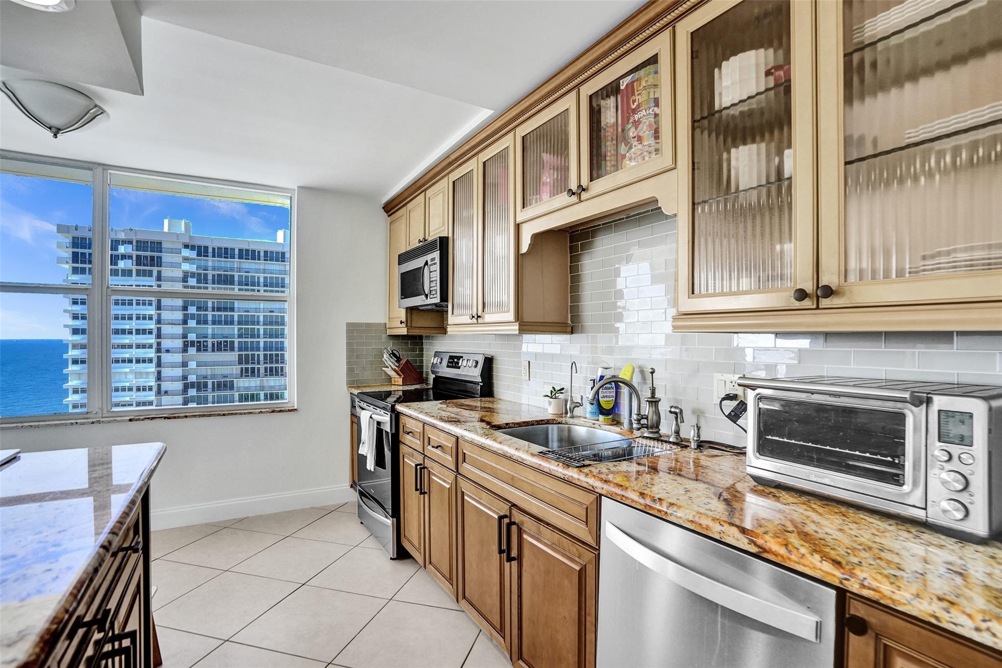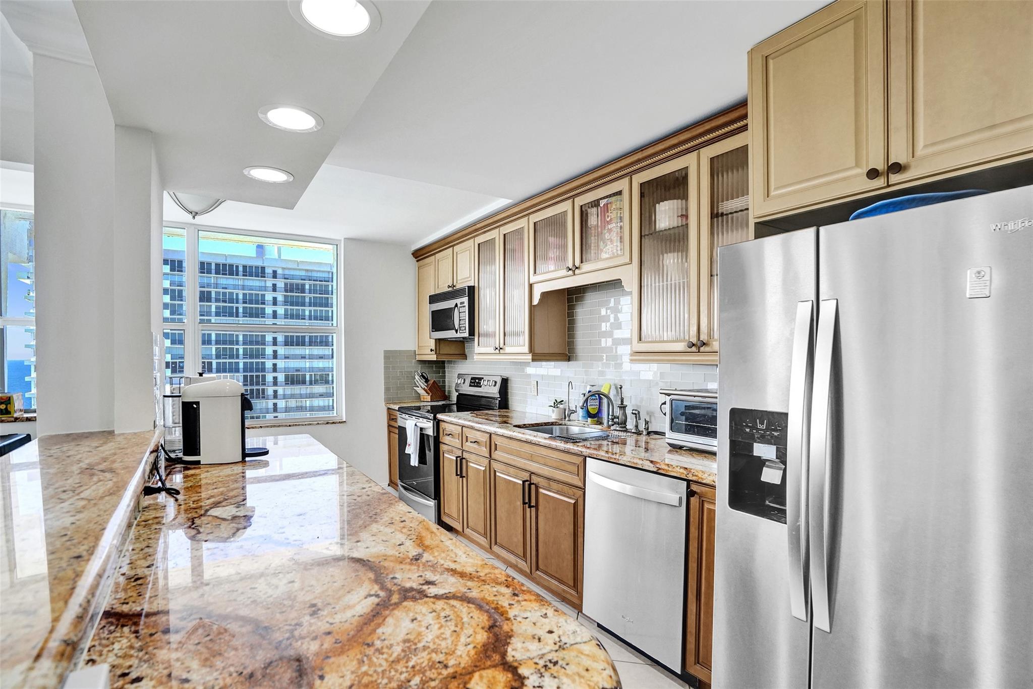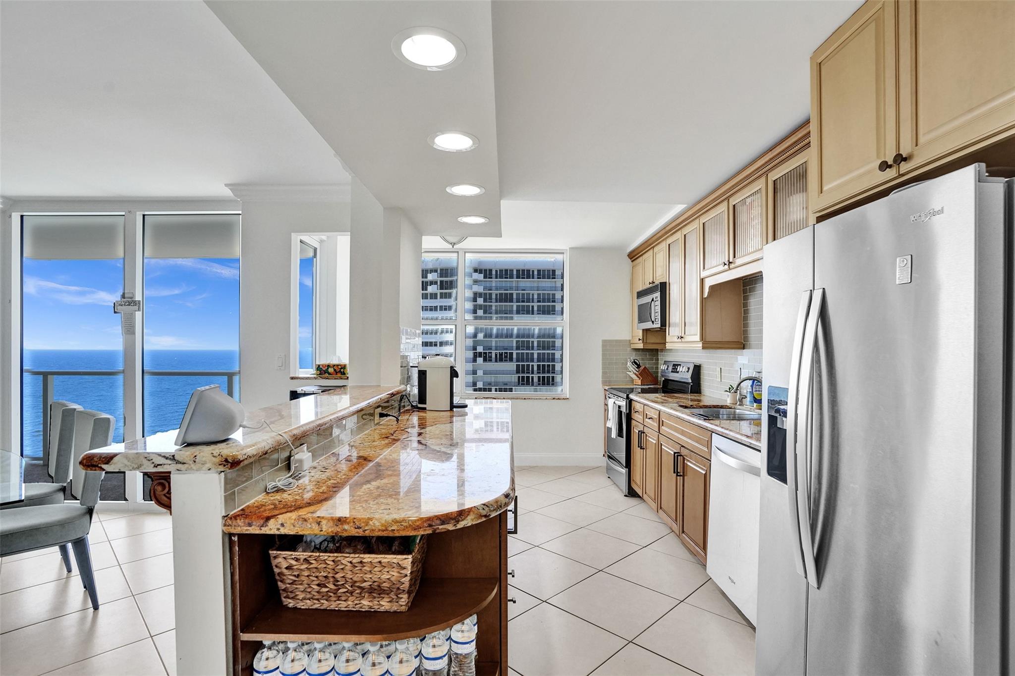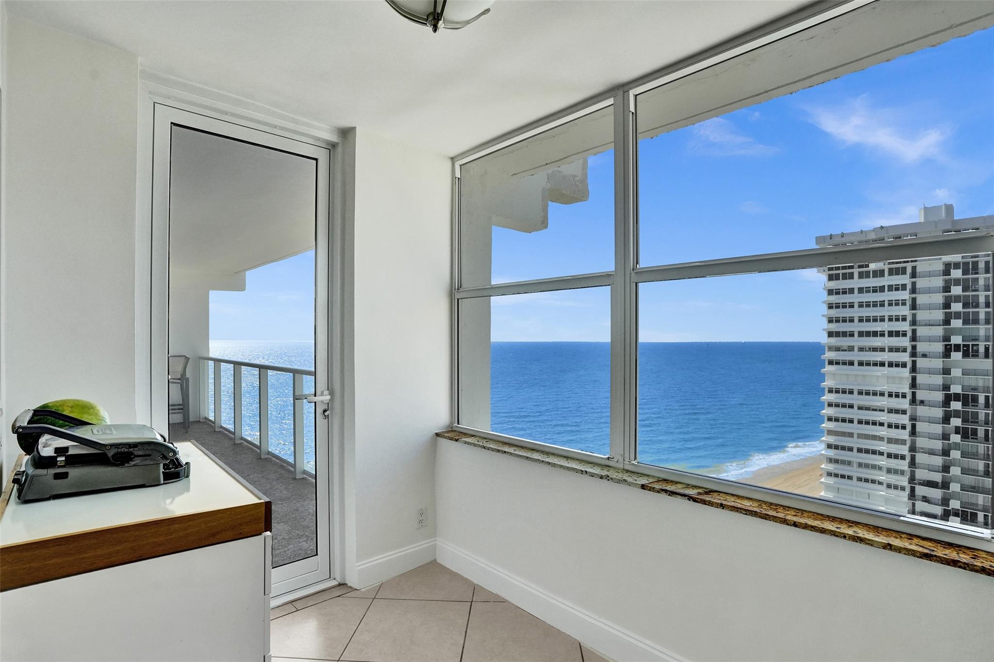 Experience the best of Ft. Lauderdale Beach living on the prestigious Galt Ocean Mile! This 2-bed, 2-bath condo offers stunning direct ocean views from every room. Step onto your open balcony—ideal for sipping morning coffee while watching the sunrise over the Atlantic. The open-concept, eat-in kitchen features wood cabinets, upgraded granite counters, bar area & stainless Whirlpool appliances w/ refrigerator & dishwasher less than 3 years old. Primary bedroom boasts expansive north-facing city and ocean views, walk-in closet & bath w/ dual sink vanity, wood cabinets & granite counters. Additional highlights incl. sep laundry room w/ Whirlpool W/D, impact glass thru/out, crown molding, upgraded fans & newer water heater. Don’t miss your chance to own this incredible beachside retreat!
