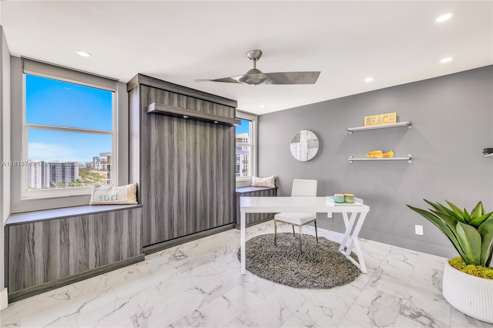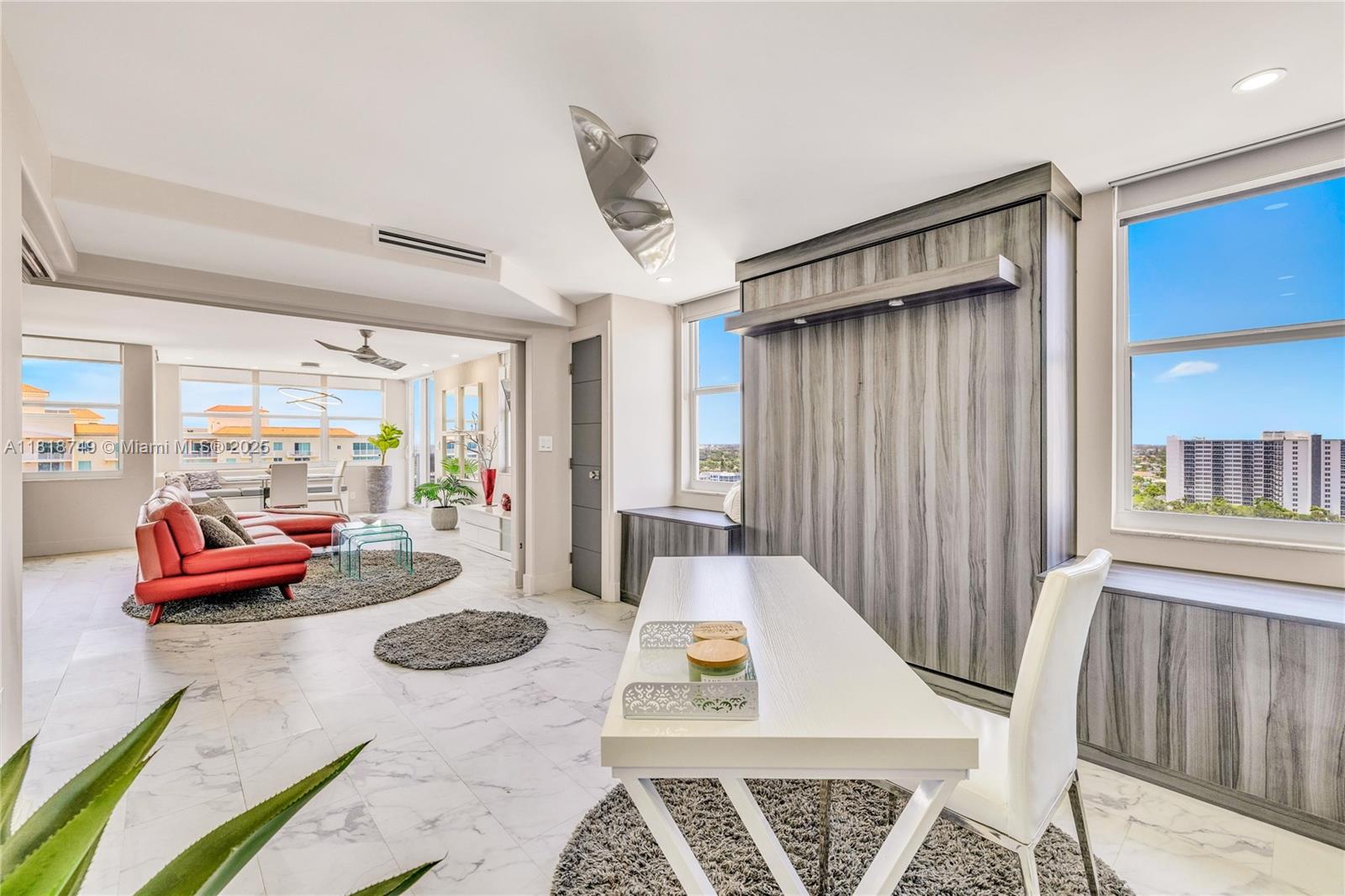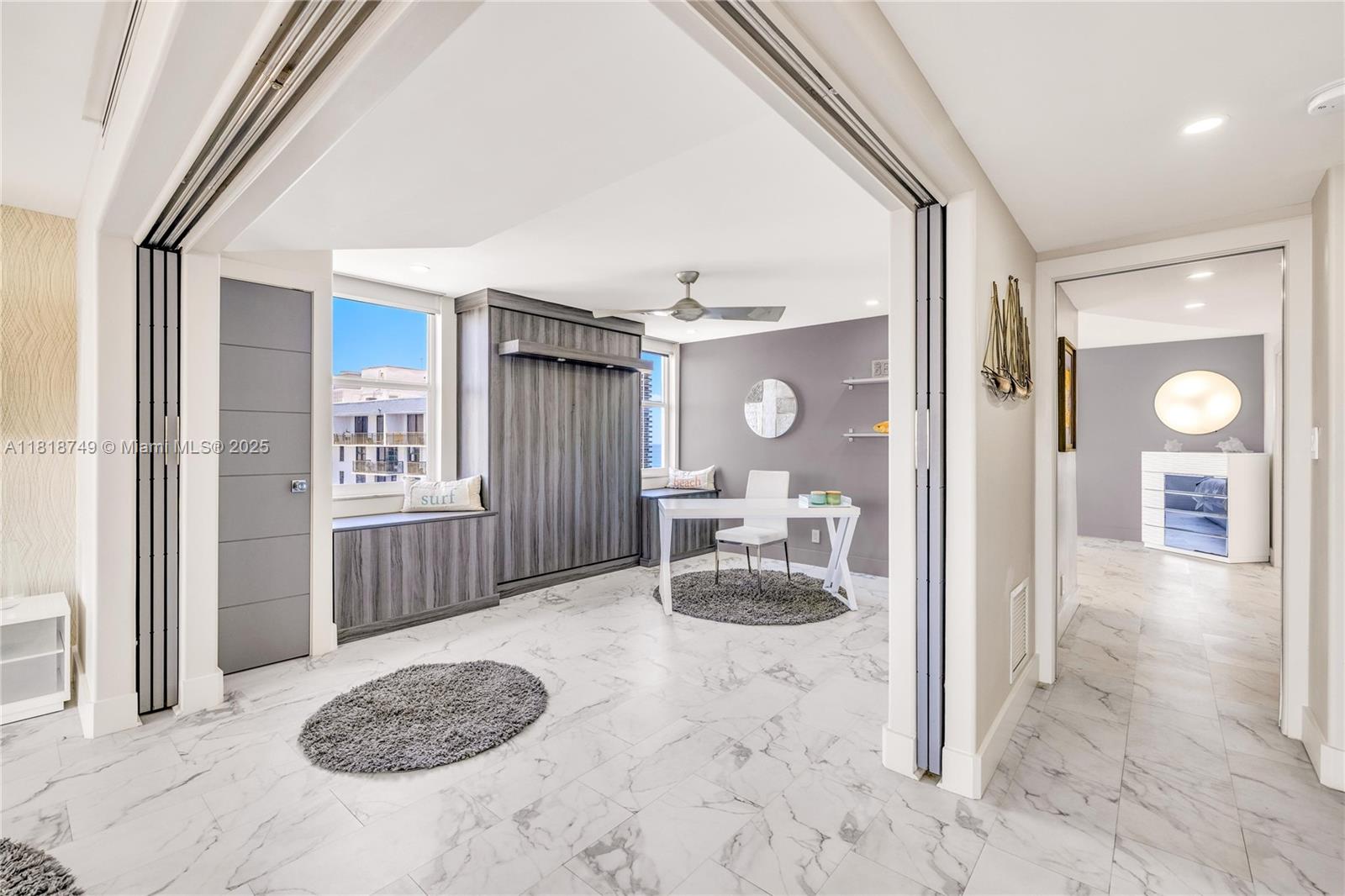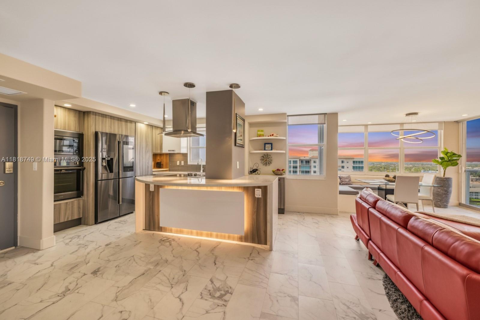 Meticulously reimagined and redesigned, this 17th-floor NW corner residence at Berkley South is the result of a recent, full-scale renovation. No surface untouched, no detail overlooked. The chef-inspired kitchen features imported Italian cabinetry, premium quartz surfaces, and a full suite of top-tier appliances. Smart home technology and Impact glass throughout. Retreat to the spa-like primary bathroom adorned with Artos fixtures, dual vanities, oversized shower, and refined finishes—your personal sanctuary in the sky. A flexible second bedroom opens to expand the living space with a built-in Murphy bed and sliding panels that offer flexibility for privacy or effortless conversion back into a fully enclosed bedroom. Offered fully furnished! Owner financing available.