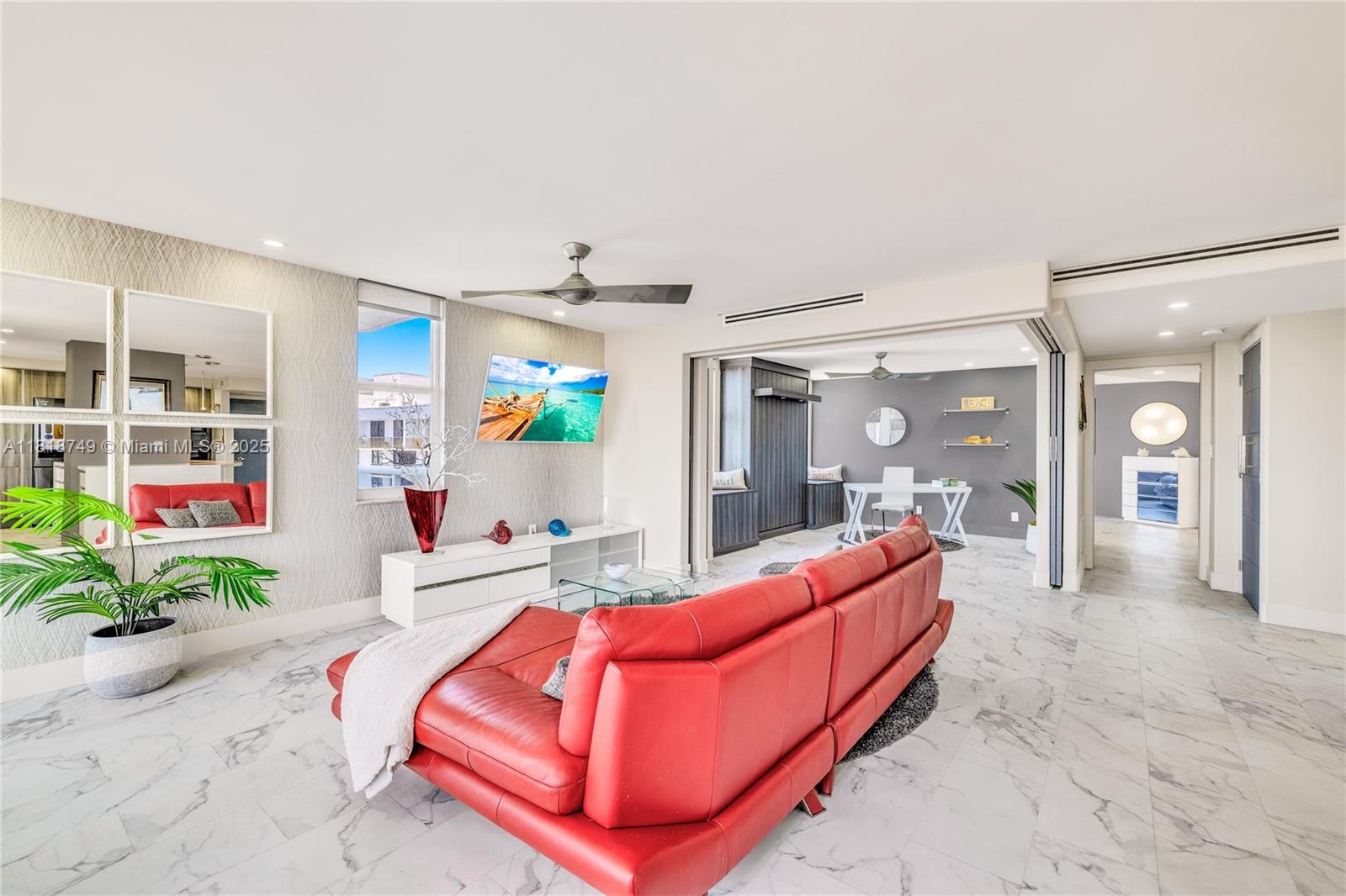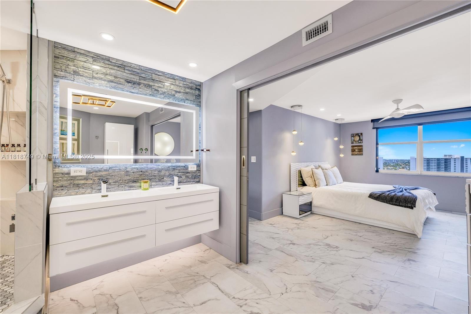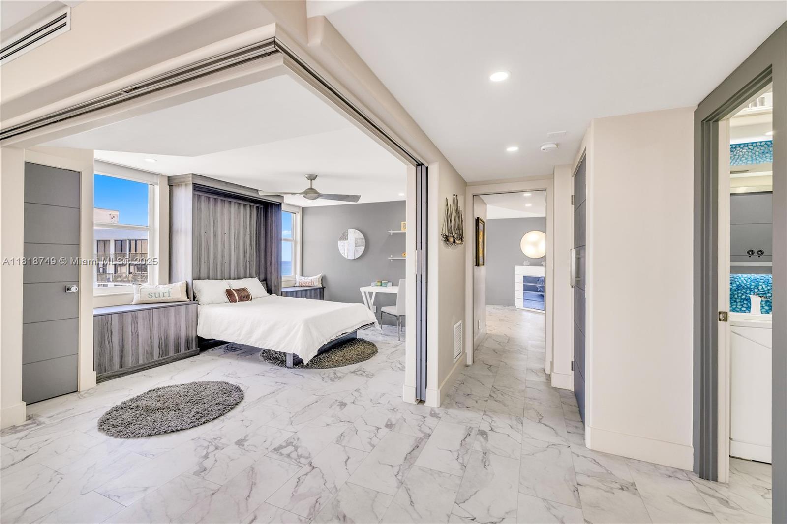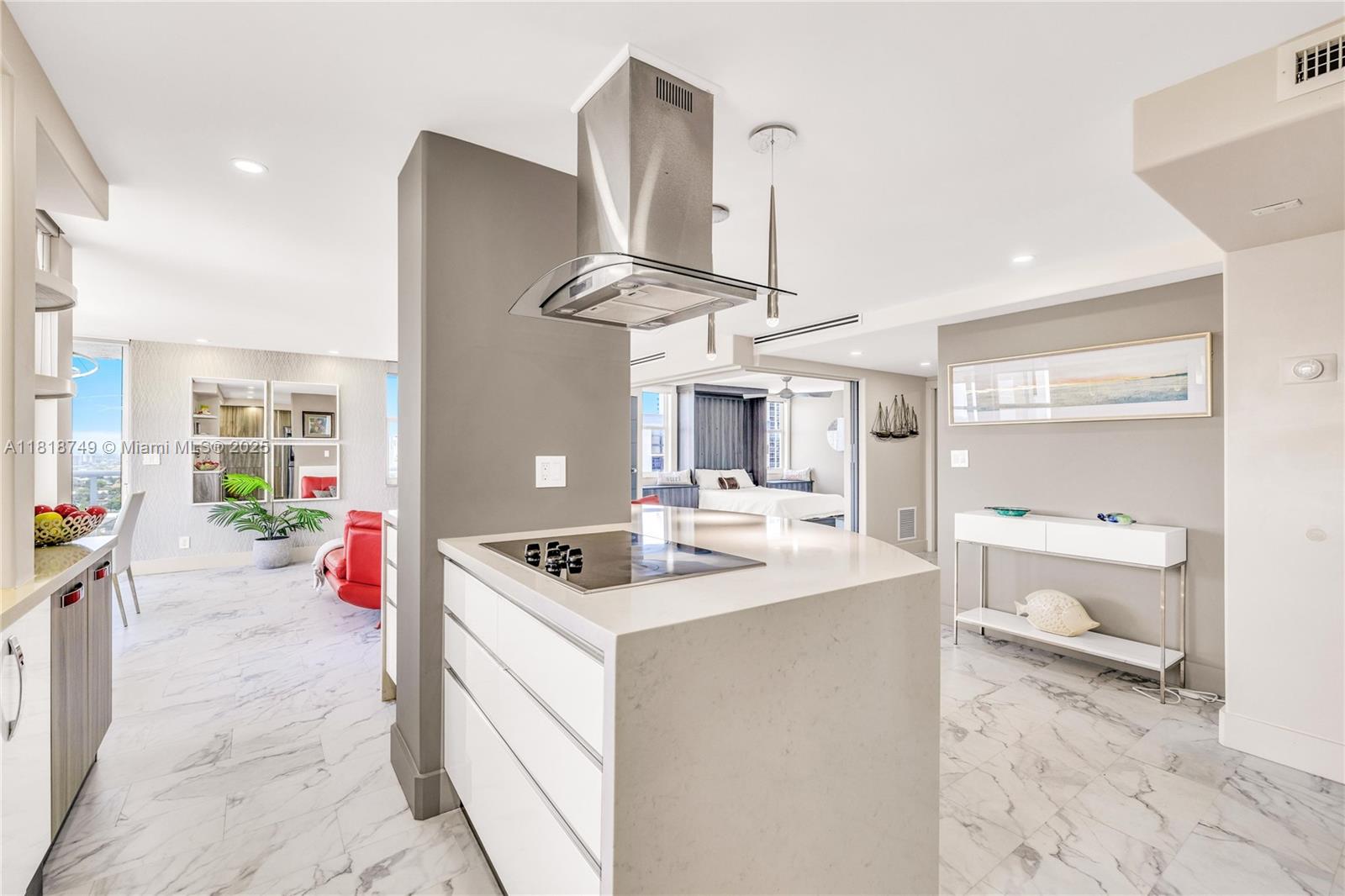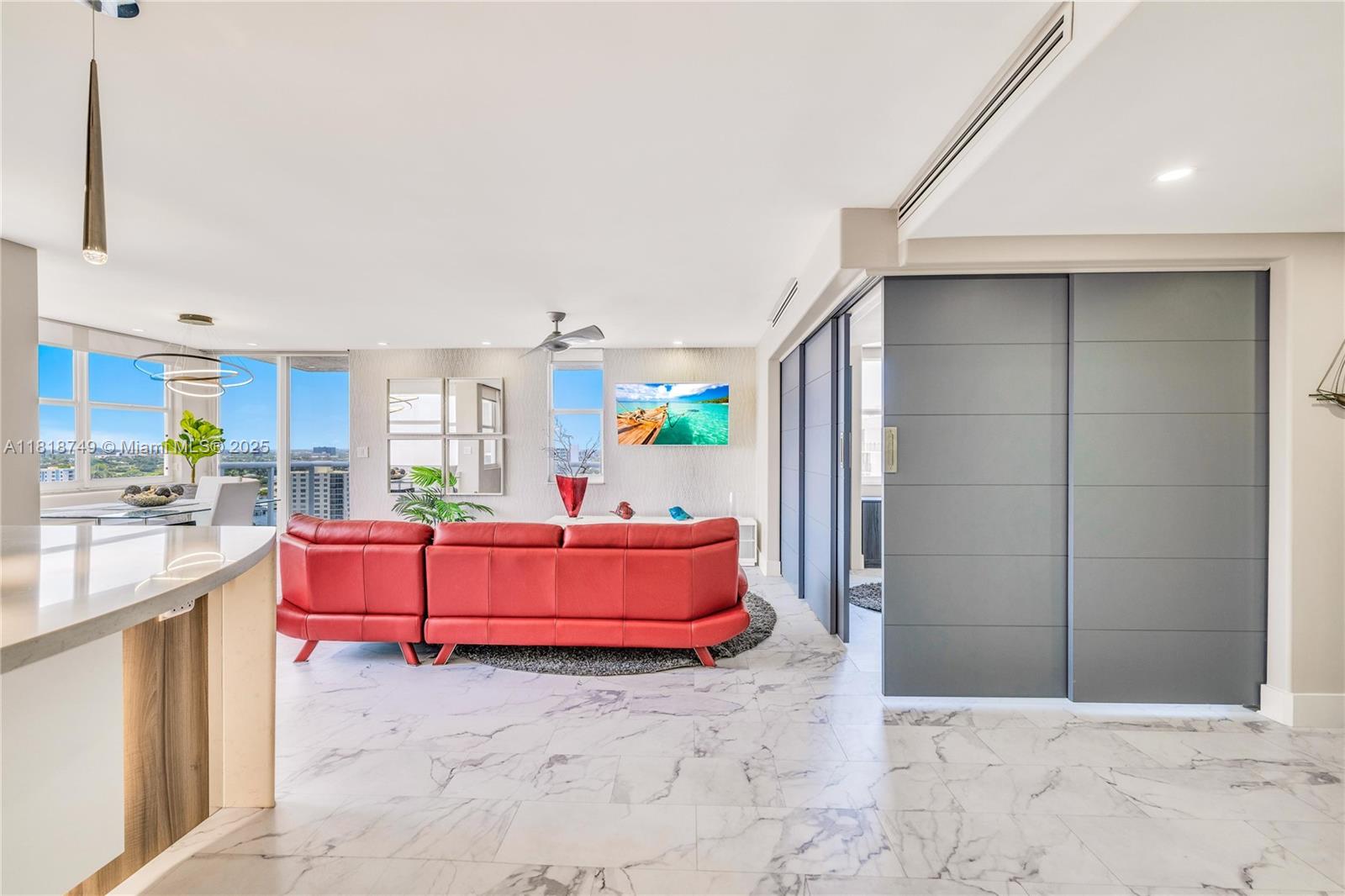 Meticulously reimagined and redesigned, this 17th-floor NW corner residence at Berkley South is the result of a recent, full-scale renovation. No surface untouched, no detail overlooked. The chef-inspired kitchen features imported Italian cabinetry, premium quartz surfaces, and a full suite of top-tier appliances. Smart home technology and Impact glass throughout. Retreat to the spa-like primary bathroom adorned with Artos fixtures, dual vanities, oversized shower, and refined finishes—your personal sanctuary in the sky. A flexible second bedroom opens to expand the living space with a built-in Murphy bed and sliding panels that offer flexibility for privacy or effortless conversion back into a fully enclosed bedroom. Offered fully furnished! Owner financing available.