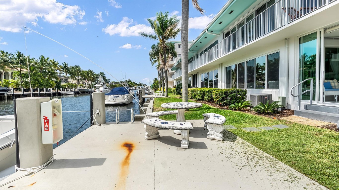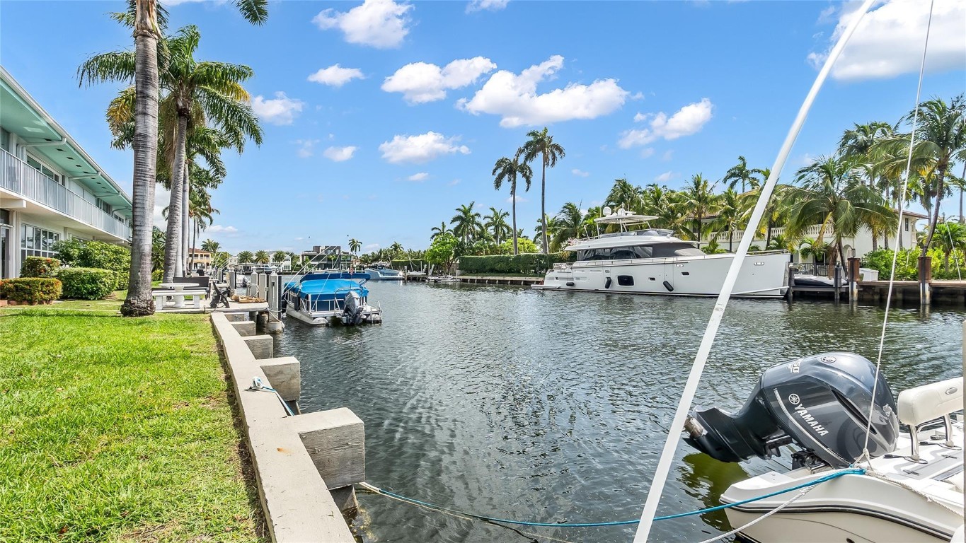 Live the Las Olas waterfront lifestyle in this beautifully renovated, fully furnished 2/2 with deep water ocean access—no fixed bridges. Dock your 33’ boat just steps from your first-floor unit and cruise to the Sandbar in 15 mins, Port Everglades in 20. Enjoy stunning, floor-to-ceiling water views from your sunroom and living room, facing a canal lined with multimillion-dollar homes. Features include impact windows, tile floors, newer AC & electrical panel, in-unit laundry room, one assigned covered parking spot, and ample guest parking. Strong reserves, financing available. Land share also available for purchase. Cheapest way to live on the Isles!