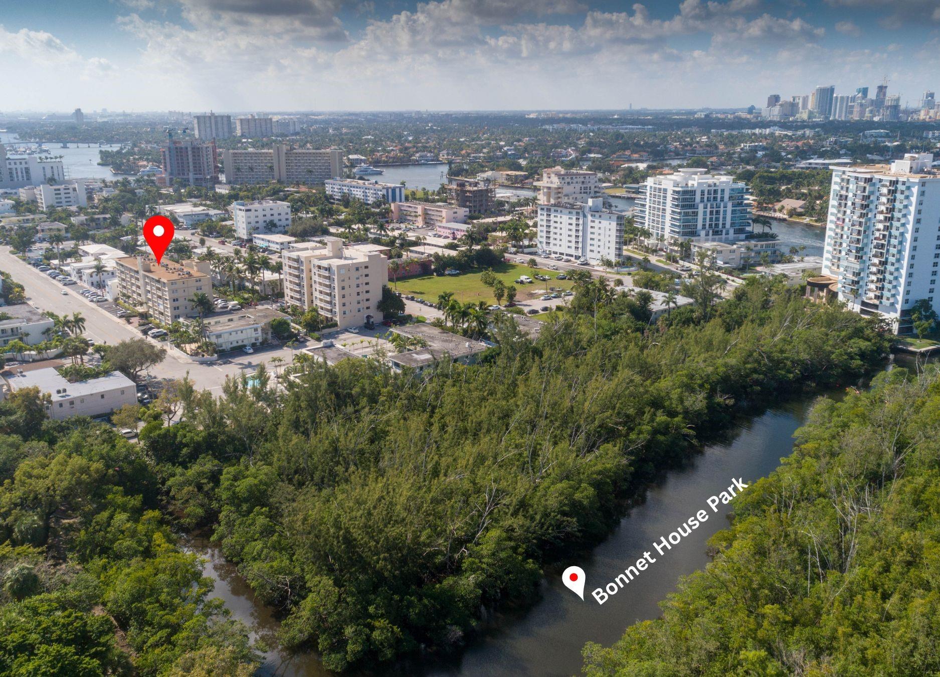 Take a morning walk every day, only 2 blocks from the beach. Recent stylish renovation with furniture option, 2BR/2BA corner ground floor unit with direct access or through a secured lobby. Very low monthly fee, an open modern kitchen with a large bar, impact windows, in-unit washer and a dryer hookup, wood-look tile throughout. East-facing patio, one deeded parking space & storage. Located in upscale North Beach Village, walk to cafés, shops, restaurants, and nightlife. In a cool Art Deco building, a 50-year inspection was completed—no assessments due. Structural and milestone reports completed. Rentals are ok after one year, and financing is available. The association owns more than half of the land lease, ensuring control over property decisions. Ideal full-time home or beach retreat!
