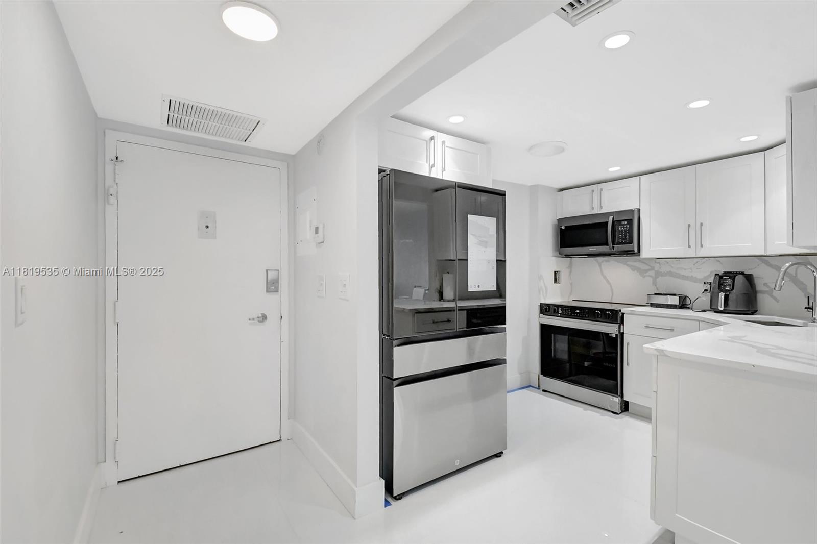 MUST SEE!!! TURN KEY COMPLETELY RENOVATED! BRAND NEW KITCHEN, QUARTZ COUNTER TOPS, NEW APPLIANCES, NEW CABINETS, COMPLETE NEWLY REMODELED BATHROOMS, EXTRA LARGE 33 BY 33 WHITE PORCELIN TILES. NEW BASE BOARDS AND DOOR TRIM. LEVEL 5 SKIM COATING SMOOTH FLAT CEILINGS. NO POPCORN CEILINGS!!! NEW HURRICANE IMPACT WINDOWS. FULLY REMODED IN JUNE OF 2025. OVER $100,000 IN REMODELING. NO ASSESSMENTS OR UP COMING ASSESSMENTS. FULL REMODELED LOBBY AND POOL DECK, FITNESS CENTER AND SPA. CONFERANCE ROOM BARBEQUE ALL LOACATED IN PERFECT LOCATION. YOLO!!!!! WALK ACROOS THE STREET AND FEET IN THE SAND FULL BEACH ACCESS!!!! PUBIX GROCERY NEXT DOOR!