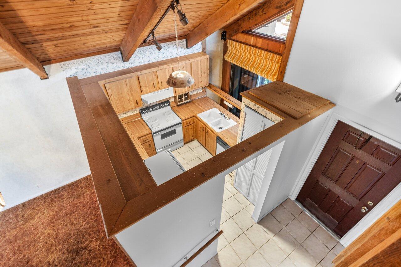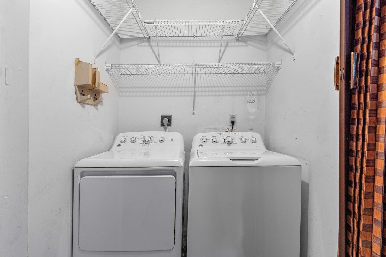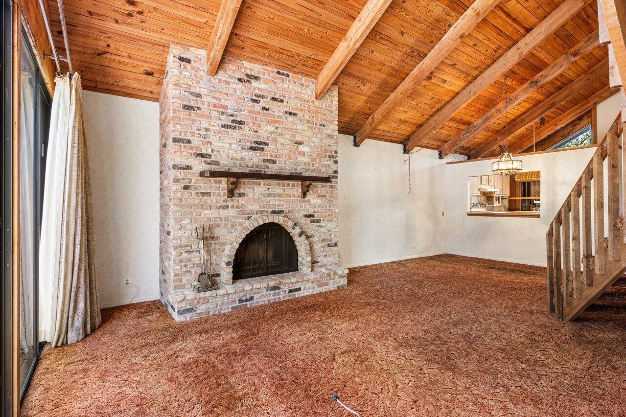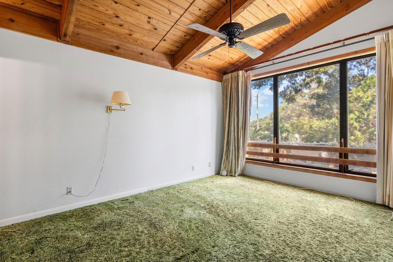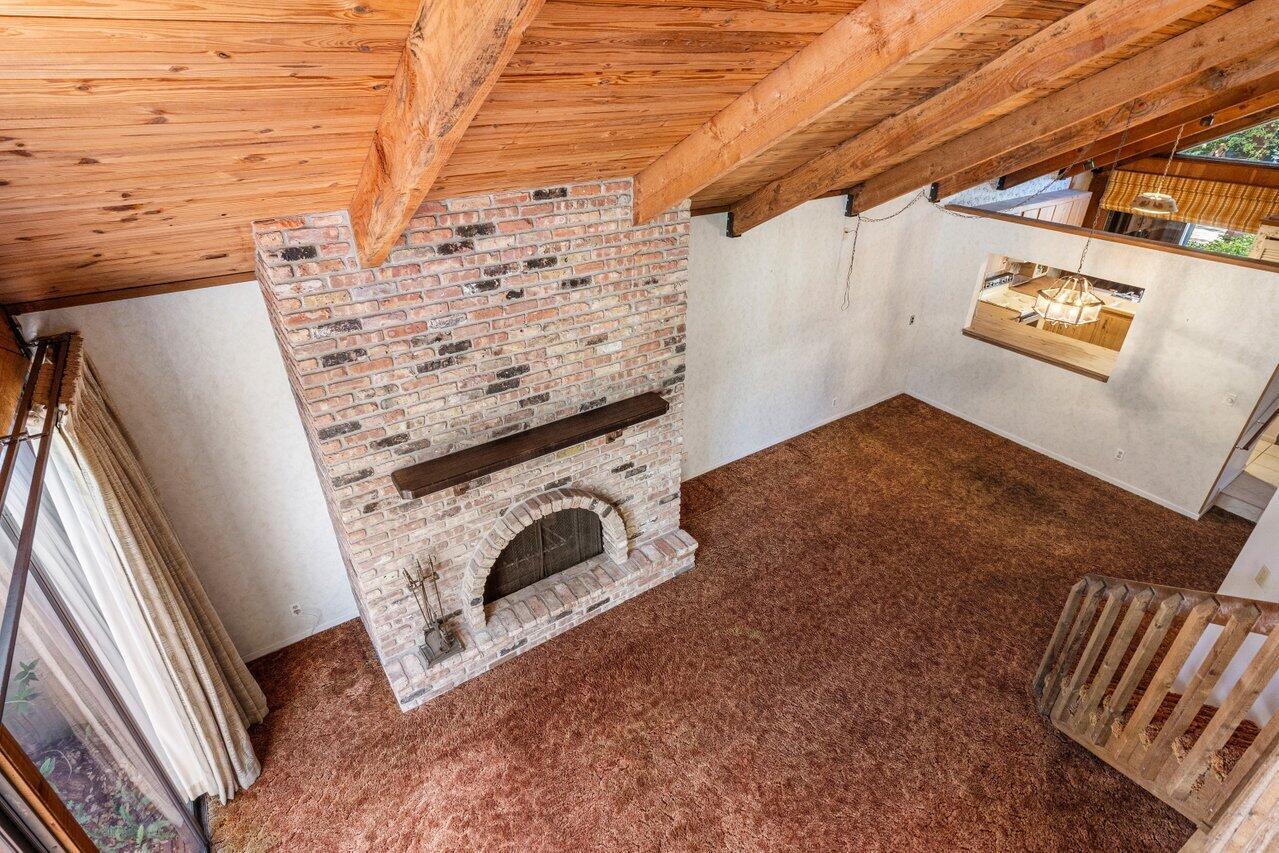 Welcome to your 3-bedroom, 2-bathroom townhome in The Lofts of Palm Aire! This spacious corner unit offers a rare opportunity with its private, fenced backyard and an inviting open floor plan. Floor-to-ceiling sliders fill the space with warm, natural light, while a striking stone fireplace serves as the perfect centerpiece. Stunning wood aligned vaulted ceilings and beams. The primary suite and loft are located upstairs, featuring a massive walkthrough closet leading to your own private sitting area. Enjoy the convenience of an in-unit laundry room with a full-sized washer and dryer. Step outside to a large screened-in patio overlooking a beautifully landscaped Florida-style backyard. Additional features include newer Front door, AC 2021, ample closets and accordion shutters.