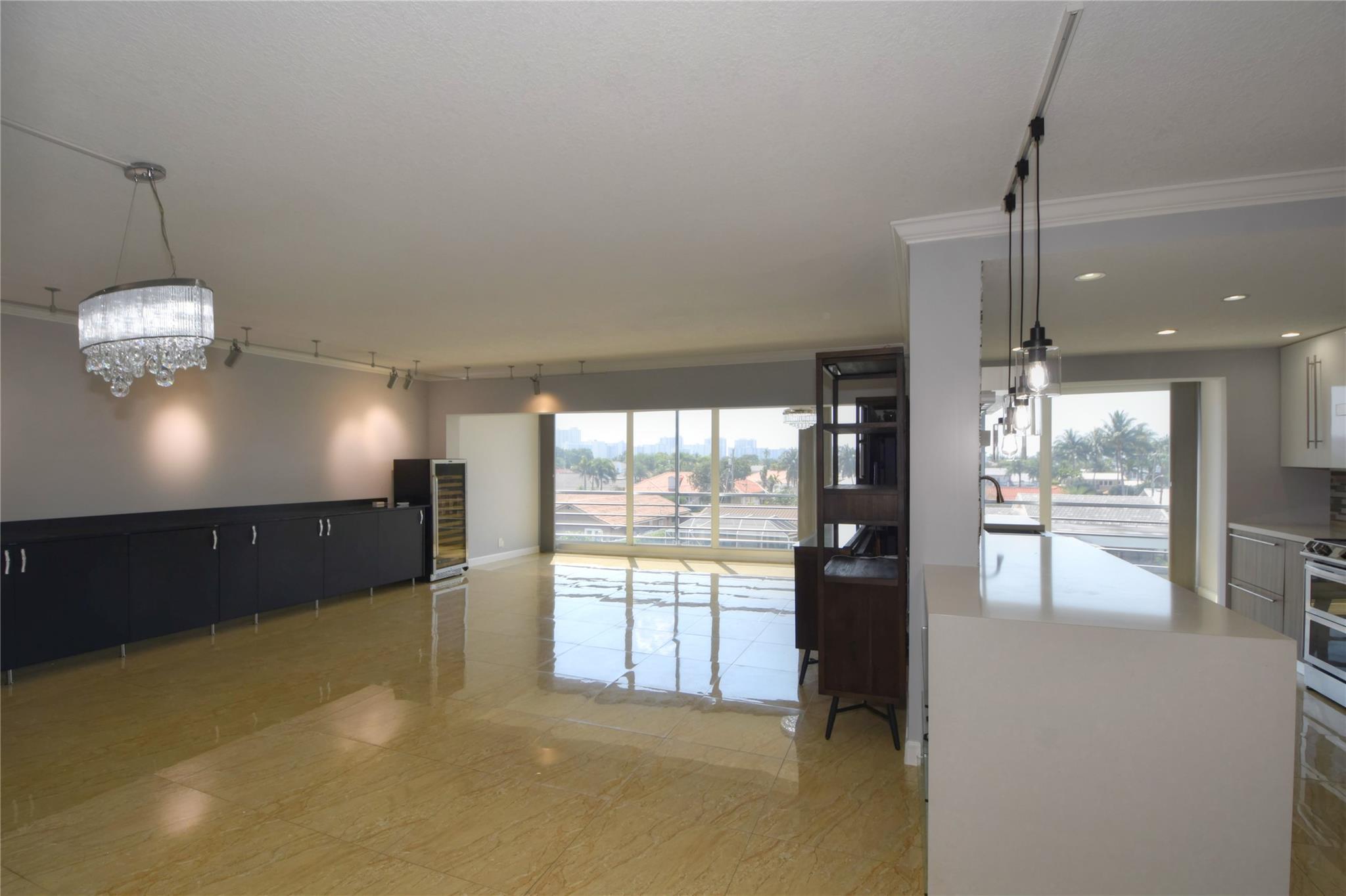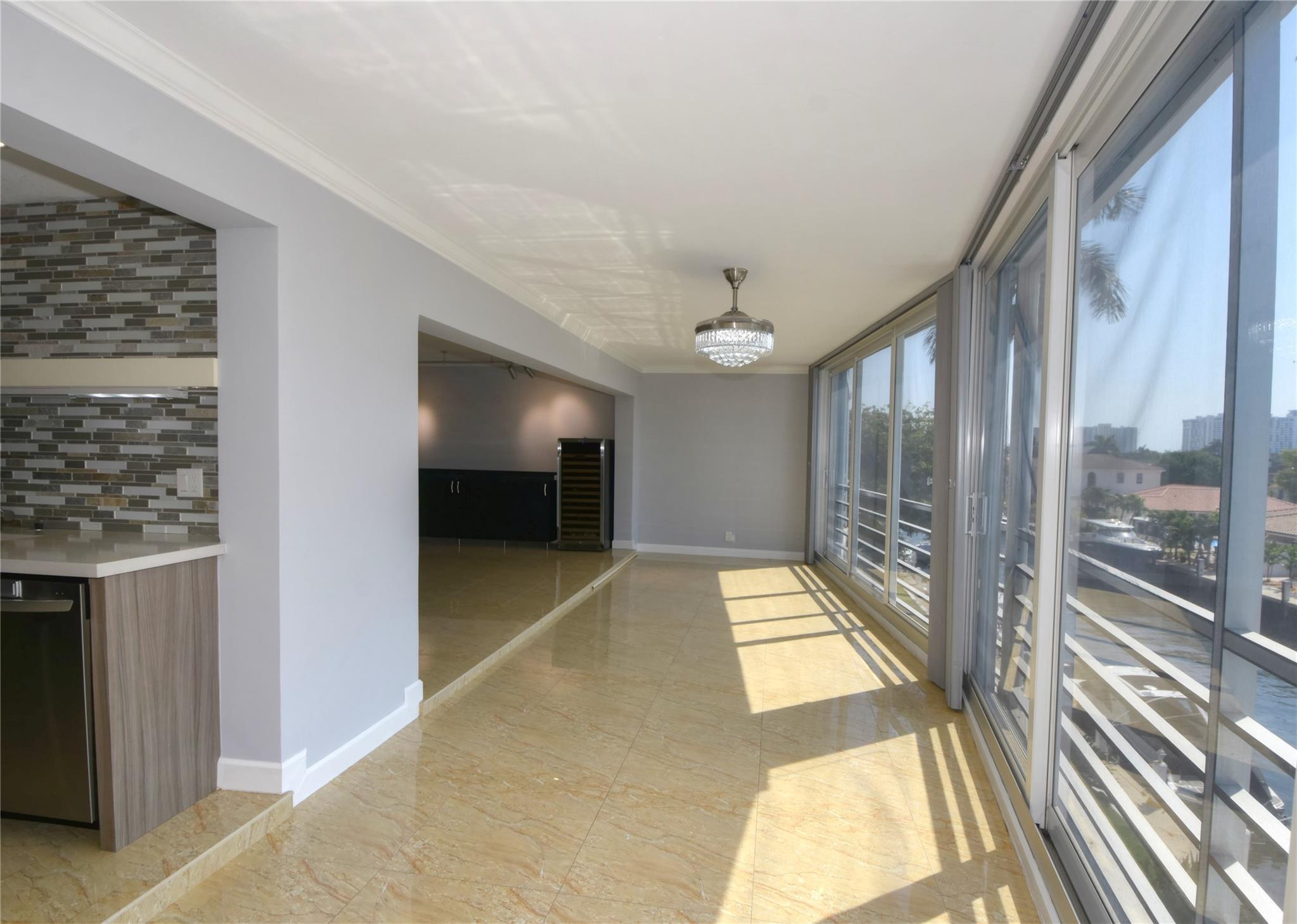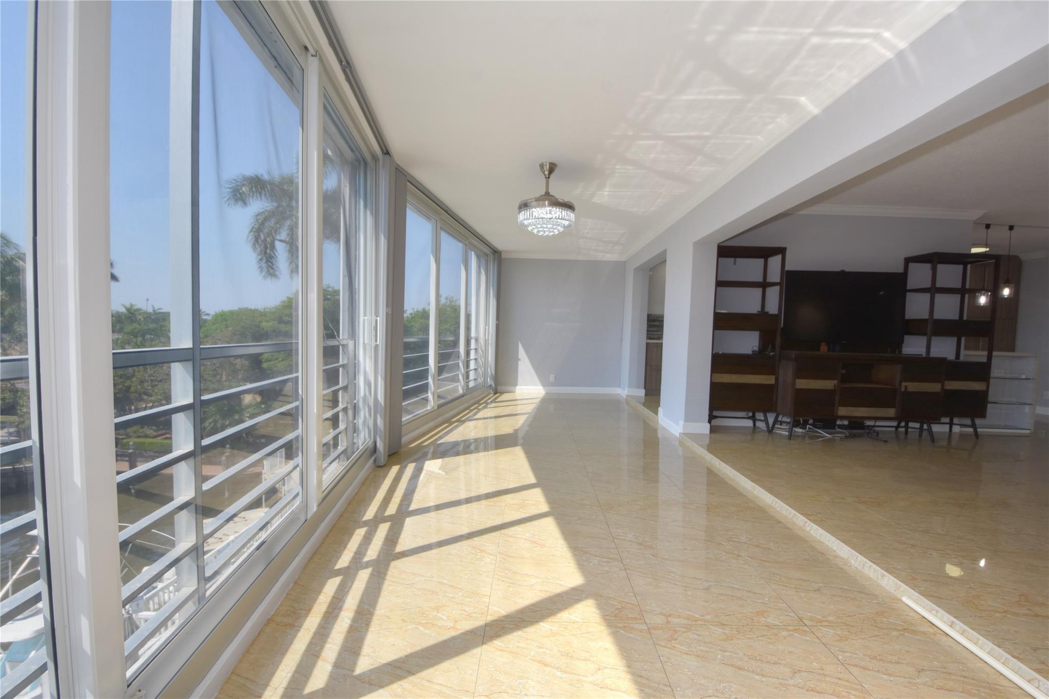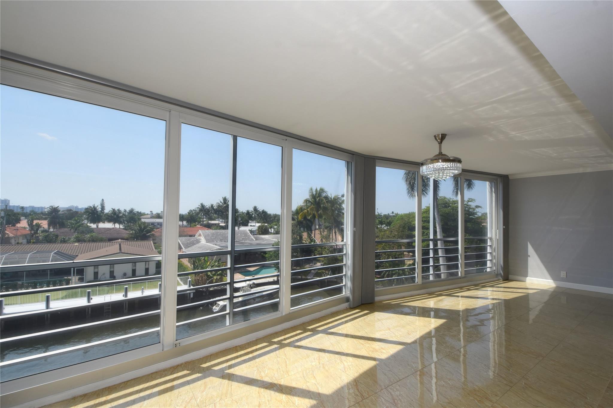 This waterfront beauty has it all with the perfect central location - walk to the beach, lots of restaurants, medical facilities nearby, easy access to all major highways, 1/2 hour to the airport and cruise port. Not only that, it is HUGE with 1,481 sf PLUS a 319 sf Florida room, under building deeded parking, full size w/d in unit, hurricane windows, storage locker, community room, heated pool, and dockage when available. Walk into this freshly painted, fully remodeled contemporary unit with stunning views. With all this you get a chef's kitchen w/ quartz countertops with waterfall edge, double oven, range hood, SS wrap front sink, dishwasher, separate wine fridge. Tile floors in LR/DR. Wood floors in both BRs. Primary suite has walk-in closet and vanity, tub/shower.
