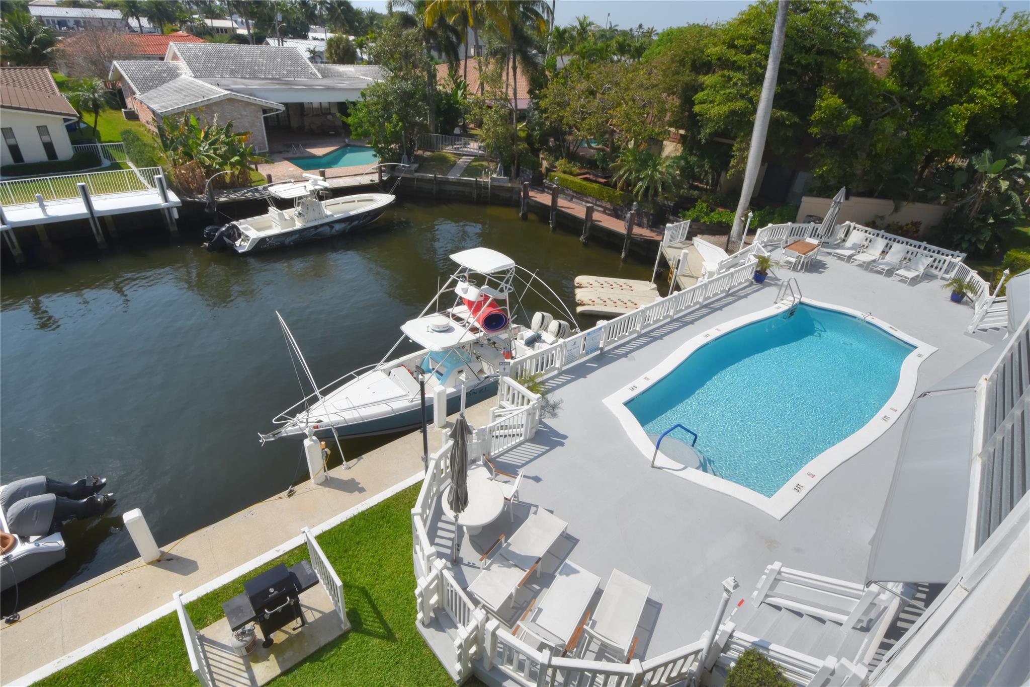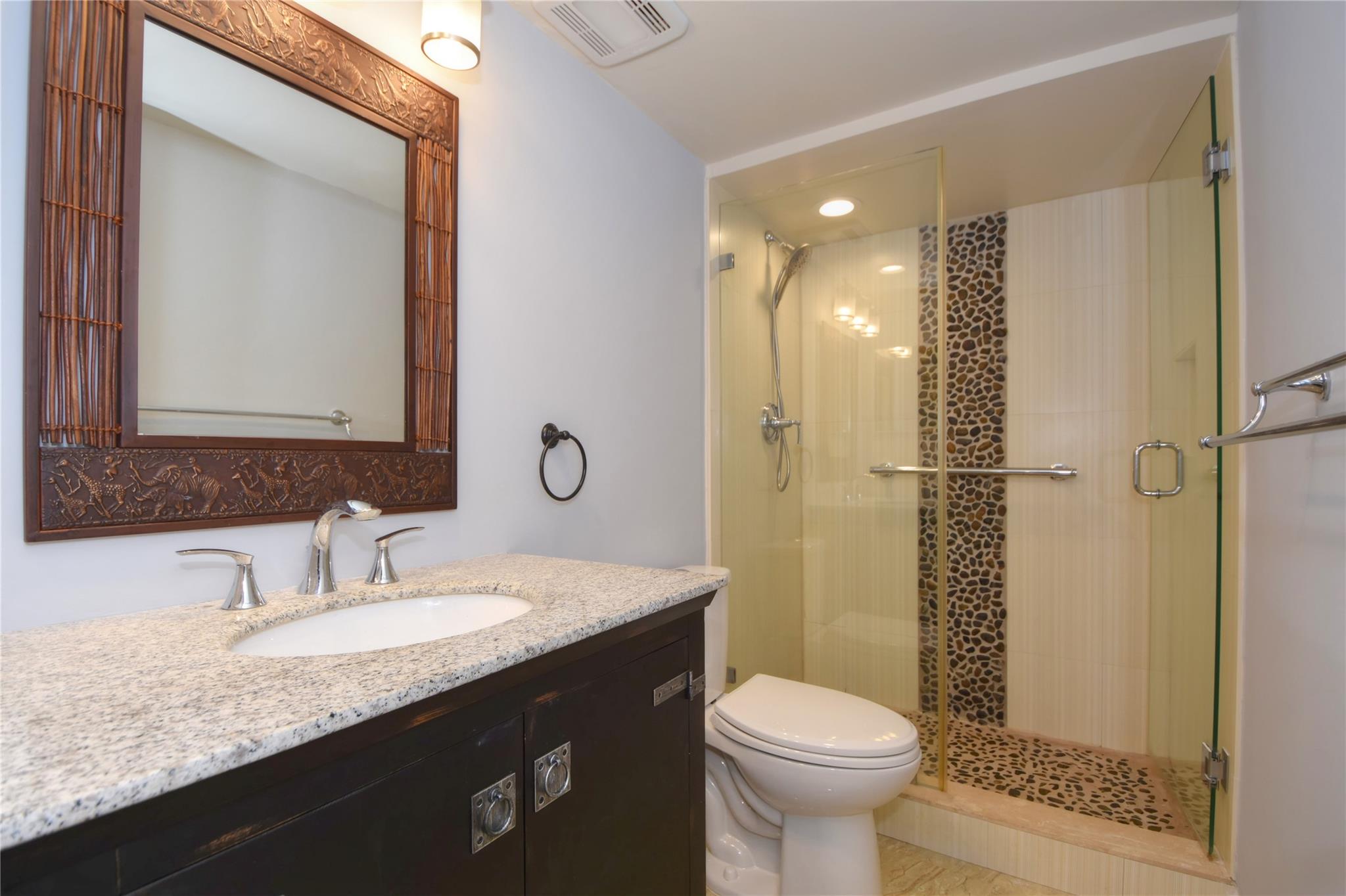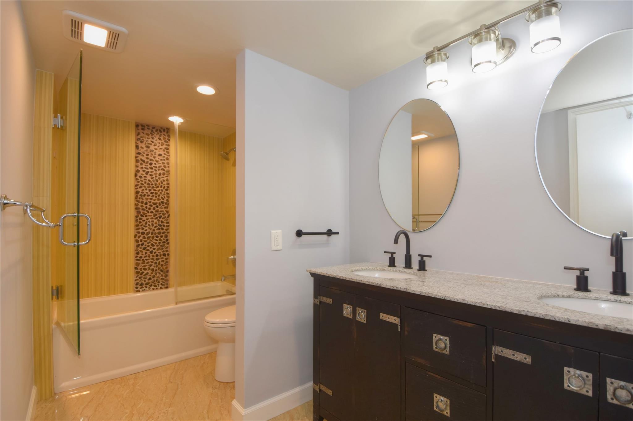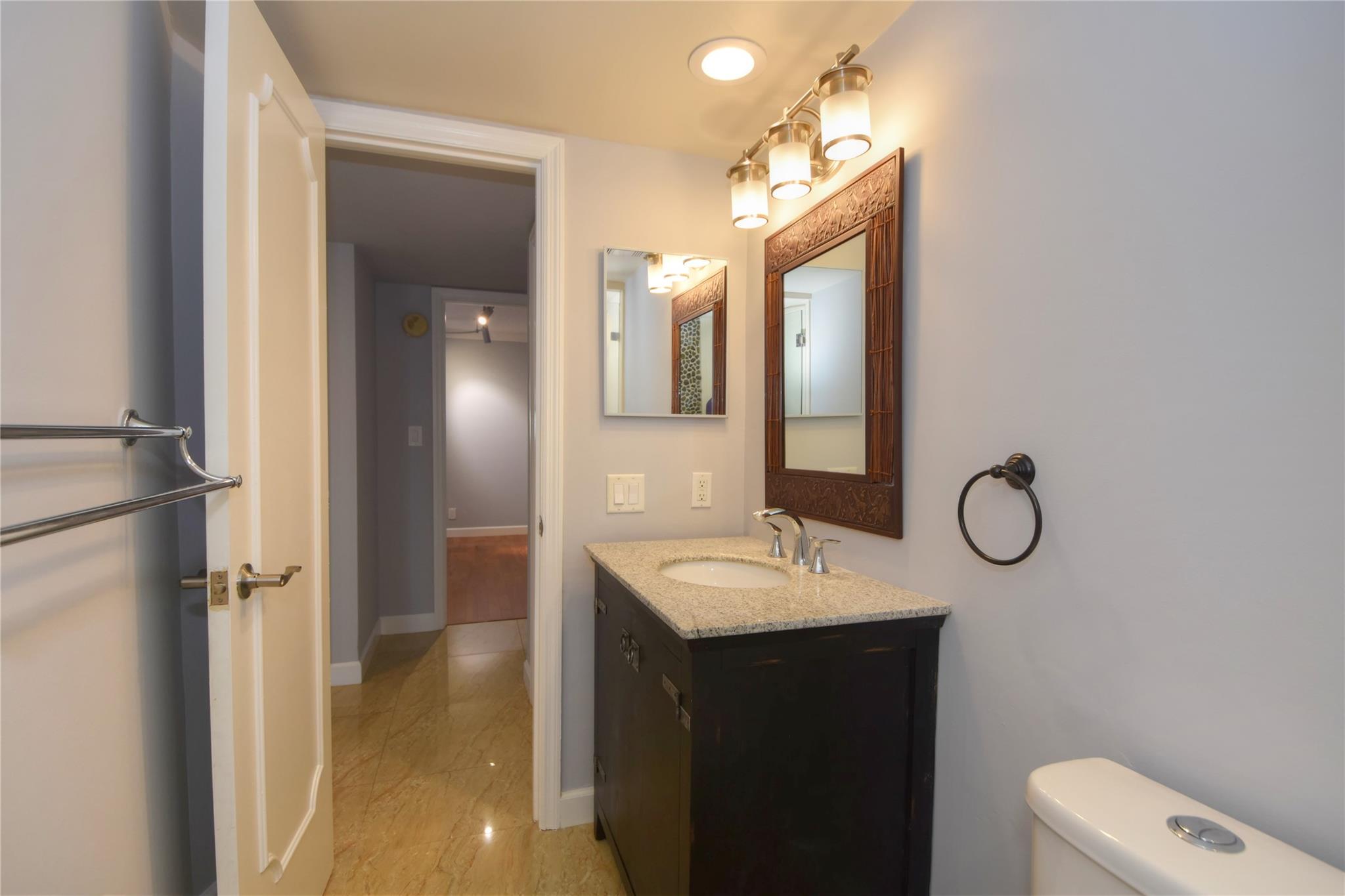 This waterfront beauty has it all with the perfect central location - walk to the beach, lots of restaurants, medical facilities nearby, easy access to all major highways, 1/2 hour to the airport and cruise port. Not only that, it is HUGE with 1,481 sf PLUS a 319 sf Florida room, under building deeded parking, full size w/d in unit, hurricane windows, storage locker, community room, heated pool, and dockage when available. Walk into this freshly painted, fully remodeled contemporary unit with stunning views. With all this you get a chef's kitchen w/ quartz countertops with waterfall edge, double oven, range hood, SS wrap front sink, dishwasher, separate wine fridge. Tile floors in LR/DR. Wood floors in both BRs. Primary suite has walk-in closet and vanity, tub/shower.