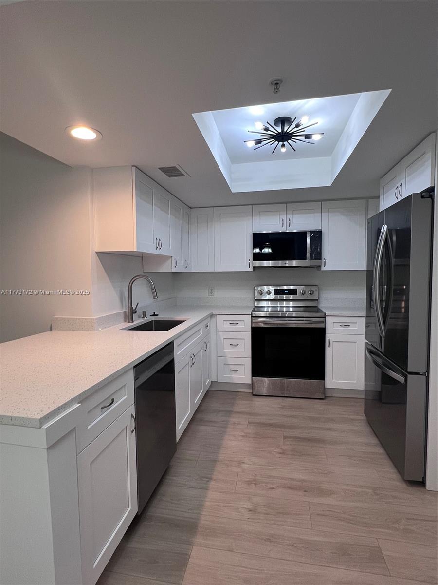 Completely renovated from top to bottom 2/2 with attached garage all on the first floor. This unit features a new kitchen with quartz countertops, new stainless steel appliances, new bathrooms, new AC and water heater. Carpet in bedrooms and living area. Fenced patio off the living room. Parking for 1 car inside garage and one car outside garage. Split bedroom plan, 2 master suites. The community features a resort style pool, clubhouse, BBQ area and gym.