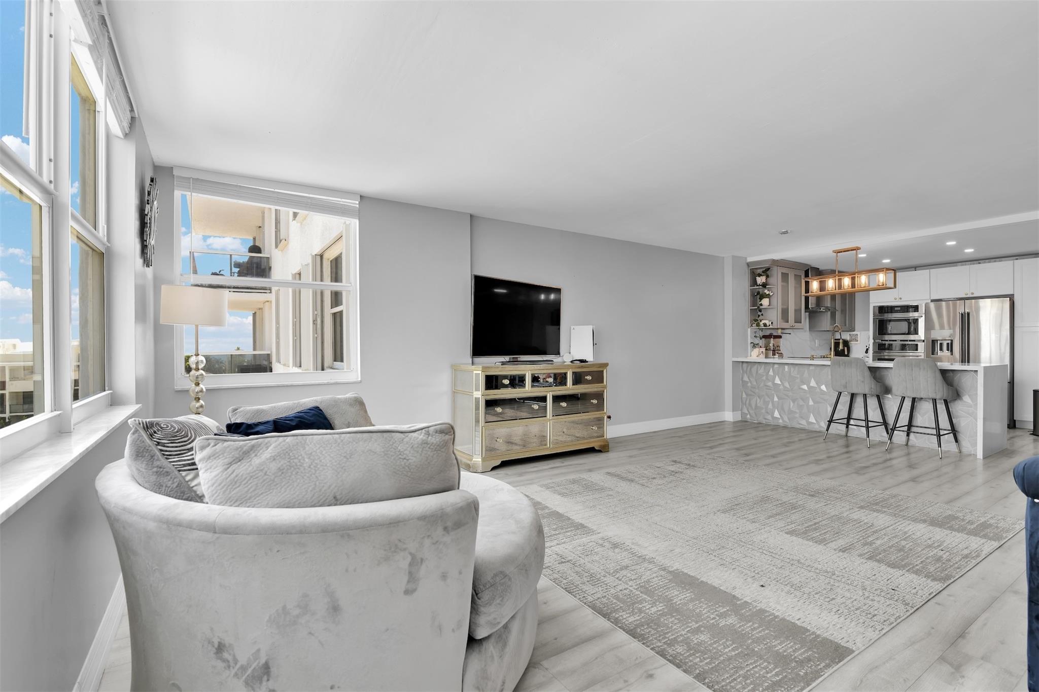 Fully remodeled, spacious unit in Berkeley South! Kitchen has been opened up beautifully and is dressed with brand new appliances. Flooring has been updated throughout. Hurricane Impact windows and doors throughout. Stunning ocean views from your living room. You can feel the energy of Fort Lauderdale Beach while looking out at people running, biking and enjoying the sunshine outside of your windows. Ample closet space in the primary bedroom and updated vanity with added storage. Laundry on your floor. Extensive amenities including newly remodeled pool area, 3 grills and covered bar. Tennis/Pickleball court. His and hers saunas. Fully equipped gym overlooking the pool. Newly renovated lobby with guarded entry. Spa in lobby. Cash only!
