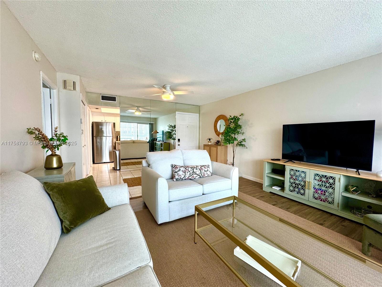 Excelent conditions and large Waterfront One bedroom condo, Furnished, with one full and half baths, located in Coral Ridge; located just a few buildings from the Intracoastal Waterway. Walking distance to restaurants and the beach. This unit features newer laminated floor, updated bathrooms, enclosed balcony for additional living space, stainless steel applicances, track lighting, fans, large walk-in closet and a built in, floor to ceiling book shelves. A must see before it goes!