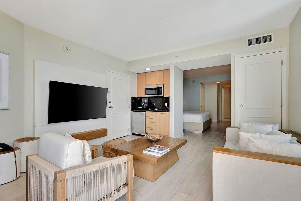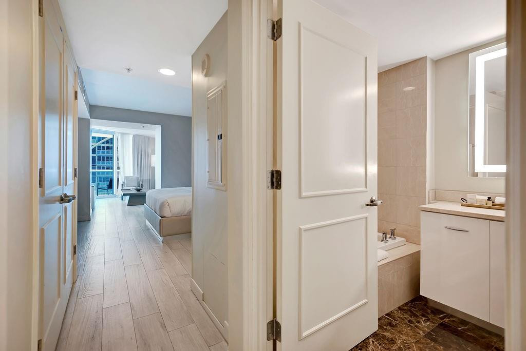 The Q Club Resort & Residences, located on Fort Lauderdale Beach Resort, are fully furnished and appointed condo-hotel units boasting ocean views from every suite. Residence #1009 is a junior suite with separate living and sleeping spaces with a king bed, a pull-out couch, and a galley kitchen. This comfortable suite offers floor-to-ceiling impact windows, an ocean-facing balcony, owner’s closet, washer/dryer, and much more. Owners enjoy world-class, resort-style service with hotel amenities including restaurants, bars, 24-hour fitness center, spa, tropical pool deck, room service, and business center. An optional rental program managed by Hilton is available. Come to Relax-Rejuvenate-Rejoice.