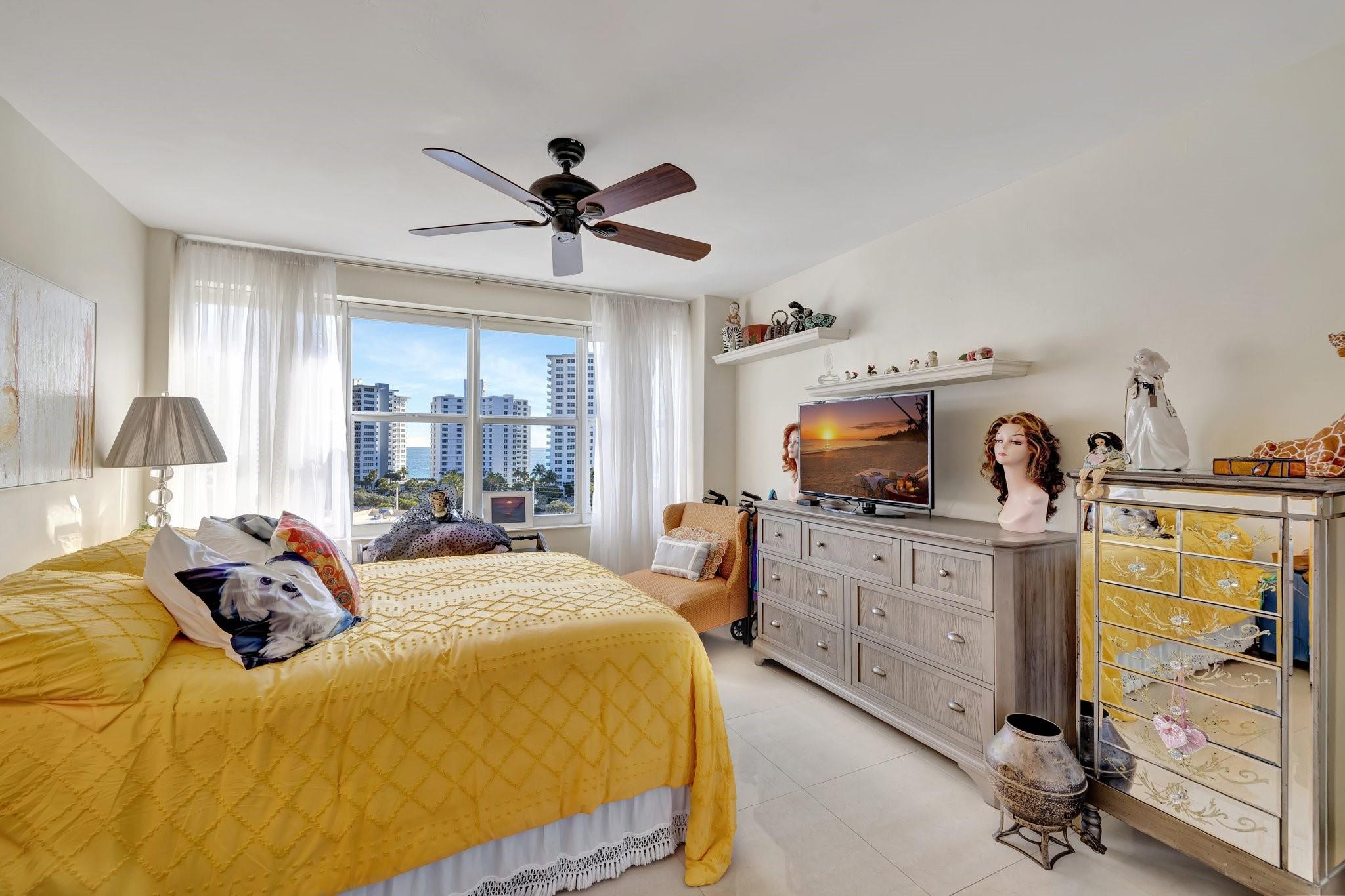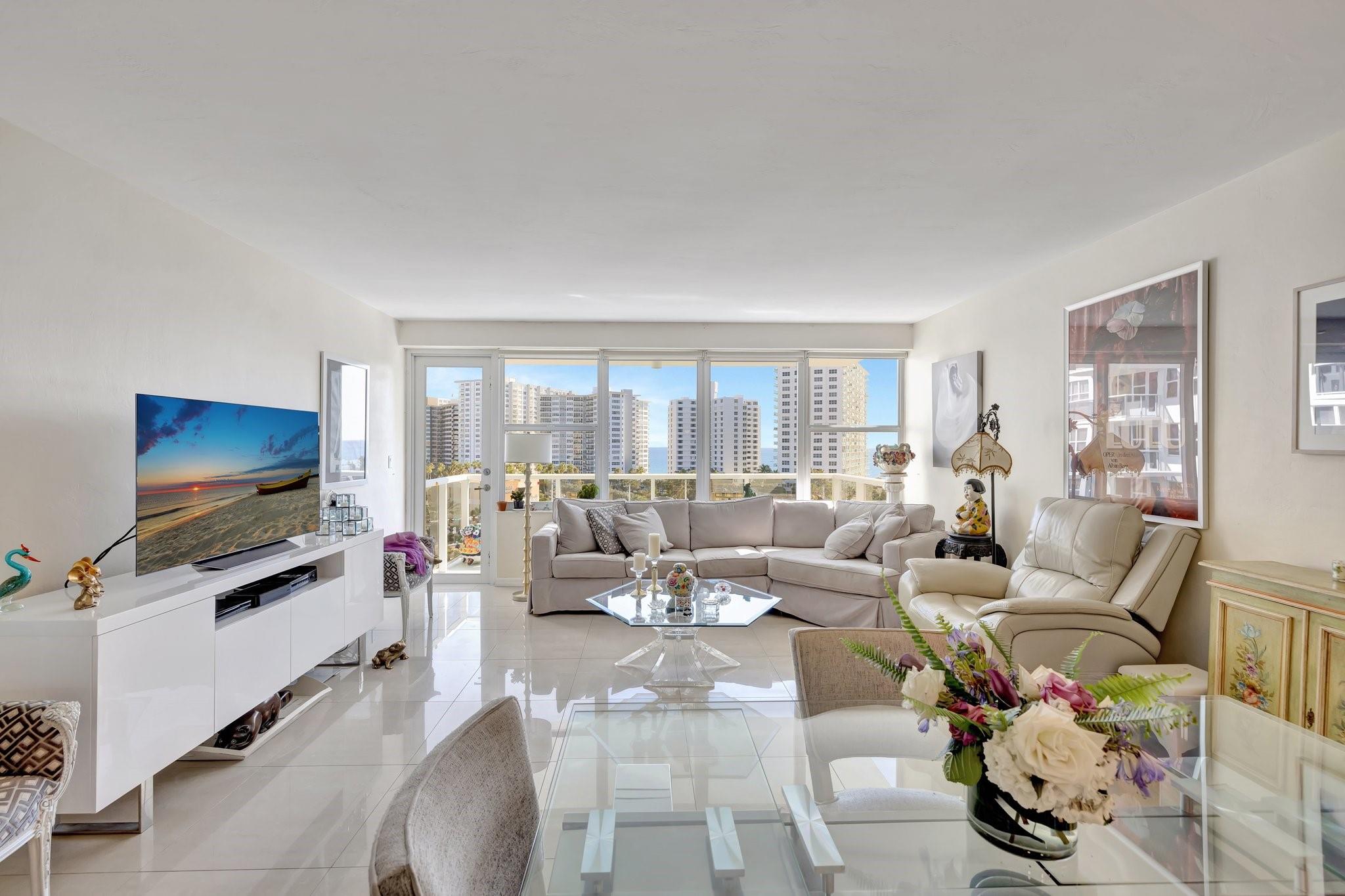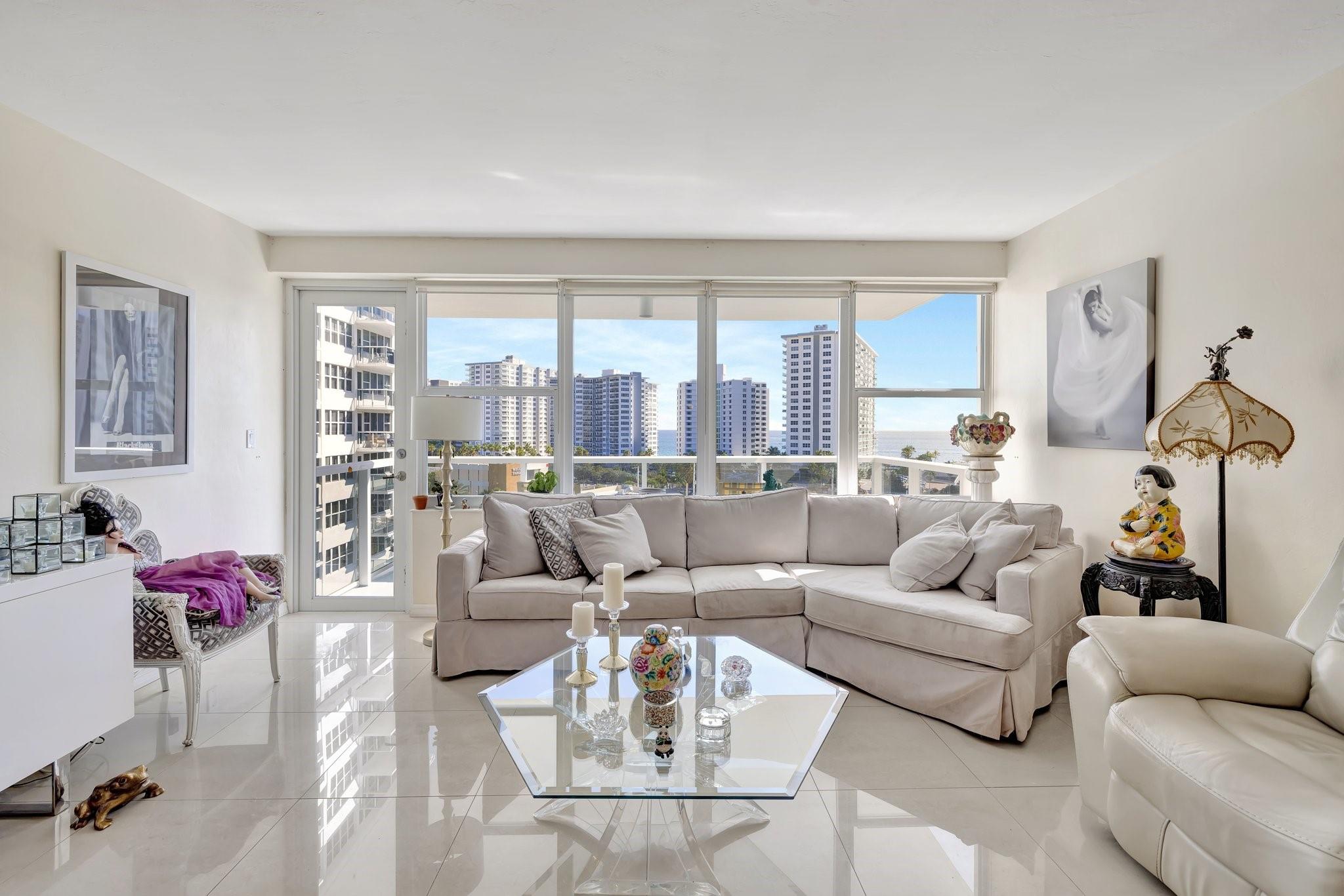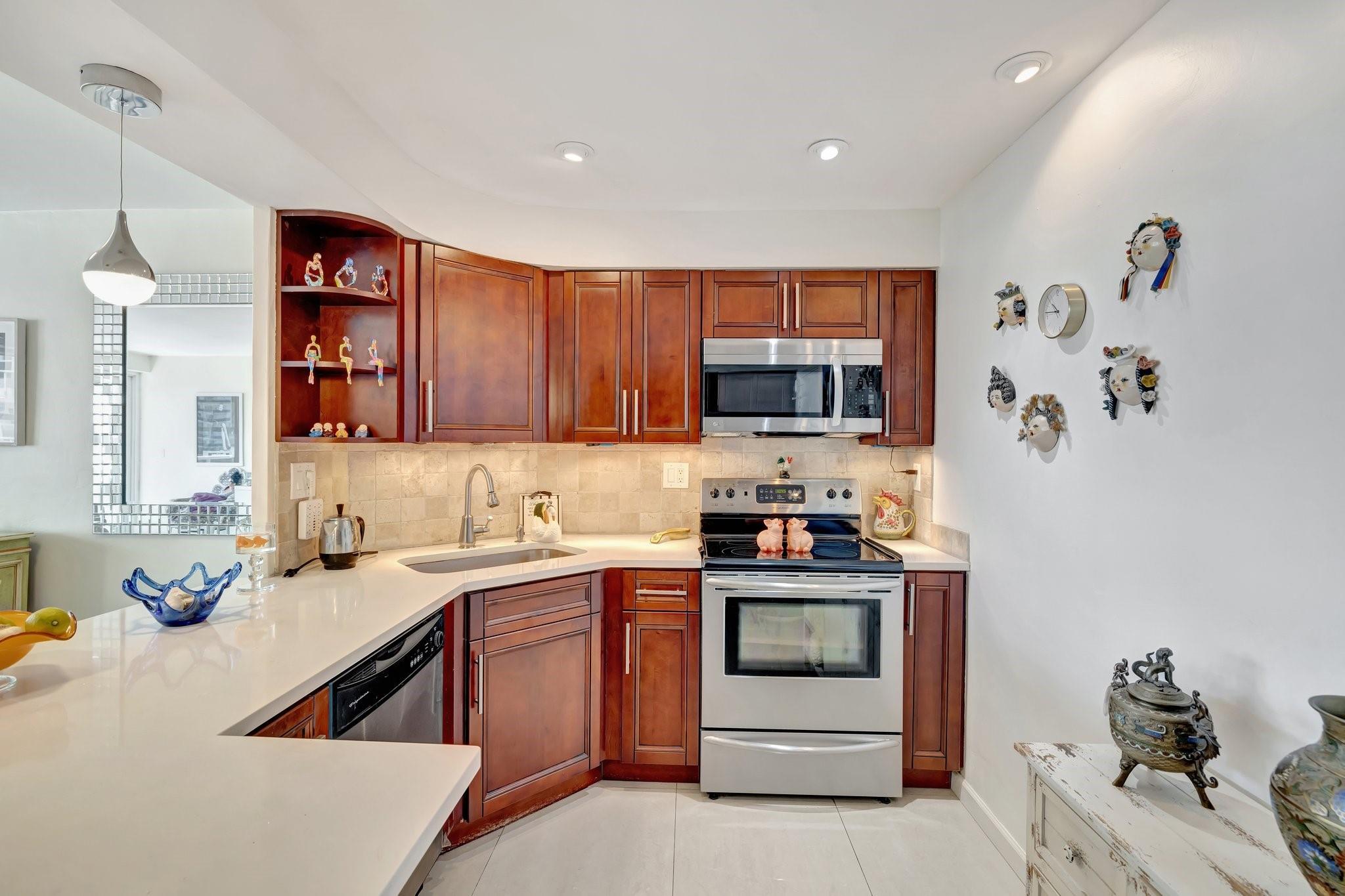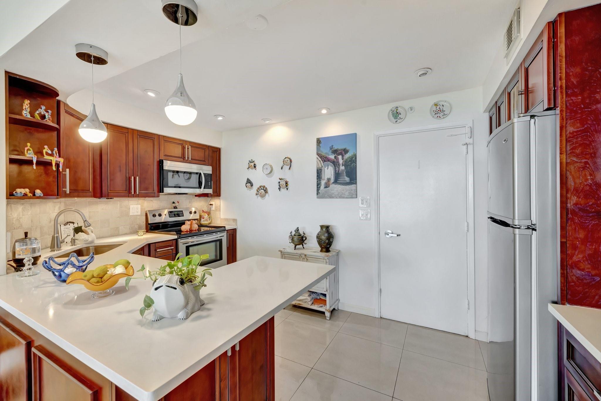 GORGEOUS - DIRECT OCEAN VIEW - CHEF'S KITCHEN - BUILDING IS STRUCTURALLY AND FINANCIALLY SECURE. Designer interior hallways grace the entrance to this beautifully curated residence. The open kitchen features quartz countertops, soft close cabinetry and a breakfast bar, perfect for entertaining. Light porcelain tiles throughout create a modern tranquil balance. Bathroom boasts a walk-in shower and upgraded vanity. Tons of closet space enhance this HUGE one bedroom. Building owns the land - no land lease. 55+ community on 5+ acres with full amenities. Massive heated pool, bocce ball, fitness center, extra storage, social activities, Intracoastal Clubhouse, on site management, concierge desk, 24/7 security. Close to everything! Entertainment, shopping, golf, boating, restaurants. Cash only