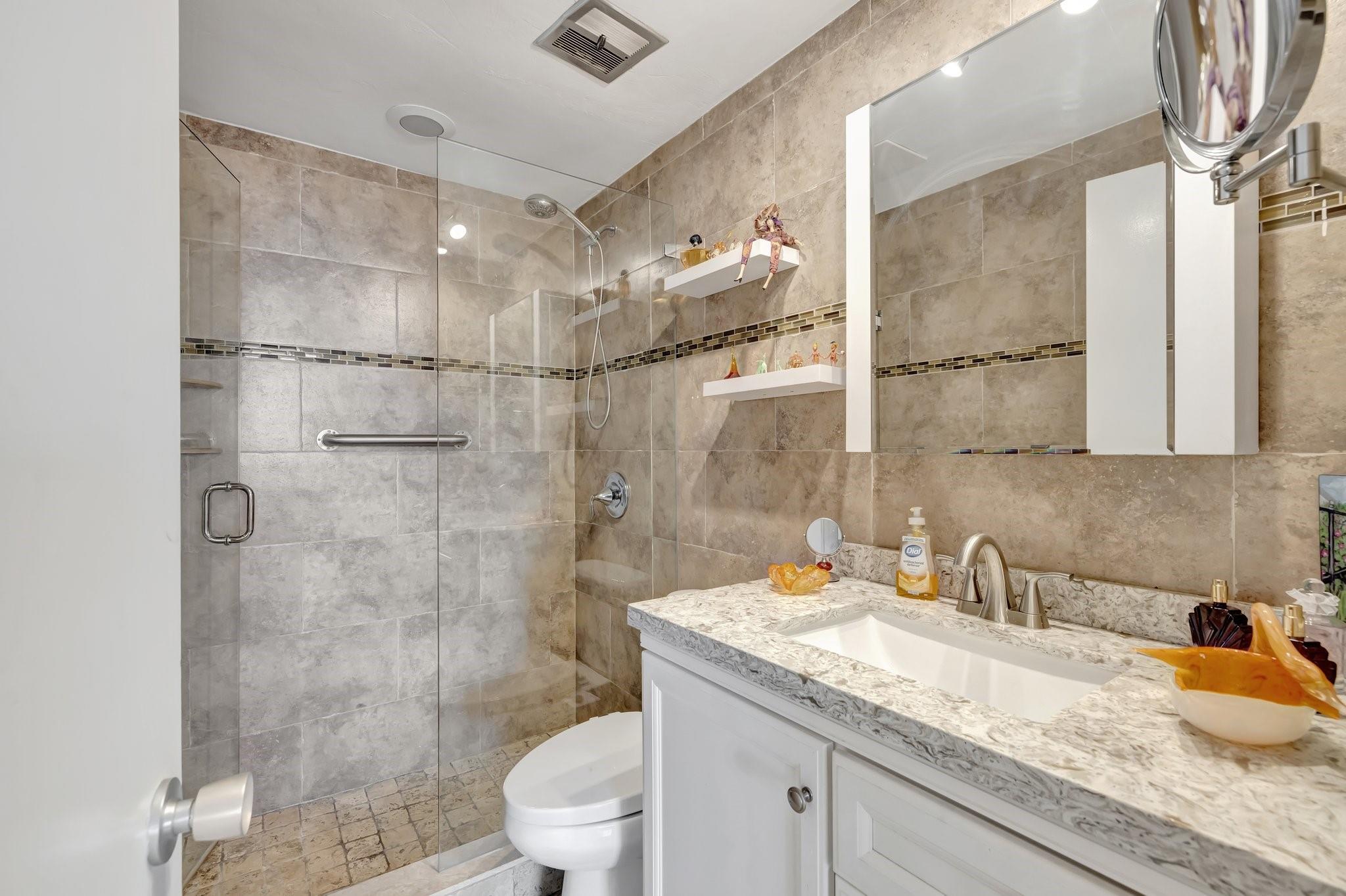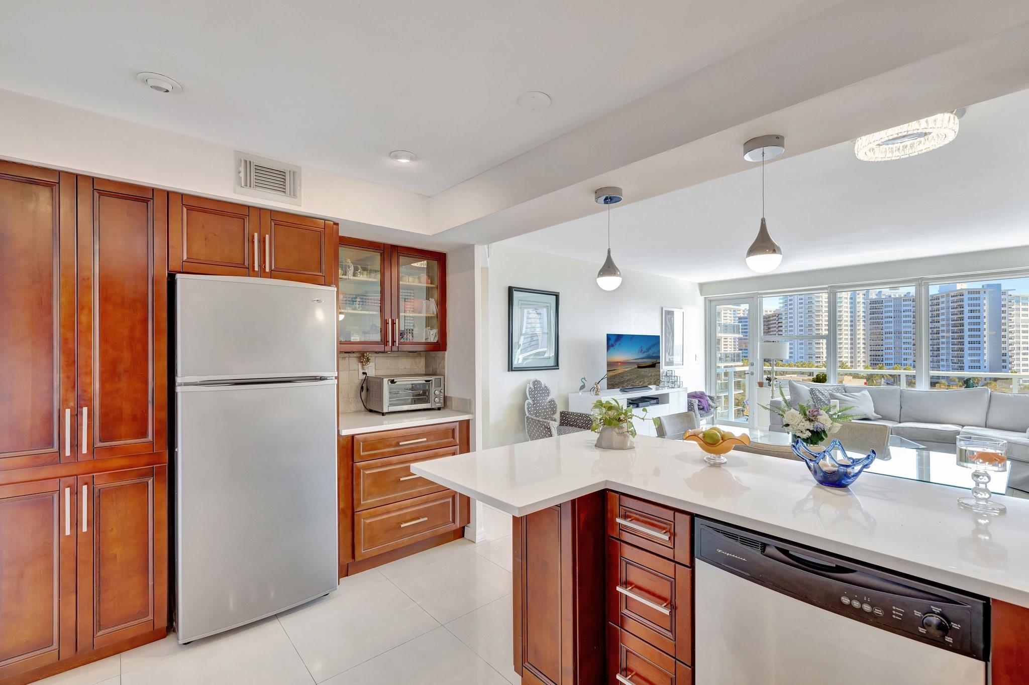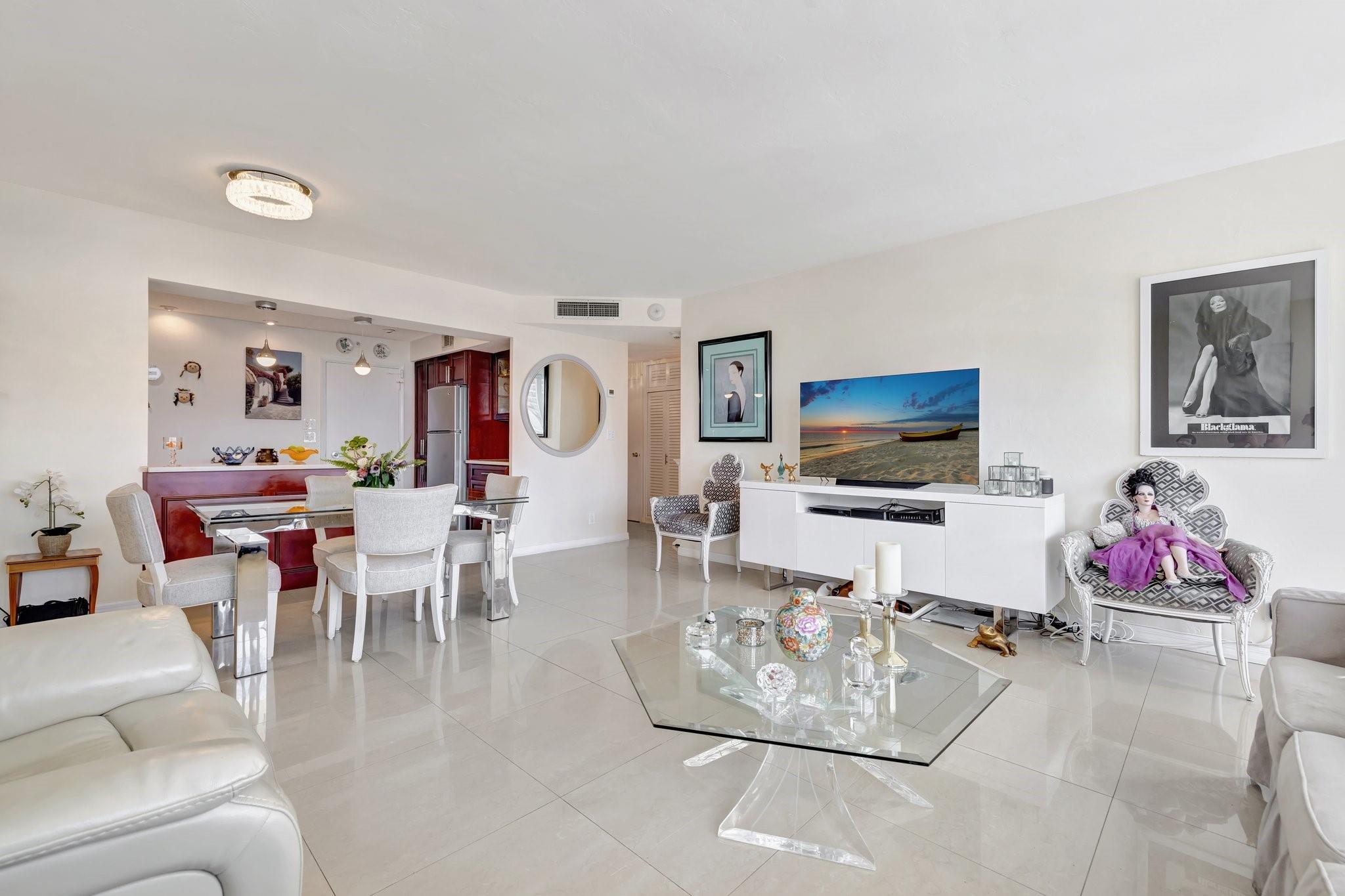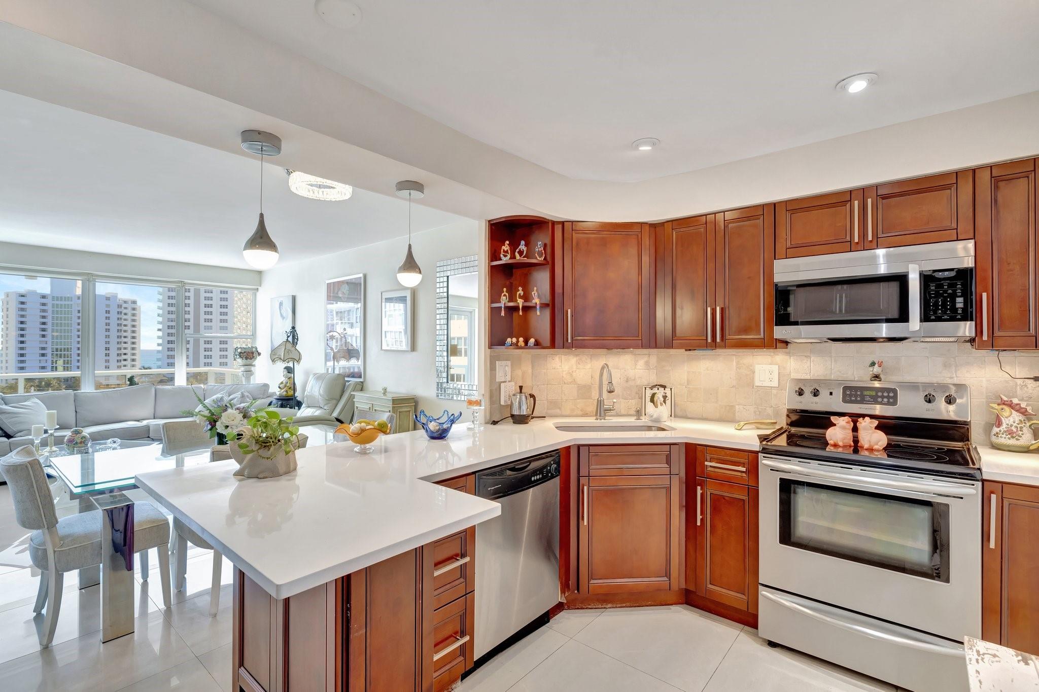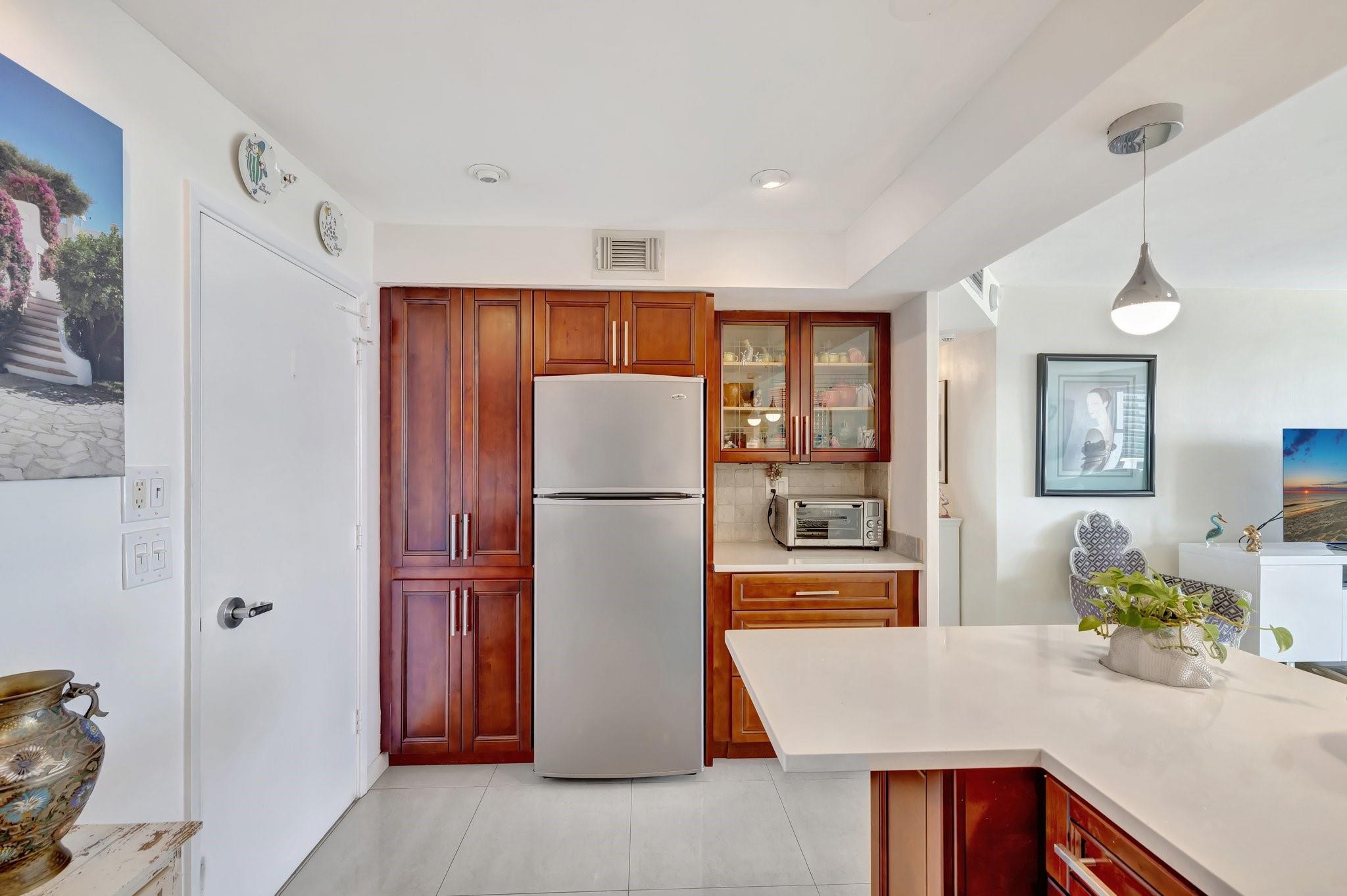 GORGEOUS - DIRECT OCEAN VIEW - CHEF'S KITCHEN - BUILDING IS STRUCTURALLY AND FINANCIALLY SECURE. Designer interior hallways grace the entrance to this beautifully curated residence. The open kitchen features quartz countertops, soft close cabinetry and a breakfast bar, perfect for entertaining. Light porcelain tiles throughout create a modern tranquil balance. Bathroom boasts a walk-in shower and upgraded vanity. Tons of closet space enhance this HUGE one bedroom. Building owns the land - no land lease. 55+ community on 5+ acres with full amenities. Massive heated pool, bocce ball, fitness center, extra storage, social activities, Intracoastal Clubhouse, on site management, concierge desk, 24/7 security. Close to everything! Entertainment, shopping, golf, boating, restaurants. Cash only