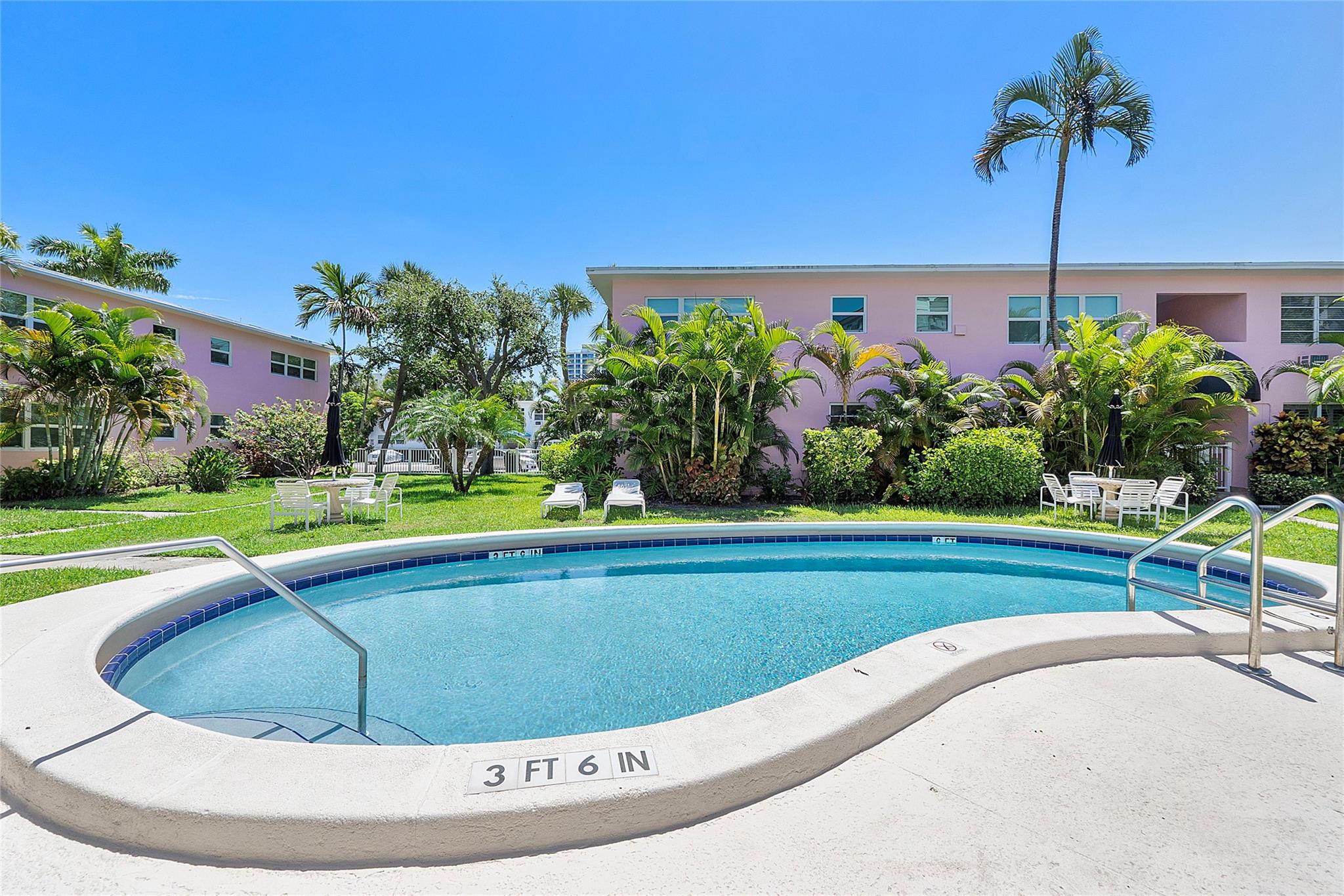 Beautiful corner unit 2BR/1BA located in the Central Beach area of Fort Lauderdale walking distance to the beach ! LOW HOA and a quiet complex. Garden view of the Pool and courtyard. This is a 55+ community. 1 assigned parking space and guest parking Common Laundry,No Pets. BBQ. Close to restaurants, Shops and Entertainment.