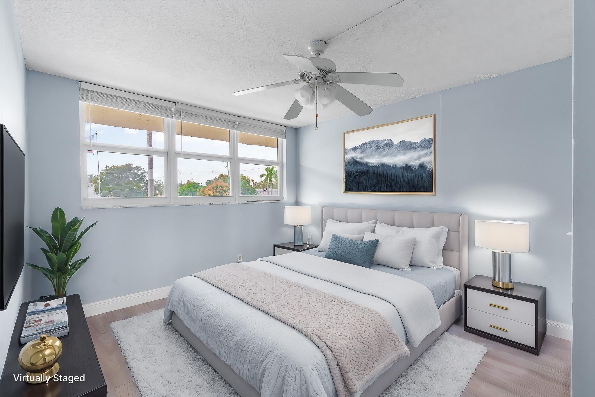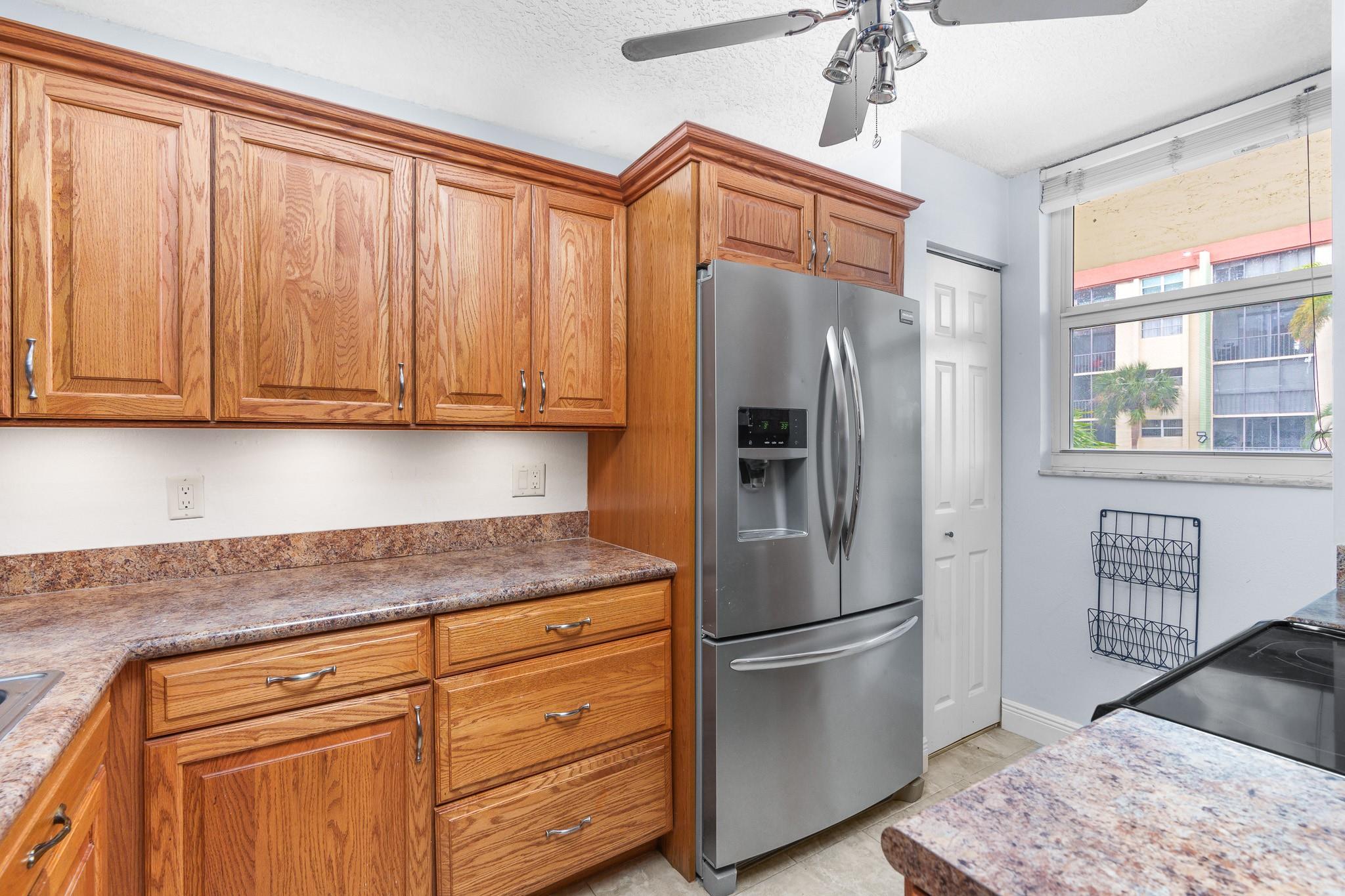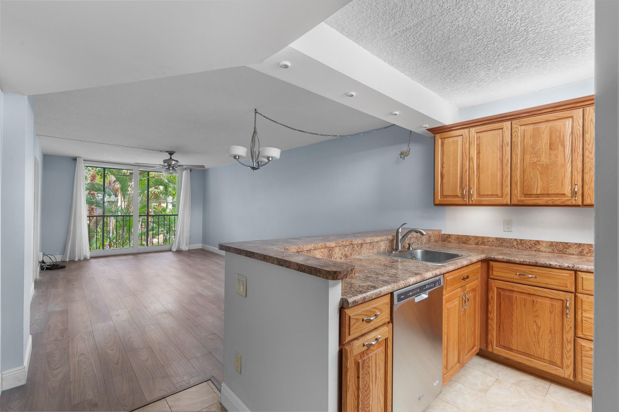 End-unit 2/2 condo in financially/structurally sound building located east of US1 & less than 1.5 miles from Lauderdale by the Sea’s beaches, dining & entertainment. Building has successfully completed 50-year milestone inspection, structural integrity reserve study & has NO MINIMUM down payment. Maintenance fees increased ONLY 4 CENTS in 2025 & include cable w/ DVR/HBOMax, fiber optic internet, water, sewer & trash. Condo features impact glass, screened balcony w/ lush tropical views, reconfigured open kitchen designed for maximum space including pantry & no popcorn ceilings. Front bedroom converted to include en-suite bath & extra closet for added storage. Enjoy parking for 2 cars as well as ample guest spaces & amenities including elevators, pool, hot tub, gym, sauna, BBQ & bike storage