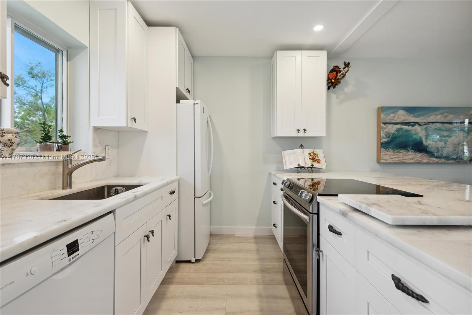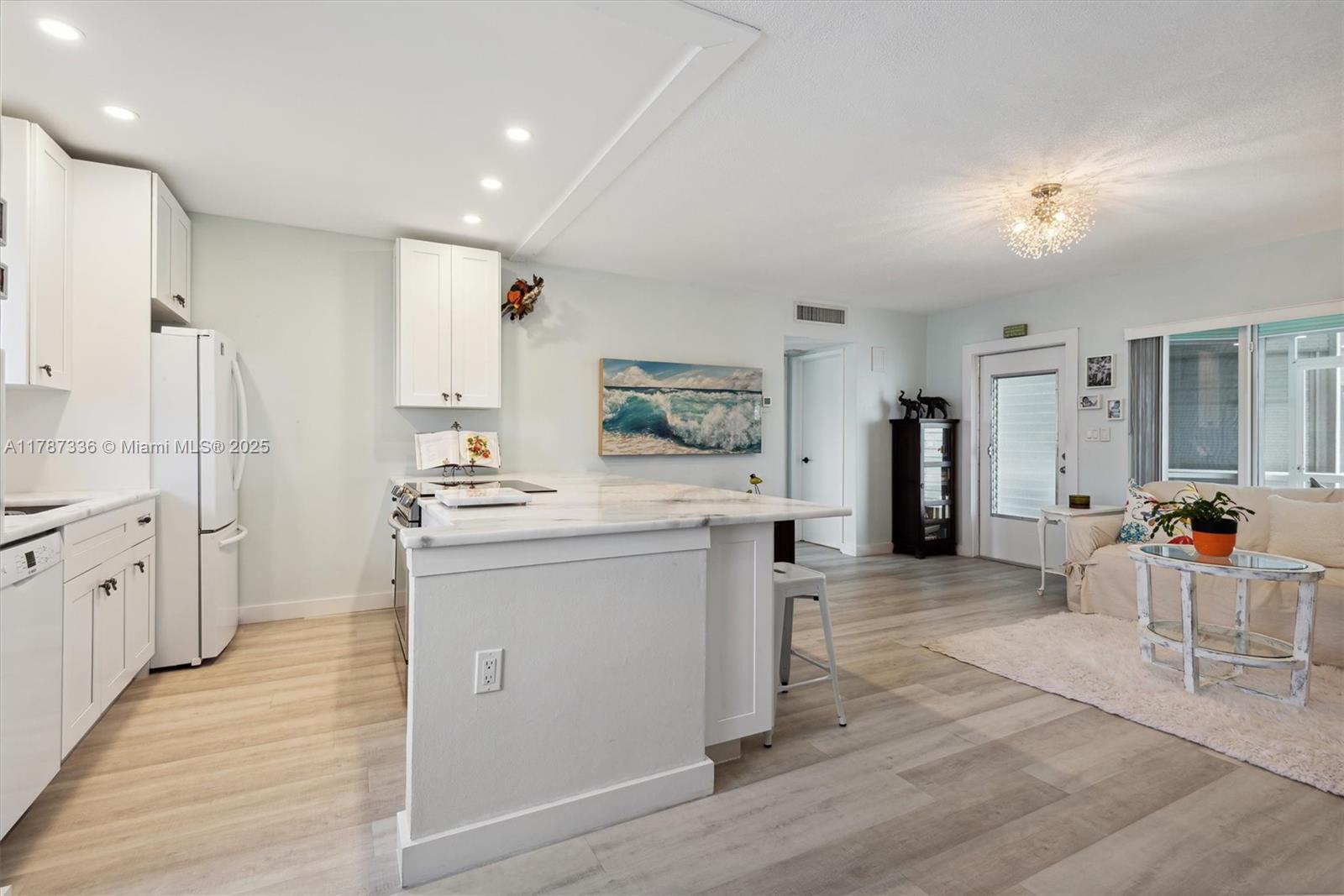 EAST FORT LAUDERDALE | Substantially remodeled unit in Coral Ridge neighborhood. Well-maintained boutique building in a walkable community, close to beaches, markets, major highways, public transportation and much more! FEATURES: Open concept floor plan, gorgeous Kitchen, an expansive Quartzite cooking island with under-counter storage, soft-close cabinetry, pewter hardware, and newer appliances. Unit is well lit, neutral tone Mohawk soundproof flooring, all new light fixtures, hardware, baseboards throughout, newer HVAC, some Hurricane Impact Glass. Spacious bedroom with a walk-in closet and an updated bathroom. Enjoy this roomy Lanai with Golf & Pool Views and tranquil setting. Unit is move-in ready! All building inspections passed! Excellent investment opportunity in high-demand area.