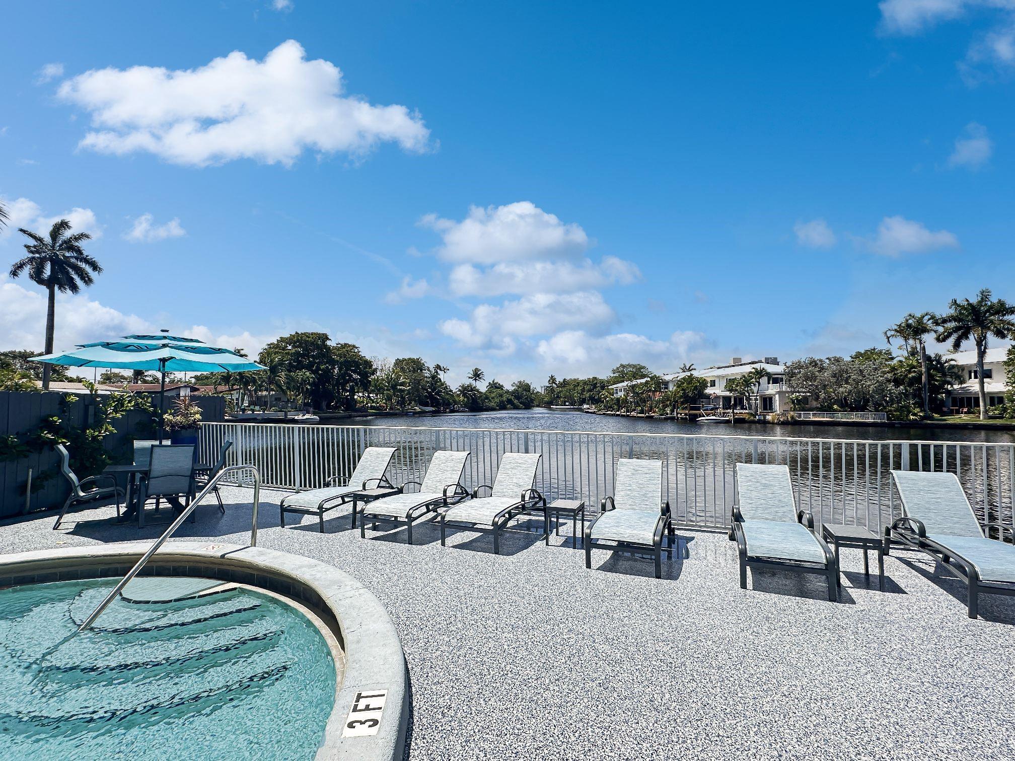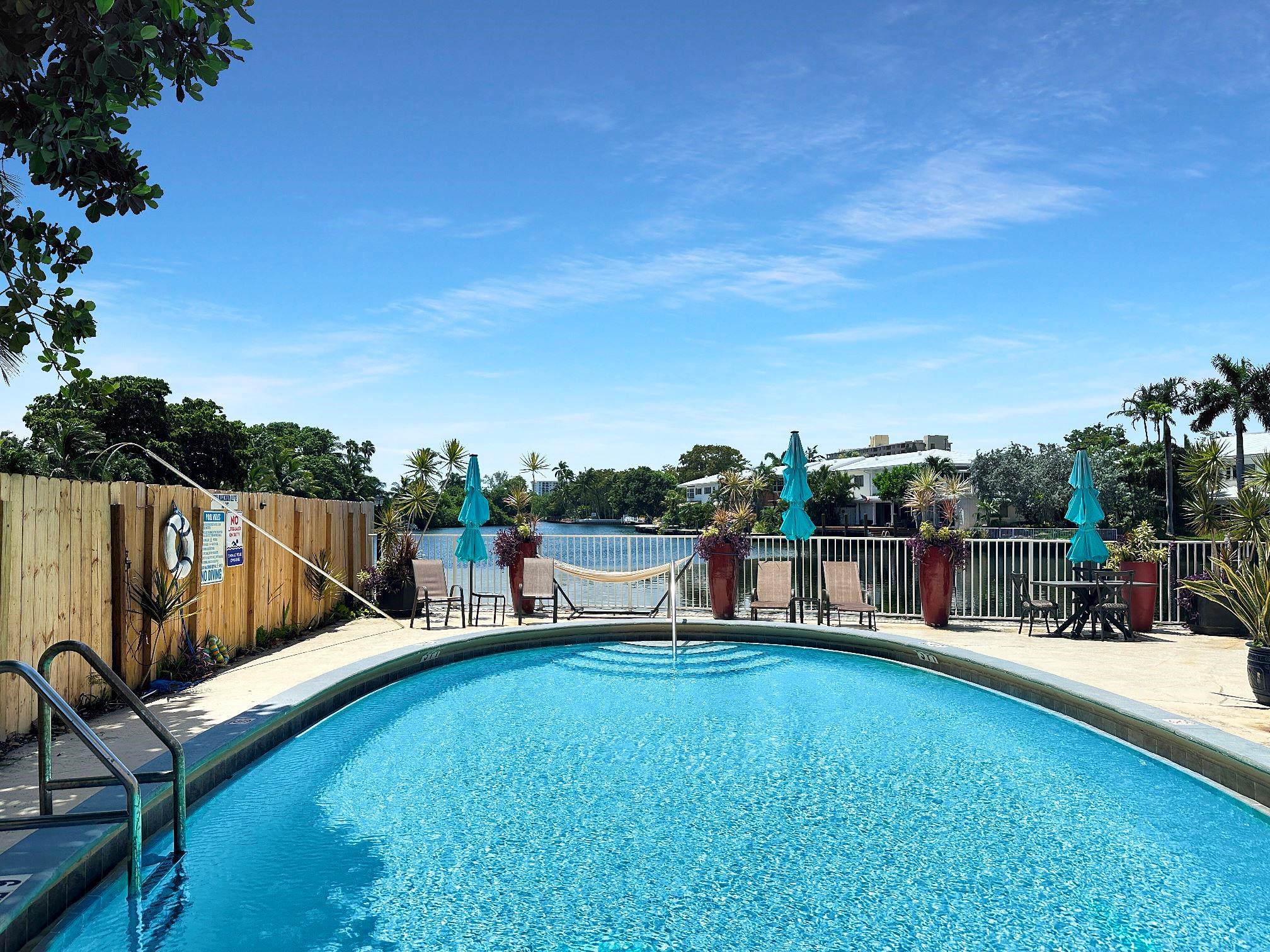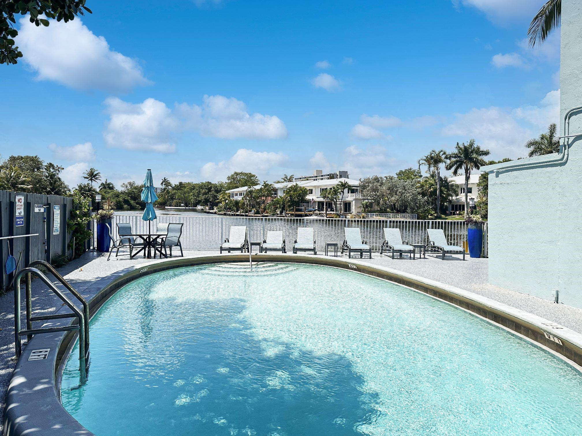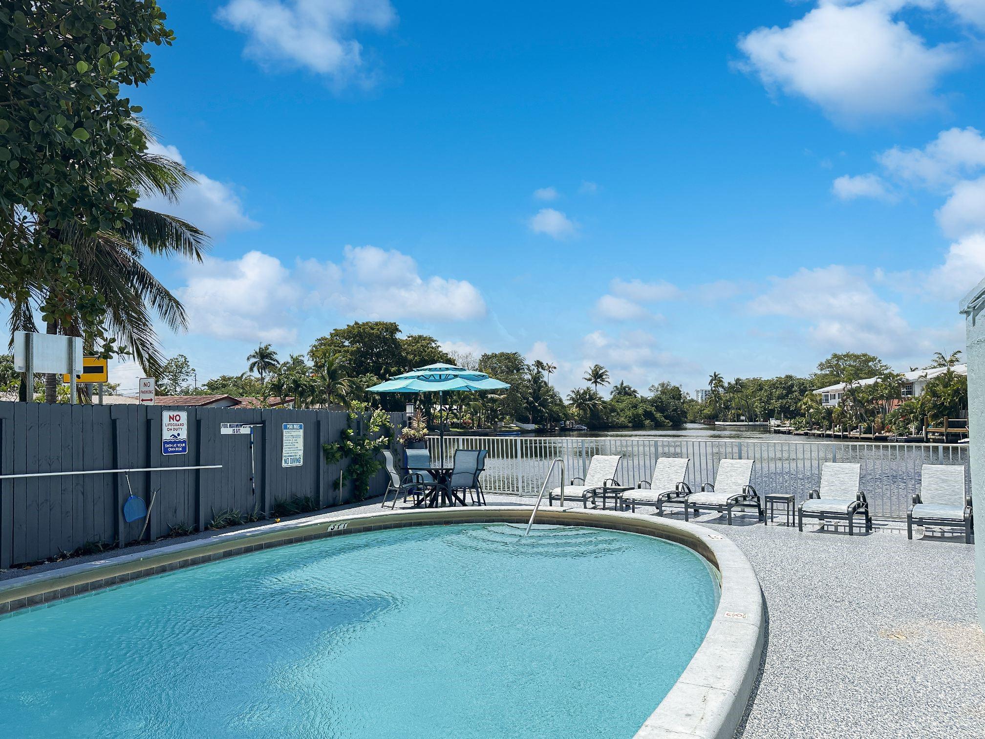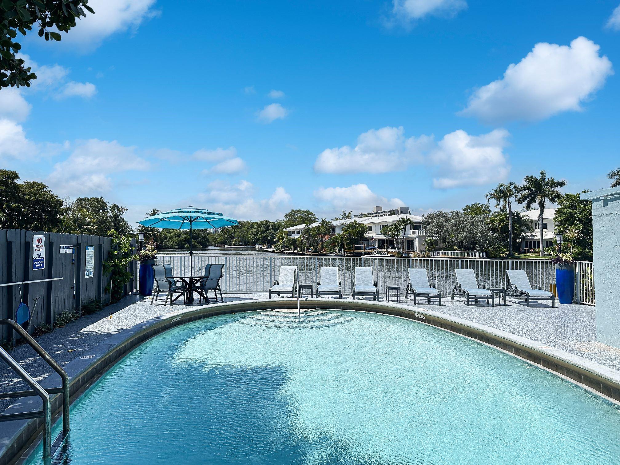 Welcome to Camelot!! Discover the perfect mix of comfort, style, and location in this beautifully updated one-bedroom, one-bath waterfront condo; just blocks from the vibrant energy of Wilton Drive. Located within quiet neighborhood of Middle River Terrace, this gem offers a peaceful retreat with quick access to some of Fort Lauderdale and Wilton Manors best dining, nightlife, & entertainment. Updated with brand new impact windows & doors, it is move-in ready. Enjoy tranquil water views from the spacious screened-in patio, sunsets by the pool and perfect for relaxing while watching stunning sunsets over Middle River. Whether you're seeking a full-time residence, seasonal getaway, or smart investment, this rare find blends an unbeatable location with serene, waterfront living.