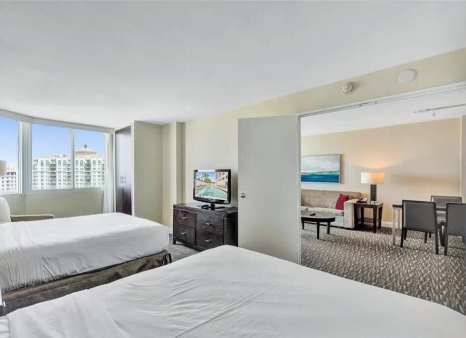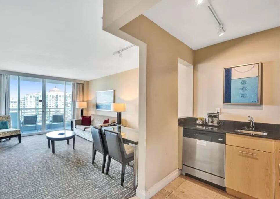 Welcome to your luxurious retreat in the heart of Fort Lauderdale, a prime destination for vacationers and second-home owners alike. This beautifully designed one-bedroom, one-bath condo-hotel offers exceptional flexibility--whether you're looking for a full-time residence, a relaxing vacation escape, or an income-generating property.Step into a spacious living area that perfectly blends comfort and style. The fully equipped kitchen features elegant granite countertops, a stovetop, dishwasher, garbage disposal, refrigerator, coffee maker, and microwave--ideal for cooking meals or enjoying your morning coffee.The large bedroom is thoughtfully designed with two plush queen beds, ensuring restful nights after a day of enjoying all that Fort Lauderdale has to offer.