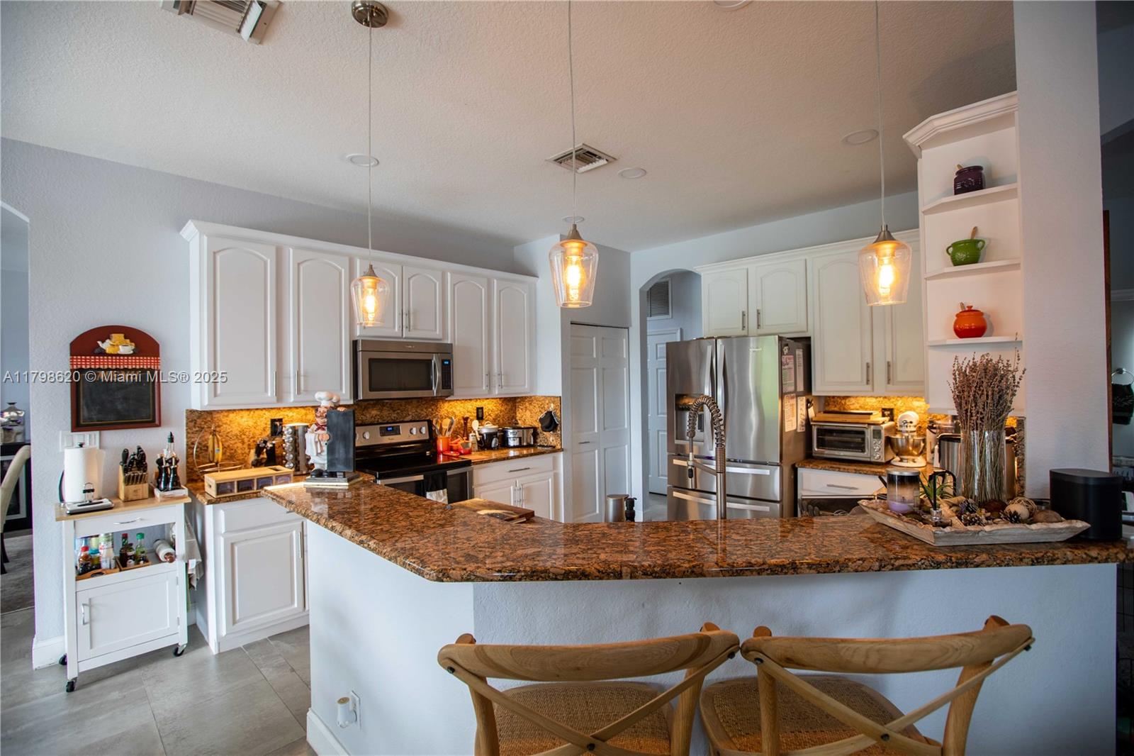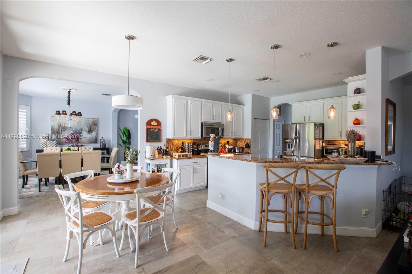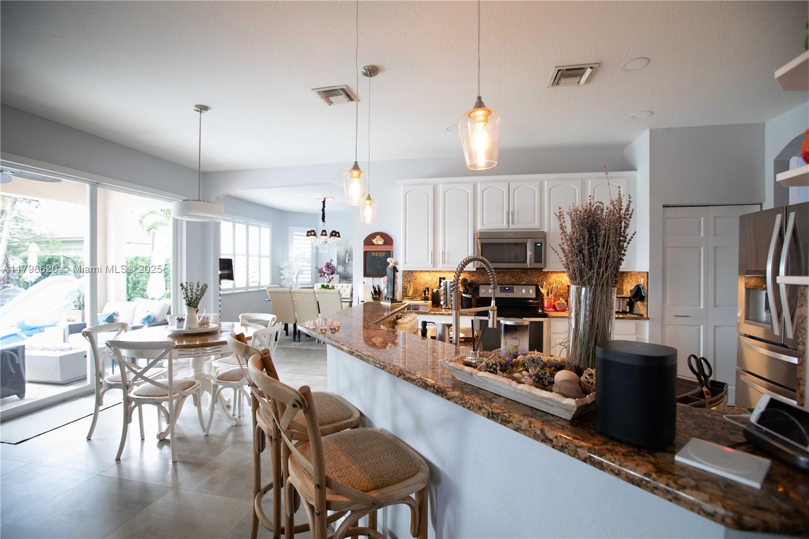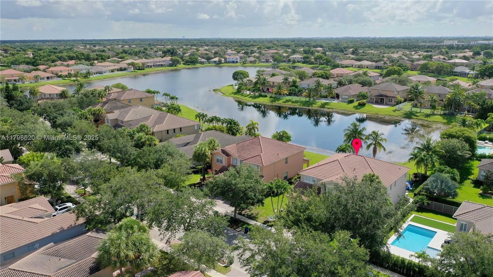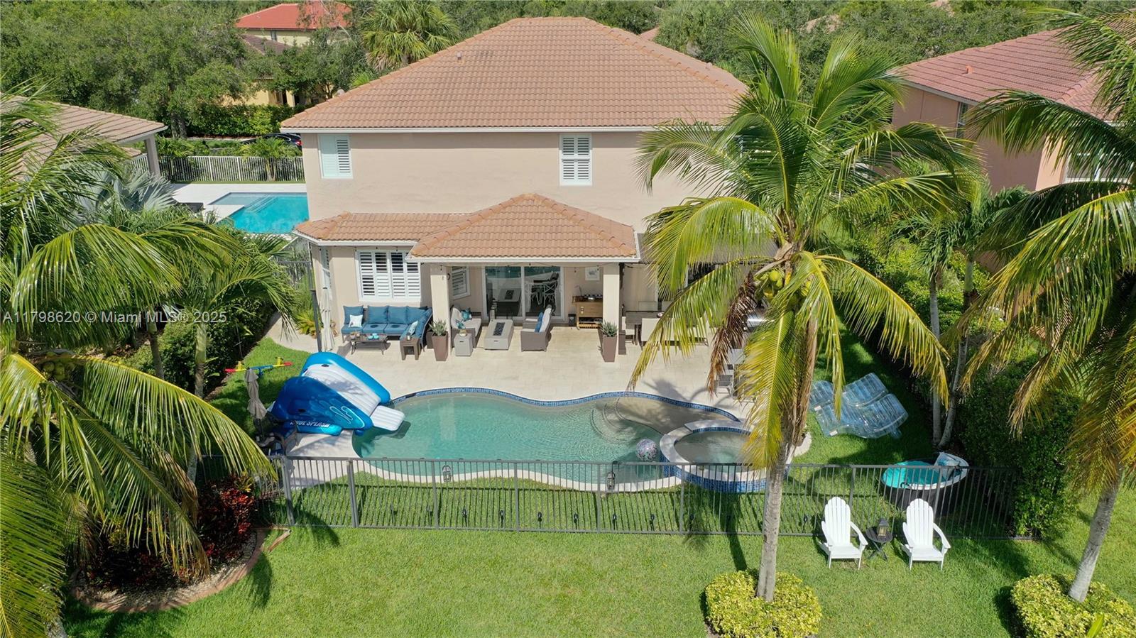 Updated 2-story house situated in the prestigious Isles at Weston, this elegant home features 5 bedrooms, 4 bathrooms, spacious living room, dining room and family room. Lakefront backyard perfect for entertaining, with travertine floors, fully equipped outdoor kitchen and heated salt water swimming pool and spa. High impact windows and doors, updated ceramic and hardwood floor, remodeled bathrooms, plantation shutters, automatic blinds in the living room, 3 car garage, spacious loft on the second floor, massive master suite with two walk-in closets. Enjoy resort-style amenities including a modern clubhouse, 2 swimming pools, fitness center, beach volleyball and basketball courts and playground. HOA includes internet and cable. Top-rated schools: Manatee Bay, Falcon Cove and Cypress Bay.
