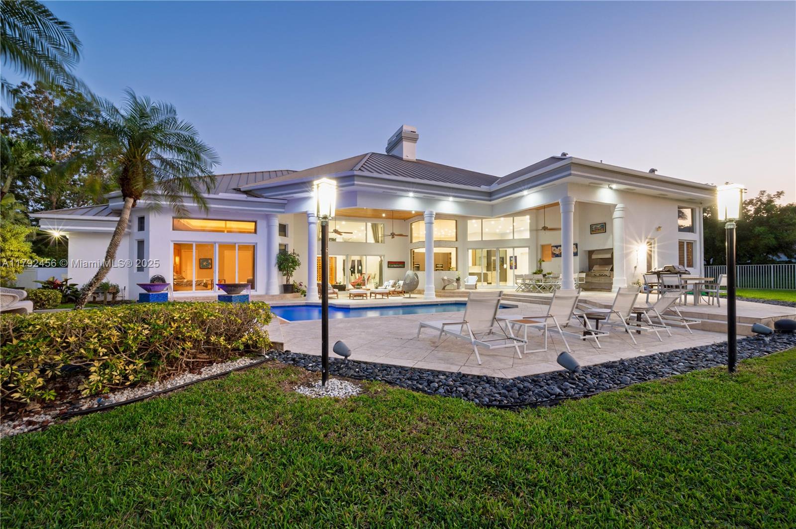 A rare masterpiece in Weston's prestigious Windmill Ranch Estates. This 1.3-acre private estate features 5 spacious bedrooms, each with its own ensuite bath, plus a stylish guest bath. A custom home theater, private DEN/OFFICE, soaring ceilings, and exquisite designer finishes elevate every space. The chef's kitchen offers top-tier appliances, quartz counters, and an open flow ideal for entertaining. Enjoy breathtaking lake views, a resort-style pool, marble patio, lush gardens, and total privacy. Impact windows and doors, epoxy-floored 3-car garage. Zoned for A+ schools. This move-in ready estate blends elegance, lifestyle, and sophistication in one of Weston's most exclusive communities. Experience resort-style living every day -- this is the one you've been waiting for.