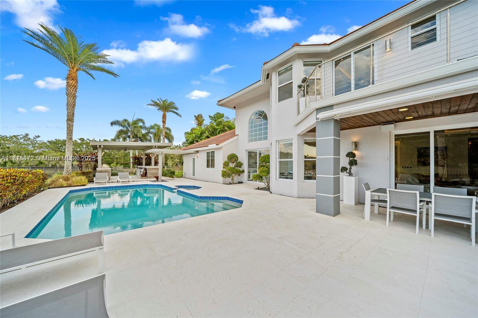 Stunning 2-story home that exudes unparalleled luxury and offers breathtaking views! This expansive 5-bedroom + den, 3 1/2-bathroom residence seamlessly blends elegance with comfort, featuring smart lighting throughout. Enjoy the ultimate in lakeside living with a sparkling pool and serene lake and golf course views from your backyard. The spacious outdoor area is perfect for entertaining, complete with a large BBQ area and a mini soccer field. Inside, you'll find modern finishes that elevate the home's beauty and functionality, making it an entertainer's dream. Located in a highly sought-after neighborhood, this extraordinary property is an opportunity you won't want to miss.