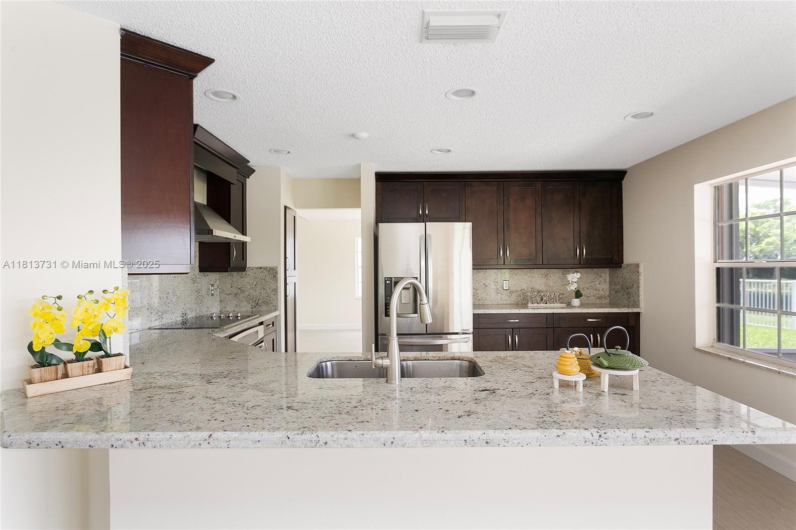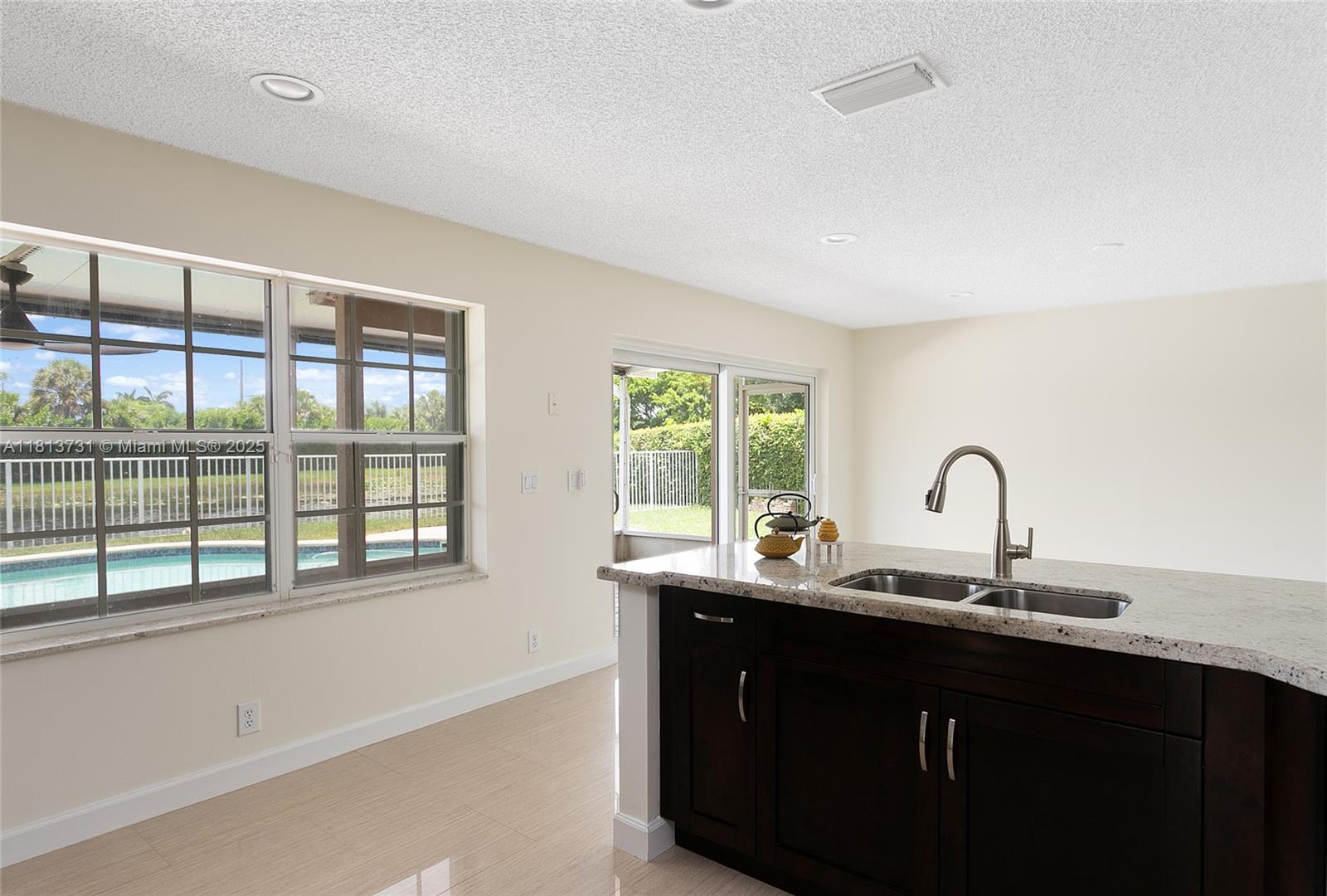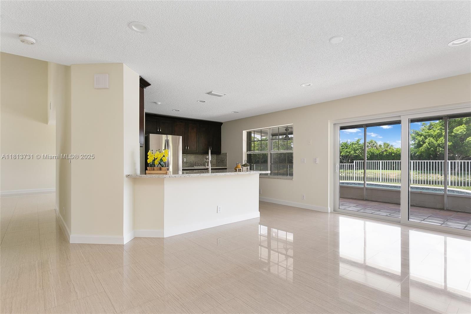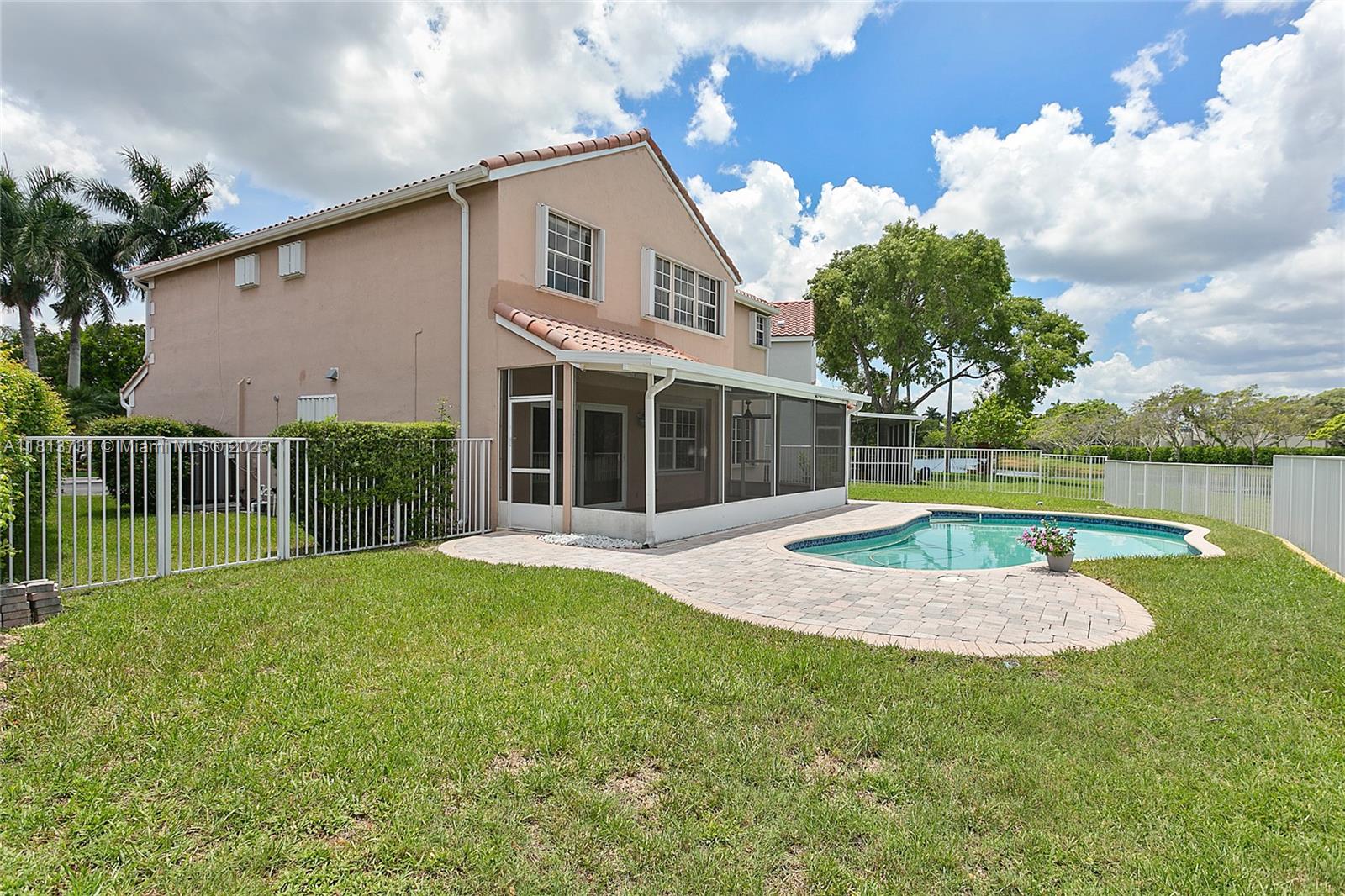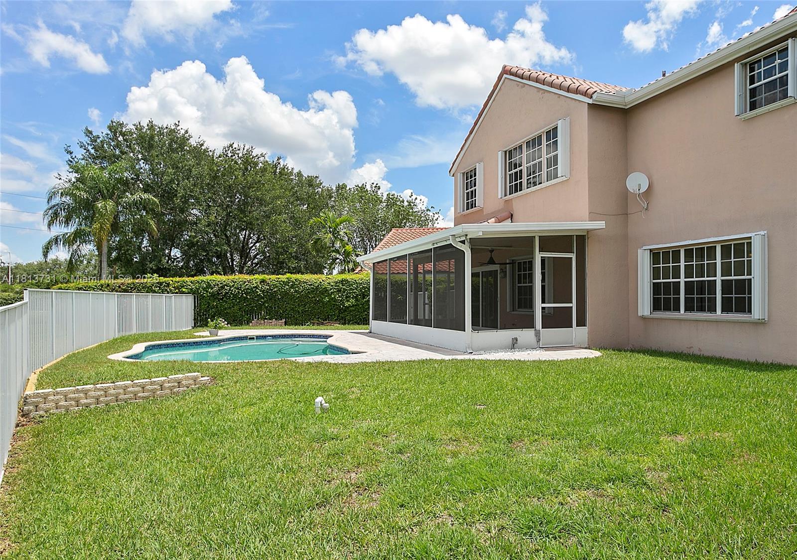 R.A.R.E.L.Y Available Pool Home Lakefront Gem on a Private Cul-de-Sac. This beautifully remodeled 4-bedroom, 2.5-bathroom home sits on a spacious pie-shaped lot, offering a serene lakefront setting. The open-concept design seamlessly connects the living, dining, and kitchen areas, all of which have been updated with modern finishes. Step outside to your private fenced-in backyard oasis & screened in patio featuring a glistening pool that backs to a private lake, surrounded by lush landscaping, perfect for relaxation and entertaining. With hurricane protection (Accordion shutters on windows and hurricane impact front door and sliding door) in place, you can enjoy peace of mind during storm season. Walk or bike to Indian Trace elementary & Tequesta Trace Middle. Zoned for Cypress Bay High.