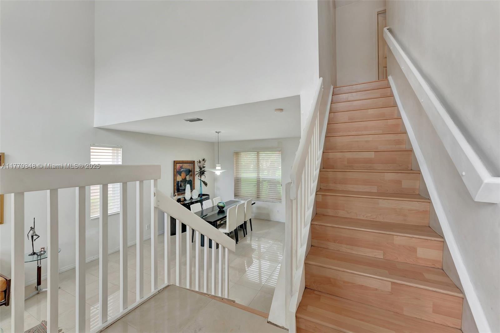 Beautifully maintained single-family home offers a spacious open floor plan that radiates with natural lighting. This elegant home is located in the well-guarded gated community of Opal Creek, one of the most desirable areas of Weston. This home boasts 4 bedrooms, remodeled 2.5 bath includes a spacious master bedroom with walk-in closet, remodeled kitchen with granite counter tops, white cabinets, pantry, stainless- steel appliances which flows into a large family room. The home showcases porcelain flooring downstairs, laminated wood flooring upstairs, hurricane shutters, a patio and 2 car garage. This prime area is zoned for top rated A+ schools for all ages. Close to highways, hospitals, great restaurants, and much more. This home is perfect for families seeking convenience and comfort.