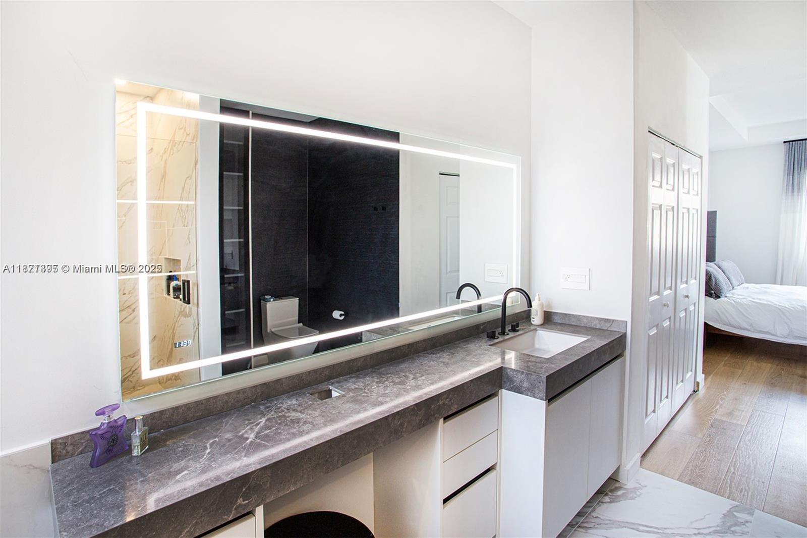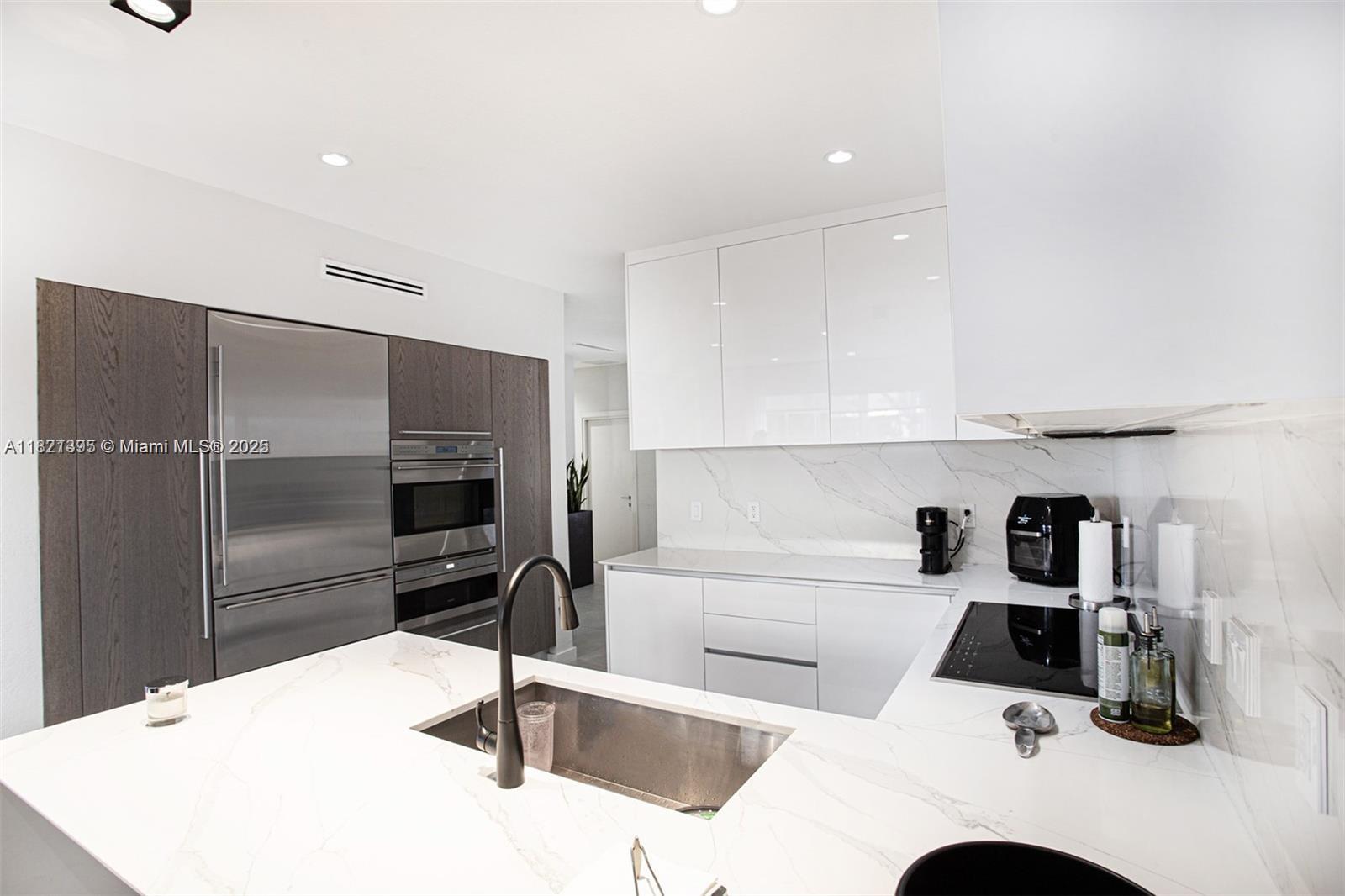 SPECTACULAR renovated home in Mediterranean @island at Doral w/lots of fabulous features & modern upgrades: 1st floor bedroom w/full bath, italian porcelain & hardwood floors. Gorgeous modern kitchen: Subzero/Wolf appliances, induction cooker, top extractor, italian cabinets w/lights, quartz Counter. Modern Hotel style Master bath & half bath: Kohler fixtures, Duravit toilet, Lutron ceiling, wall & hand shower, modern bathtub. All doors are Italian, 2years old A/C, nest control, linear diffuser vents & roller shades in social areas, Bandalux blackouts & Built out closets in bedrooms. New Washer & Dryer. Lutron switches w/app, Ring door bell & smoke detectors, security cameras, retractable Patio Awning, open balcony, window Shutters, electric Garage Door. Security system w/ HOA.