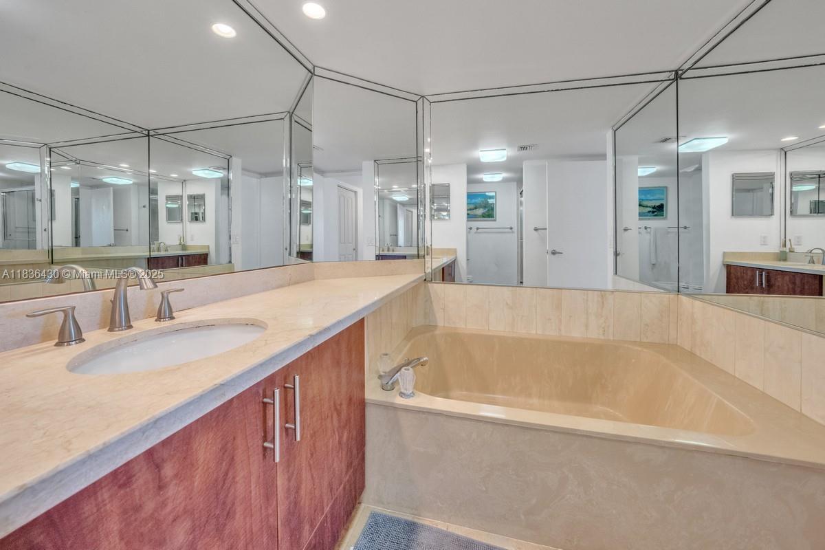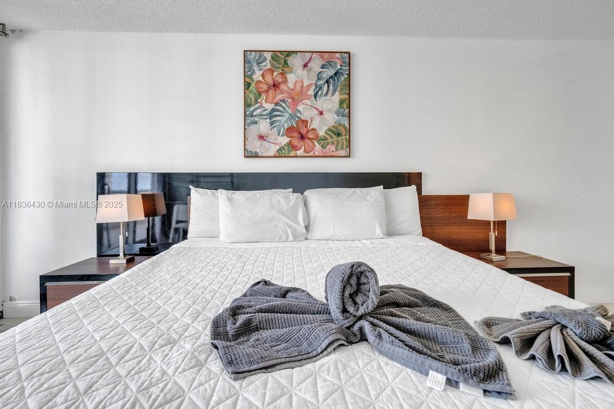 Breathtaking bay and ocean views from huge balcony of this giant 1Bedroom 1.5 Bath Condo 1048 soft in the Double Tree Hilton/The Grand Condominium. Building features a large pool and 4 hot tubs/jacuzzis on 10th Floor and 24-hr fitness center. Tile floors throughout the home with a large bathroom with both a shower and bathtub. Oversized walk-in closet like another small room's worth of space. Modern washer and dryer in the unit. Kitchen features granite countertops and white cabinetry. Balcony access from both the living room and the bedroom with extra deep balcony to easily have a full outdoor dining table and lounge area over-looking Margaret Pace Park and the bay and ocean views. Spectacular home to make your own.